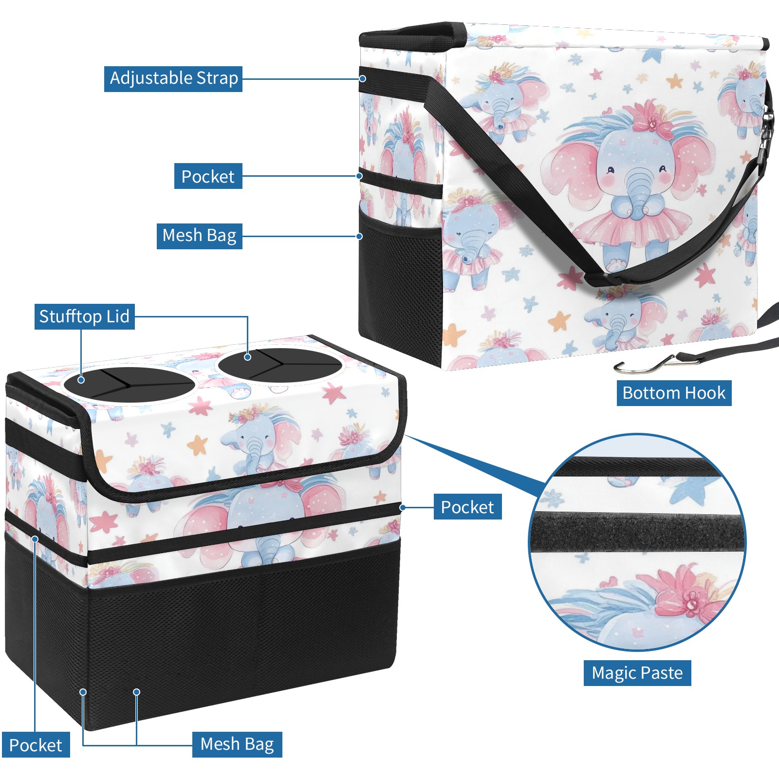 Car Trash Can with Lid, Portable Hanging Automotive Garbage Bin for Vehicles, Leakproof Waste Bag Container for SUV Truck Van Interior Auto Travel Road Trips(Baby Elephant)