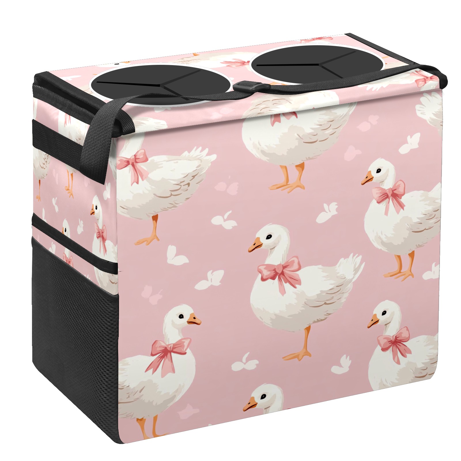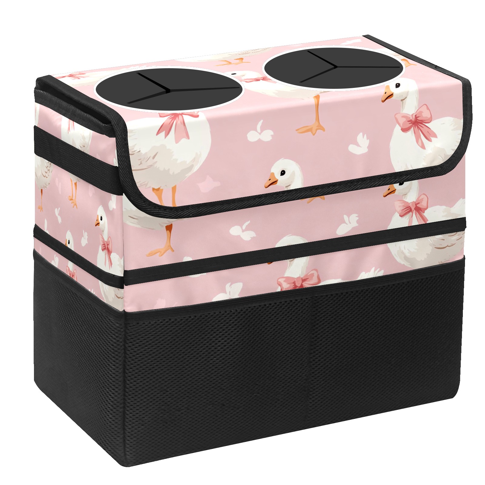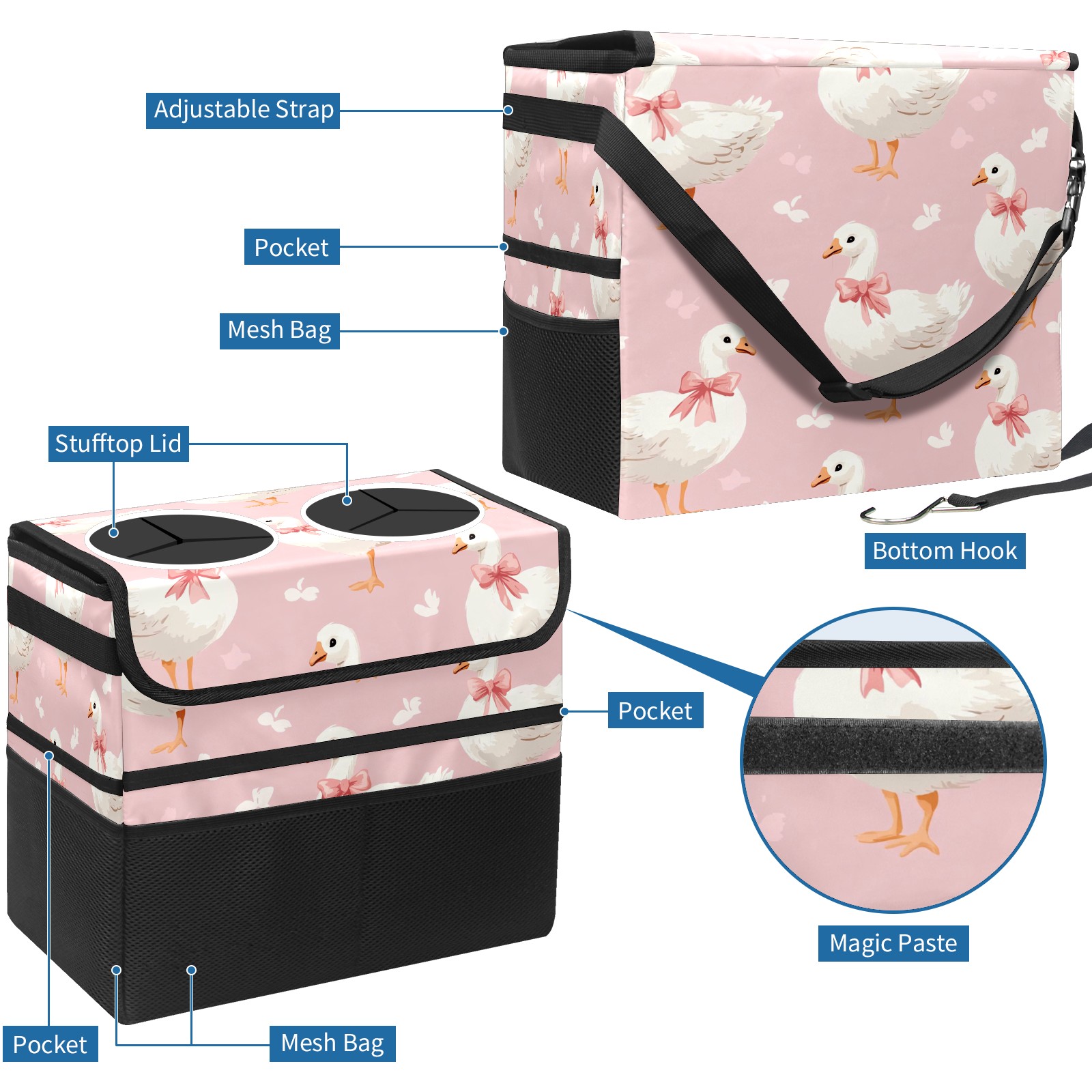 Car Trash Can with Lid, Portable Hanging Automotive Garbage Bin for Vehicles, Leakproof Waste Bag Container for SUV Truck Van Interior Auto Travel Road Trips(White Geese)