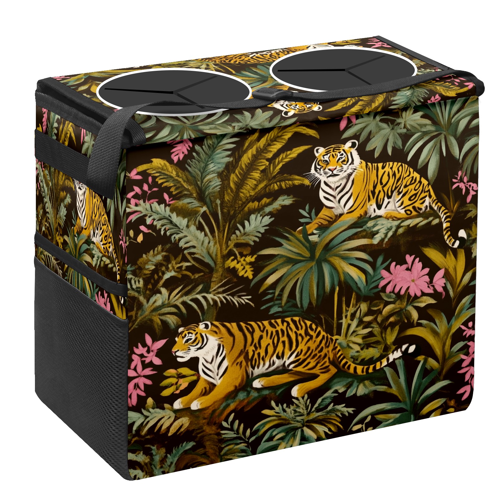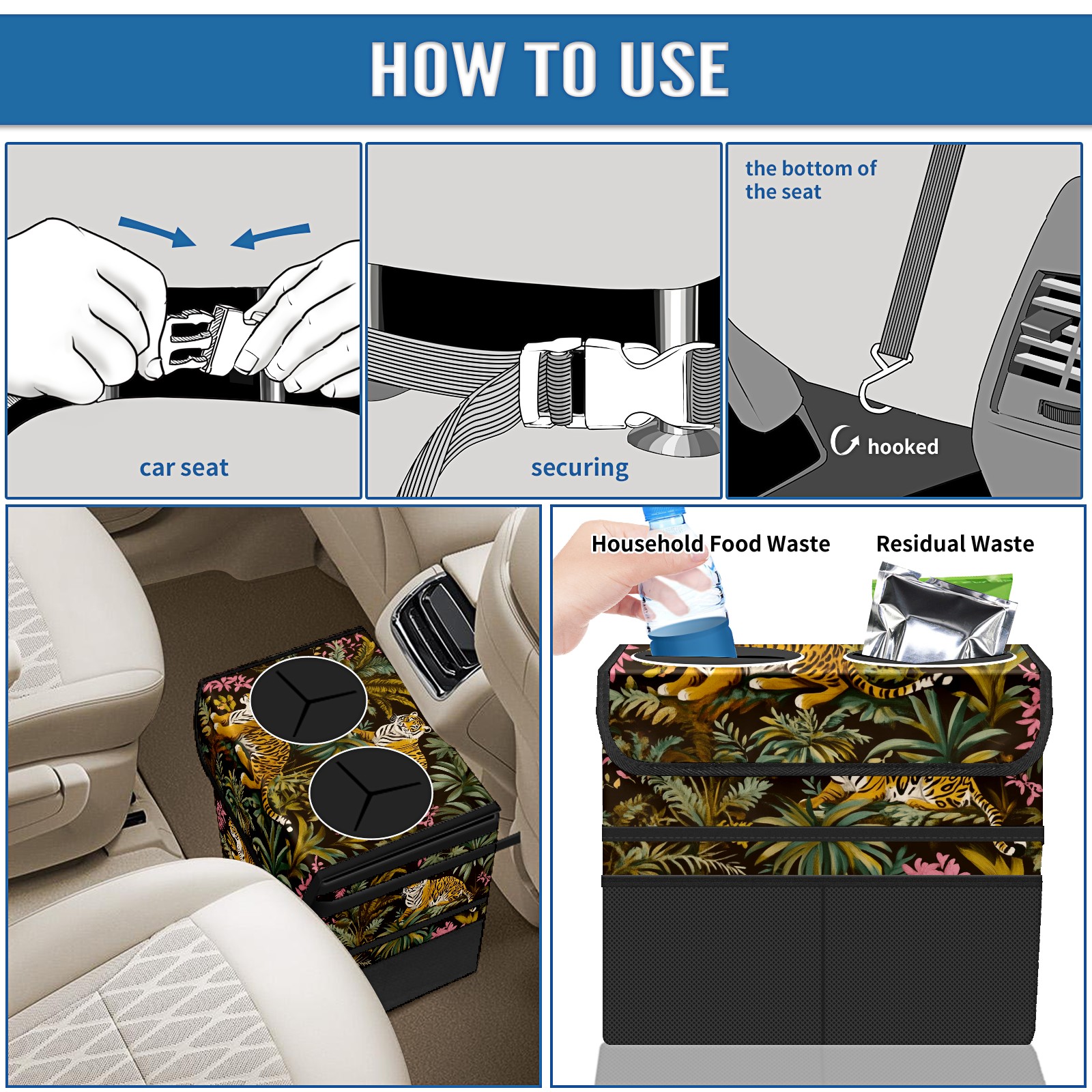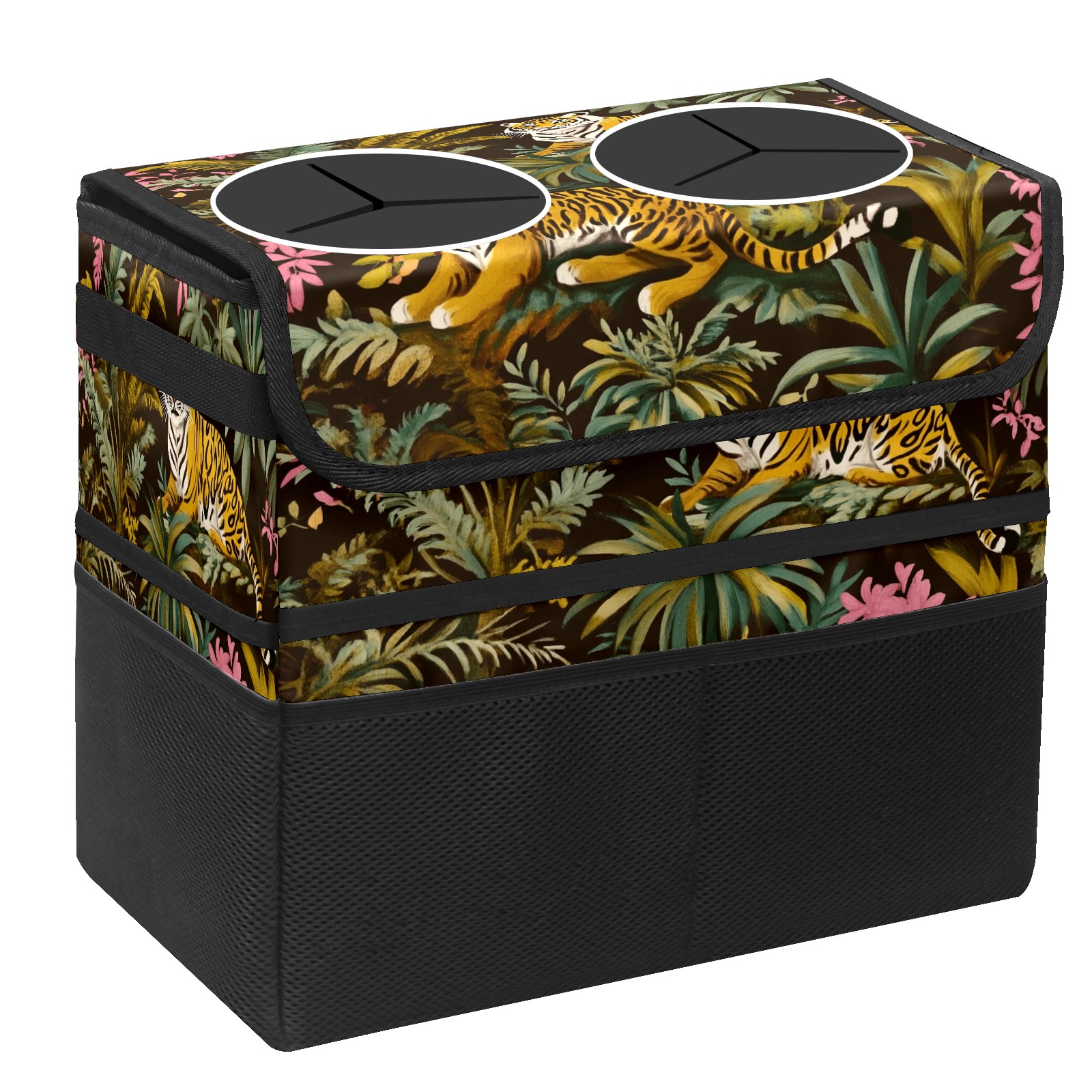 Car Trash Can with Lid, Portable Hanging Automotive Garbage Bin for Vehicles, Leakproof Waste Bag Container for SUV Truck Van Interior Auto Travel Road Trips(Tigers)