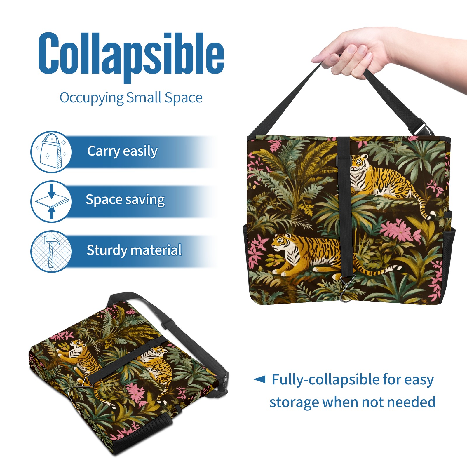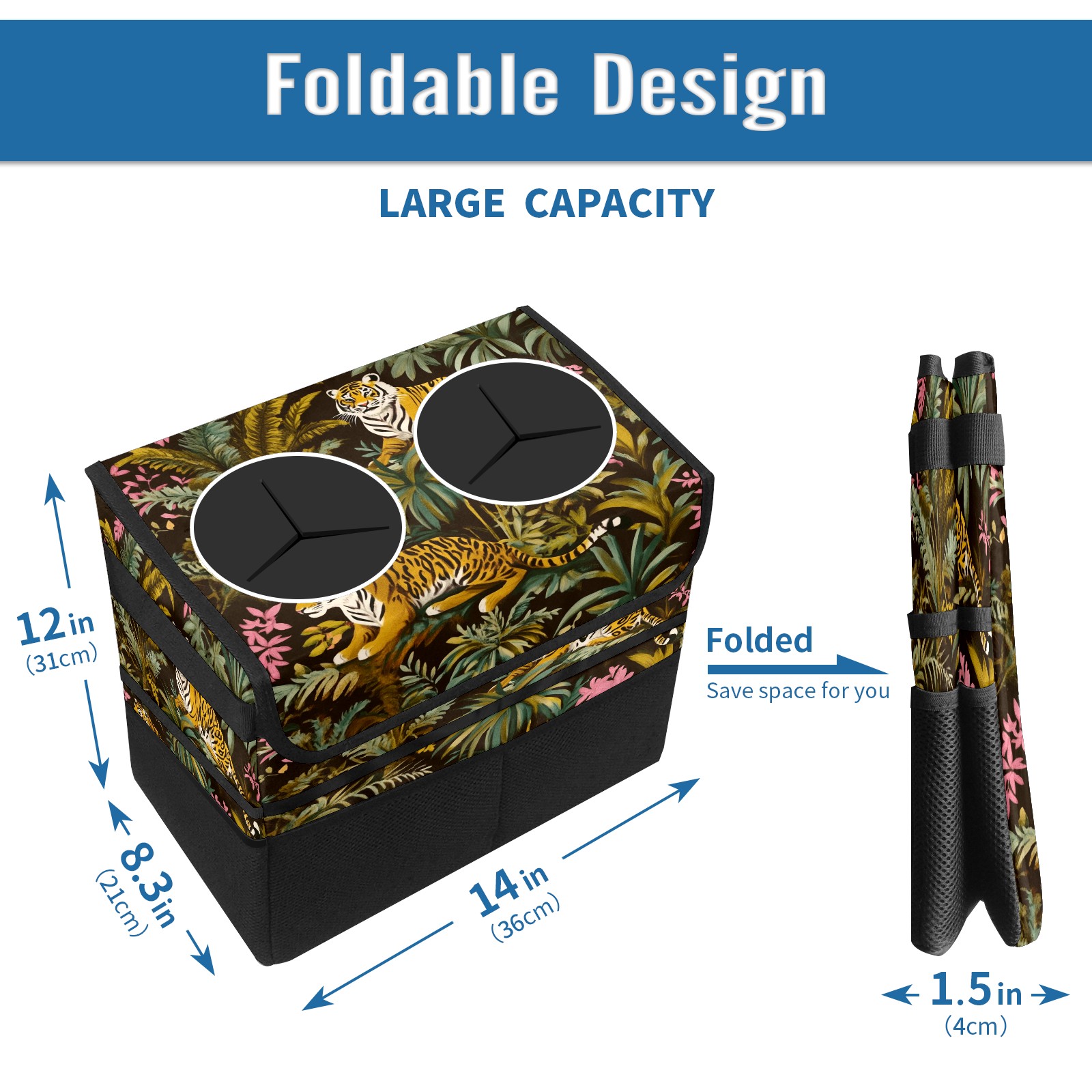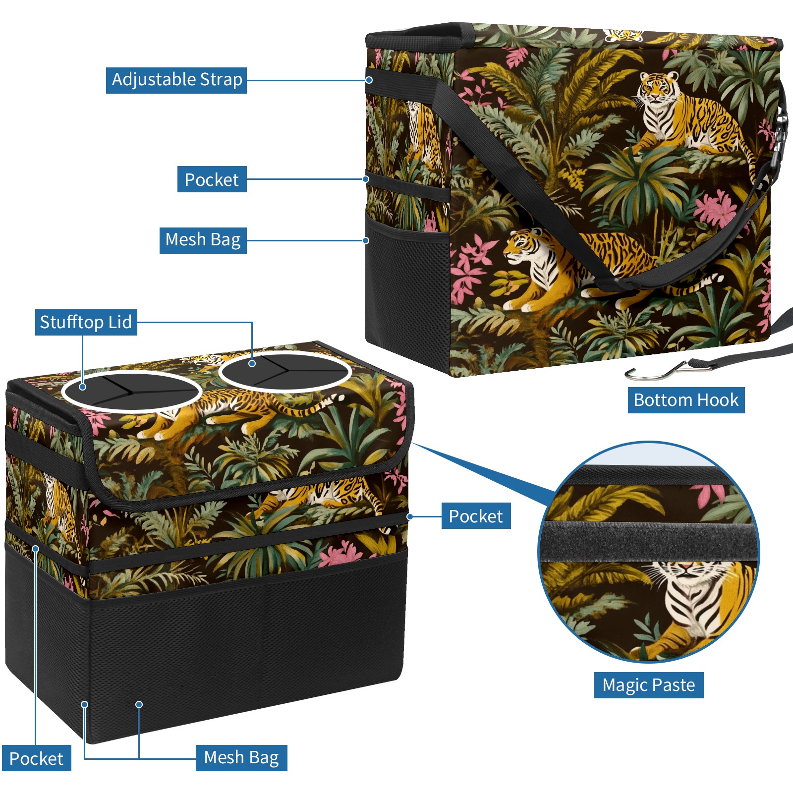 Car Trash Can with Lid, Portable Hanging Automotive Garbage Bin for Vehicles, Leakproof Waste Bag Container for SUV Truck Van Interior Auto Travel Road Trips(Tigers)