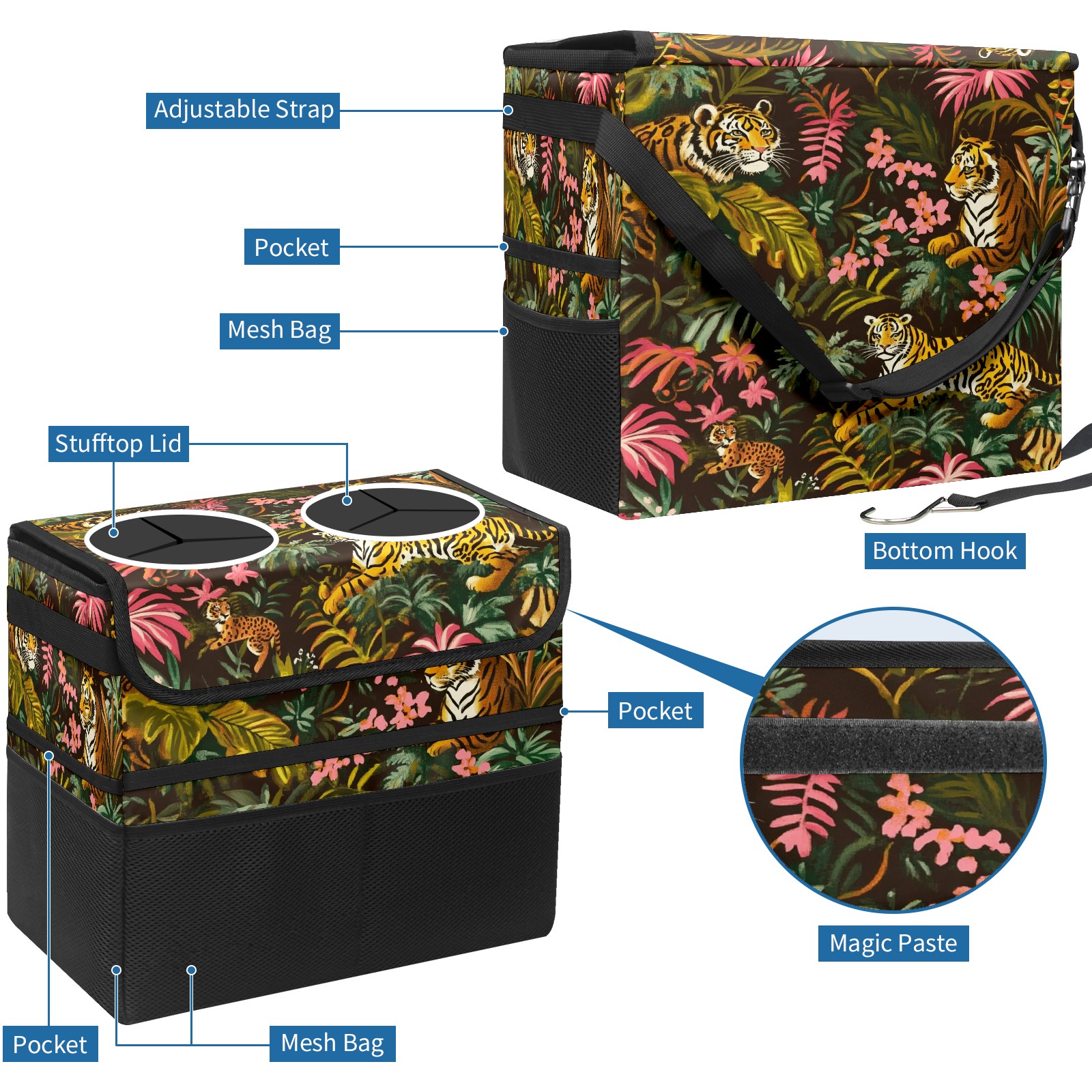 Car Trash Can with Lid, Portable Hanging Automotive Garbage Bin for Vehicles, Leakproof Waste Bag Container for SUV Truck Van Interior Auto Travel Road Trips(Leopards)