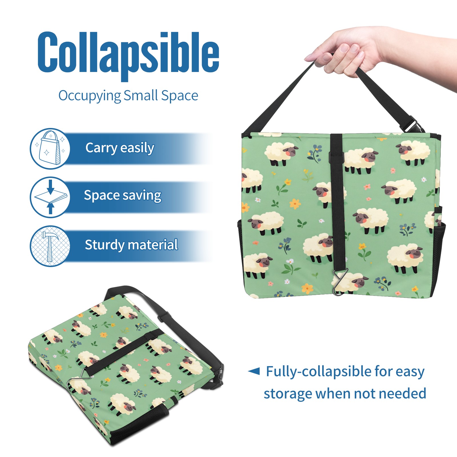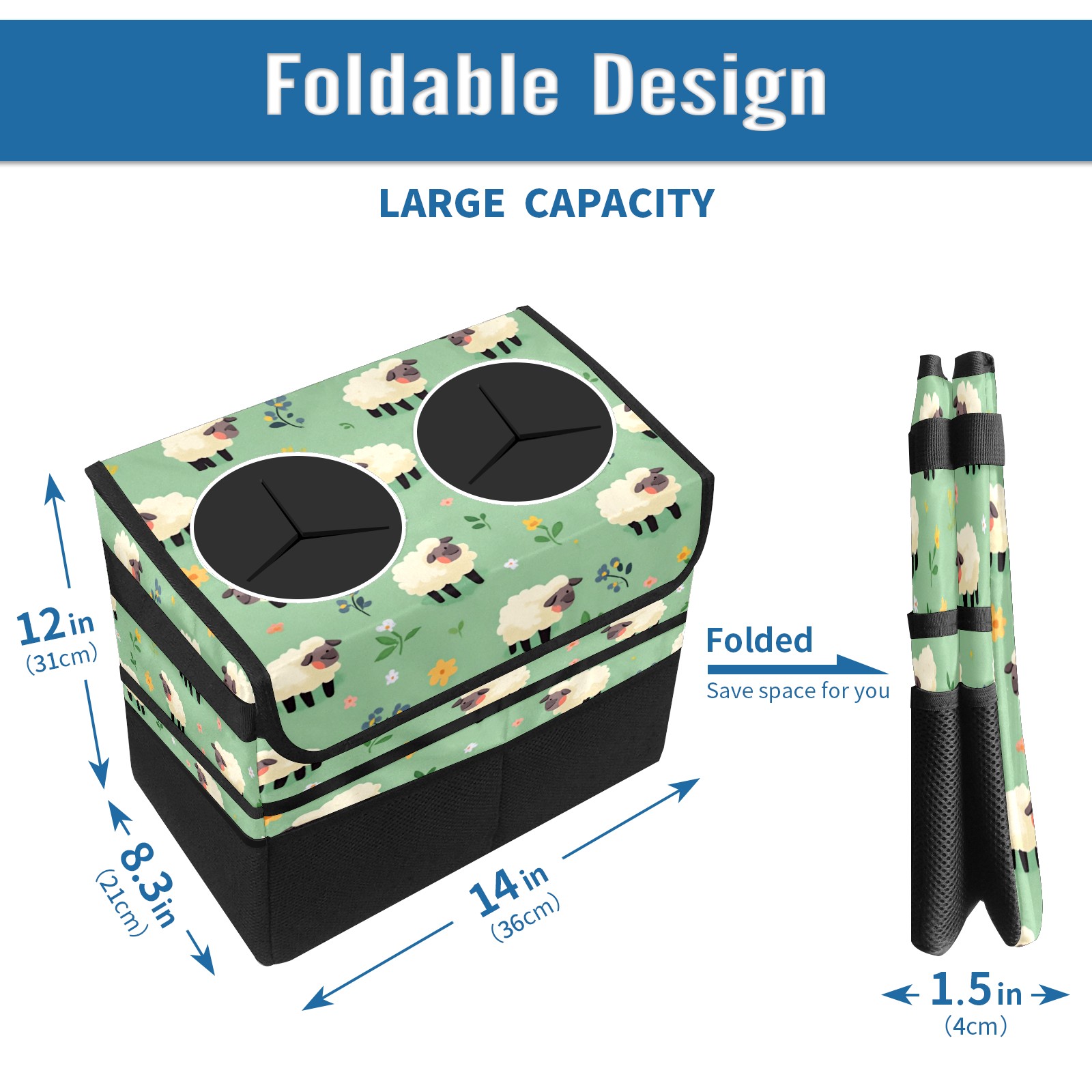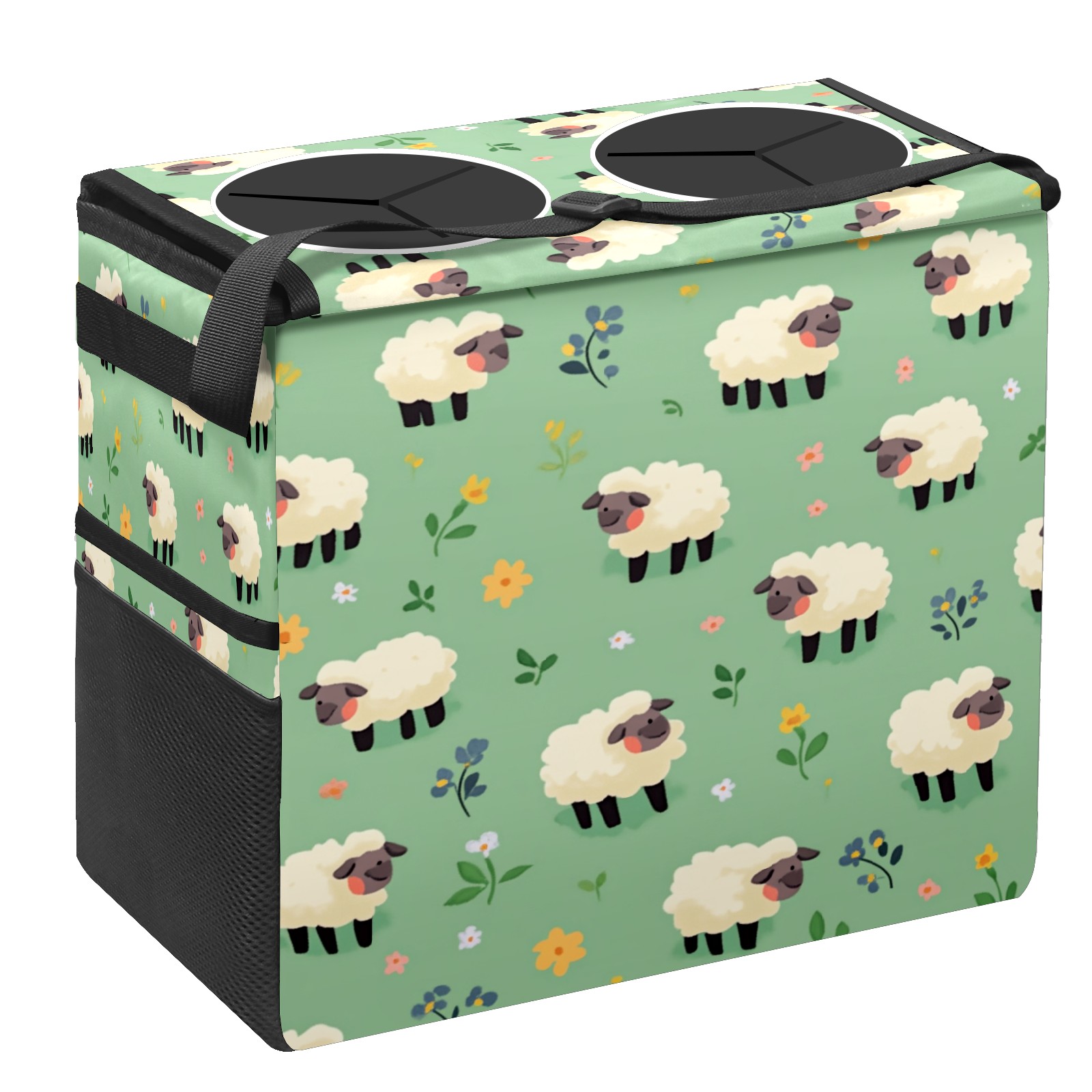 Car Trash Can with Lid, Portable Hanging Automotive Garbage Bin for Vehicles, Leakproof Waste Bag Container for SUV Truck Van Interior Auto Travel Road Trips(Cartoon Sheep)