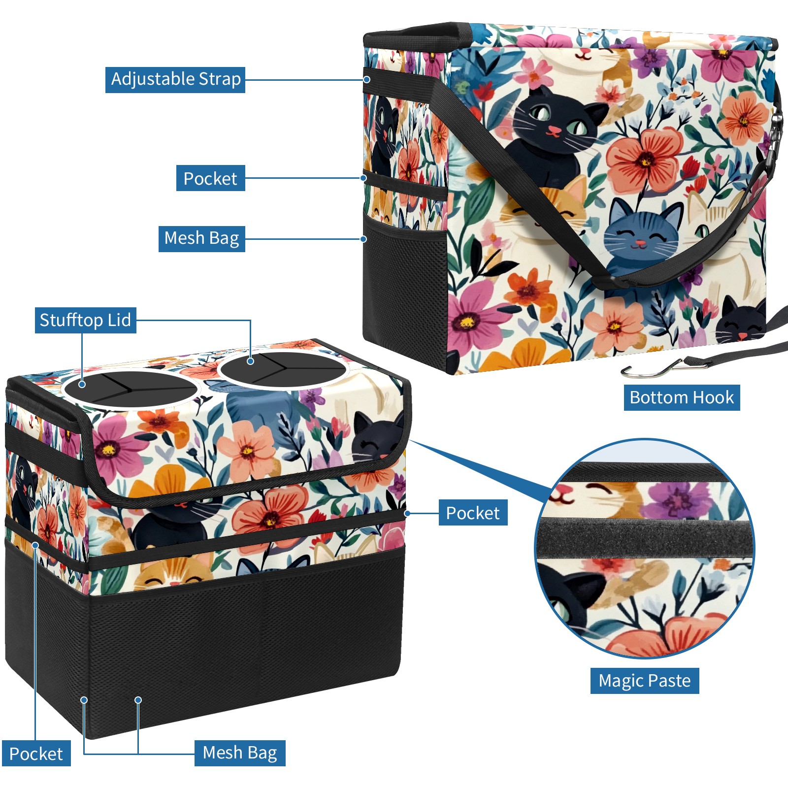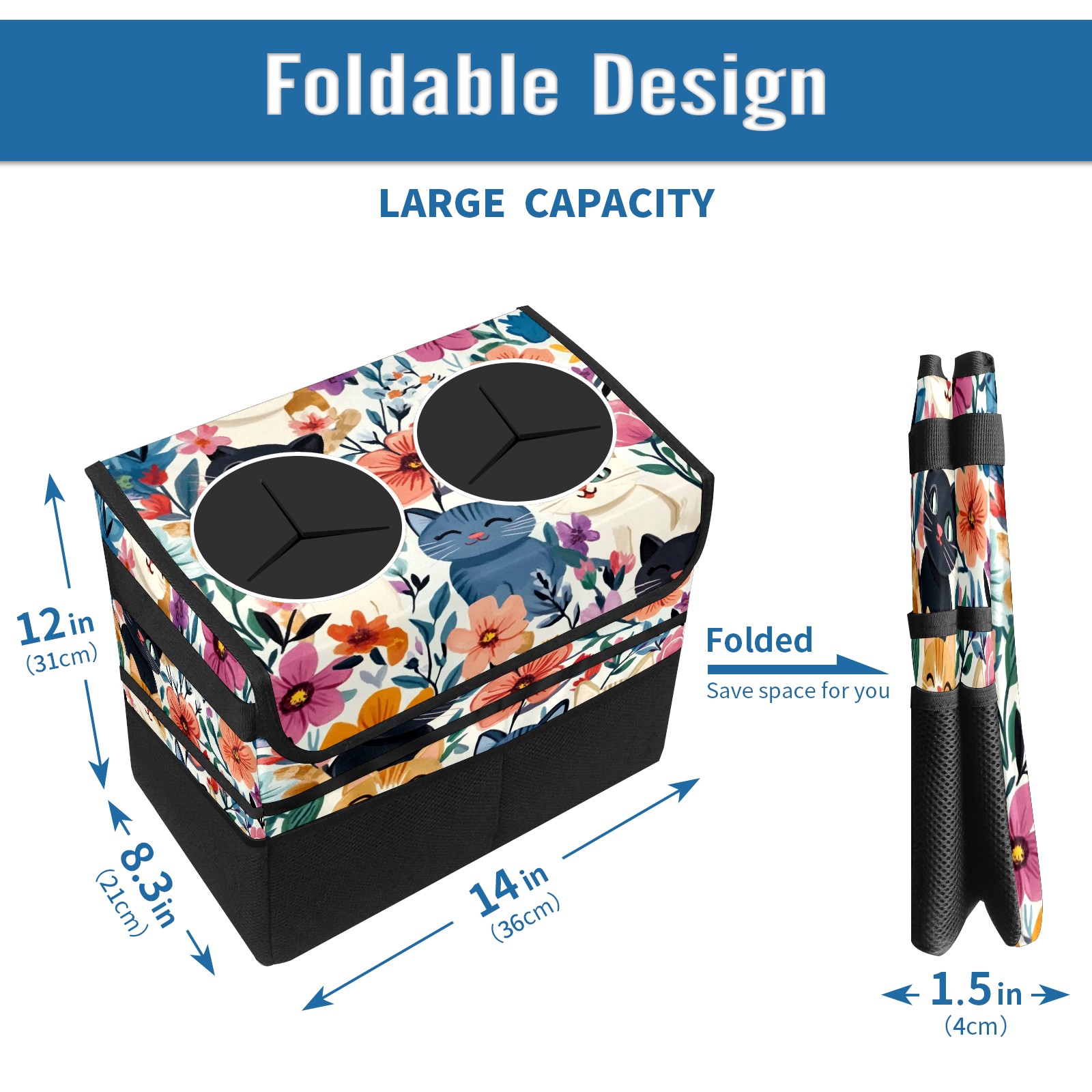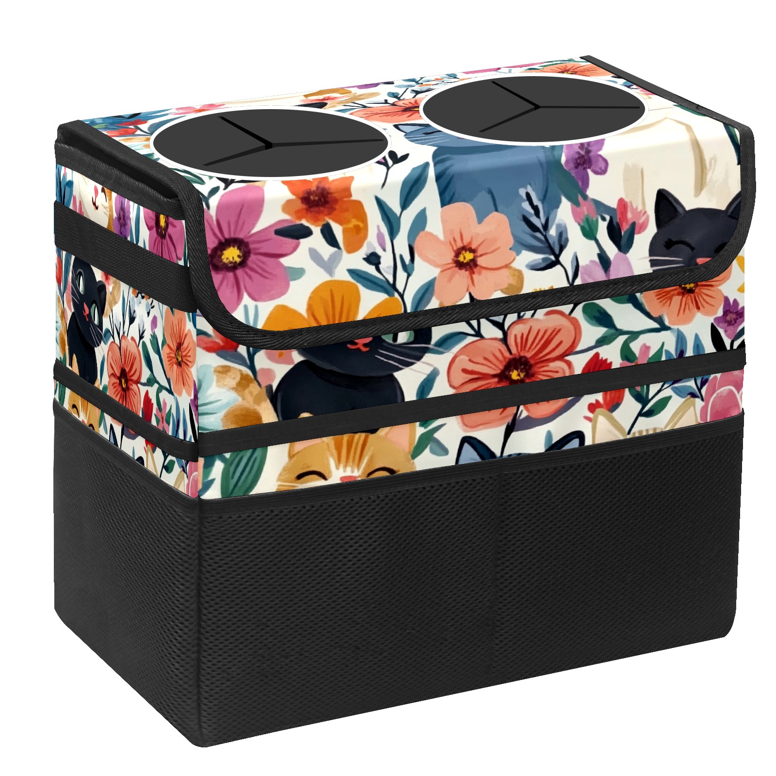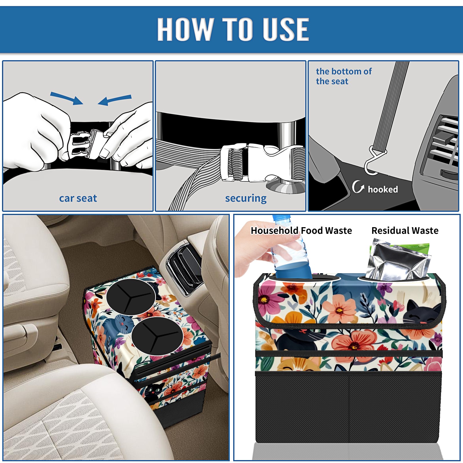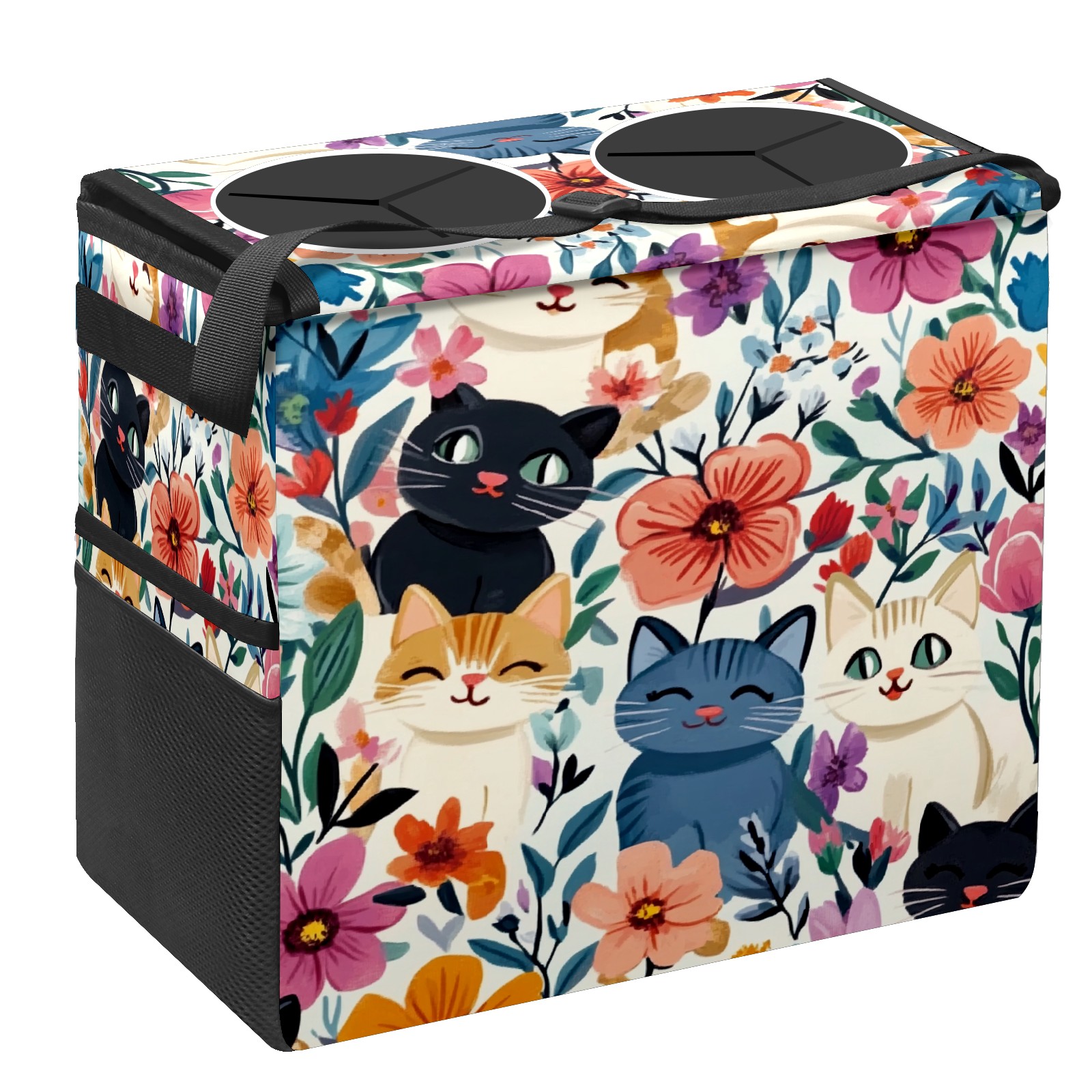 Car Trash Can with Lid, Portable Hanging Automotive Garbage Bin for Vehicles, Leakproof Waste Bag Container for SUV Truck Van Interior Auto Travel Road Trips(Adorable Cats)