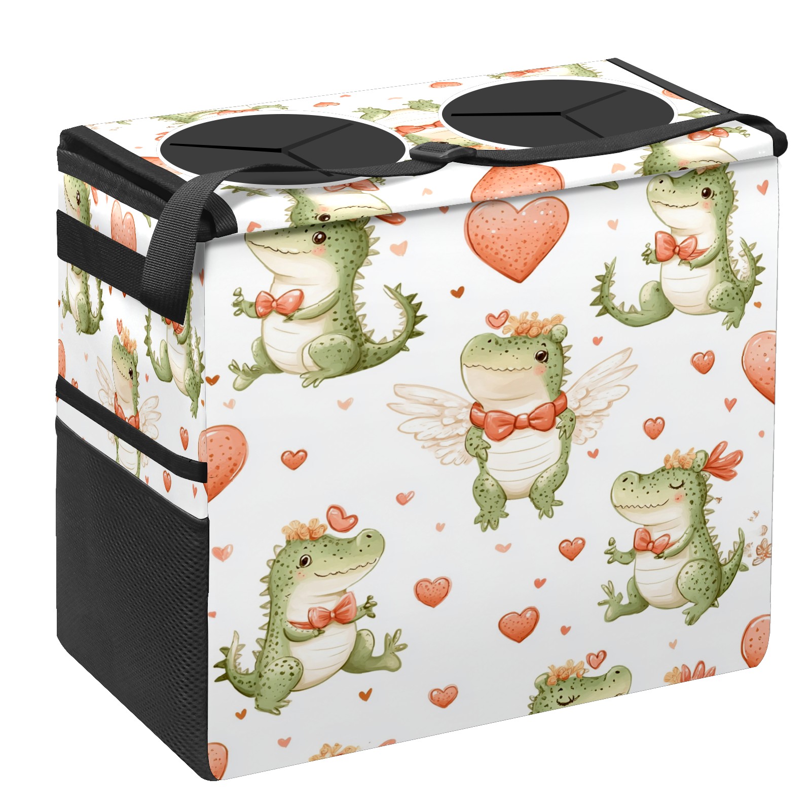 Car Trash Can with Lid, Portable Hanging Automotive Garbage Bin for Vehicles, Leakproof Waste Bag Container for SUV Truck Van Interior Auto Travel Road Trips(Crocodiles)