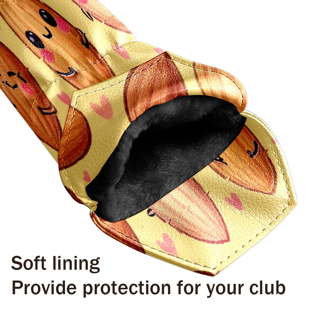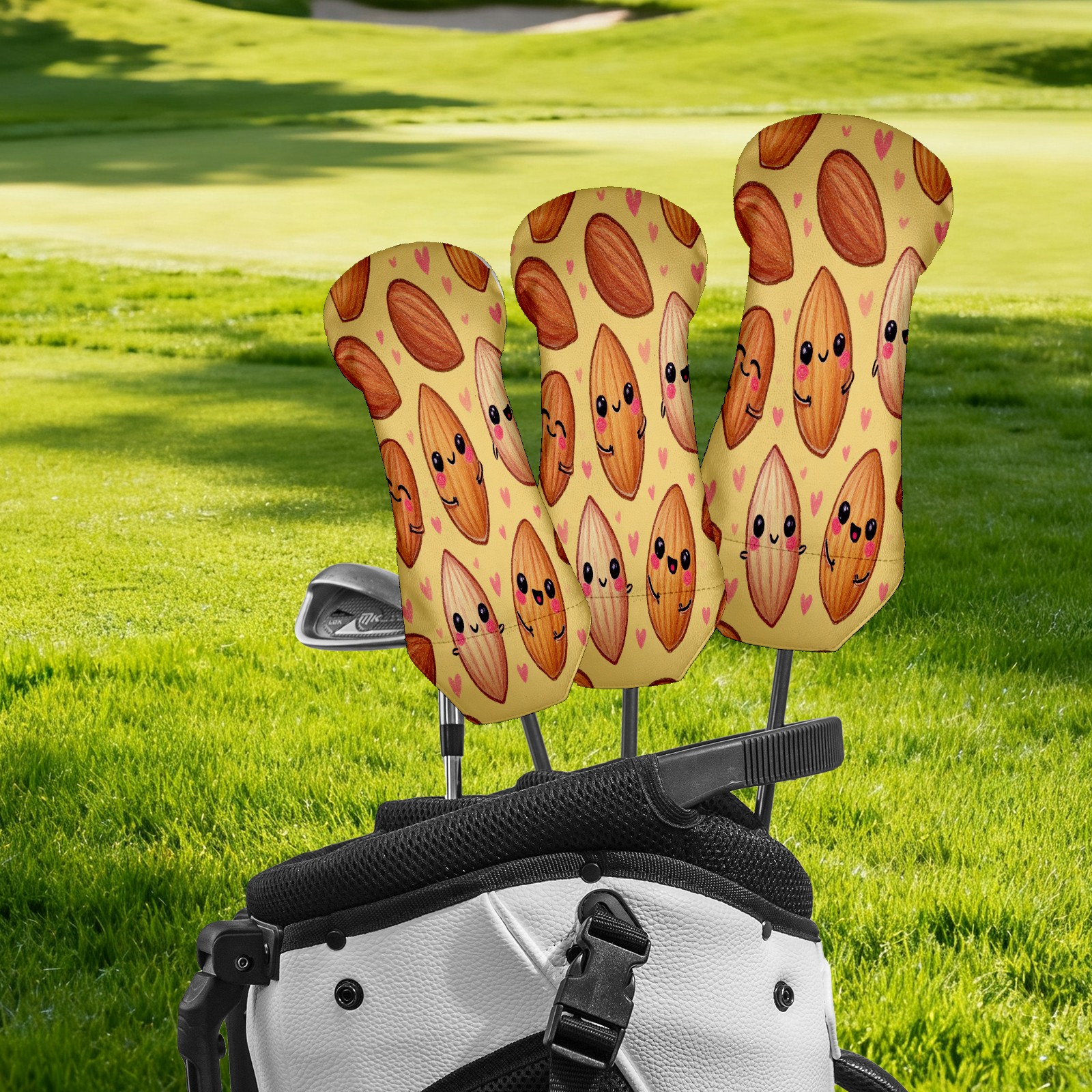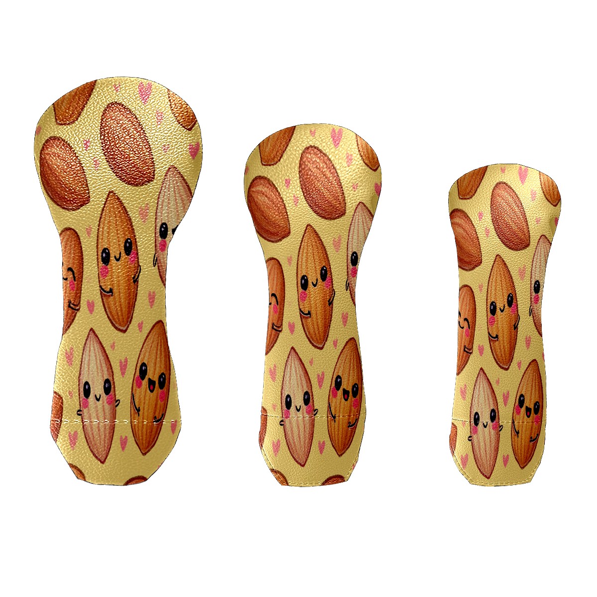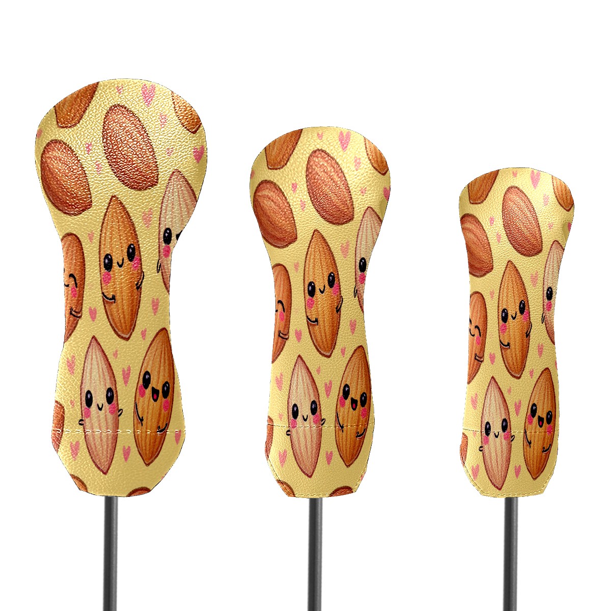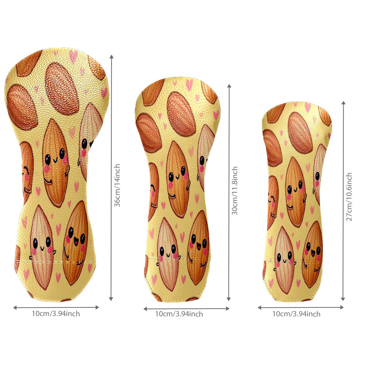 Golf Head Covers 3-Pack Yellow Almonds Waterproof PU Leather & Plush Velvet Lining Fits Driver Fairway Hybrid Clubs, Scratch Protection Durable Golf Gift for Men & Women