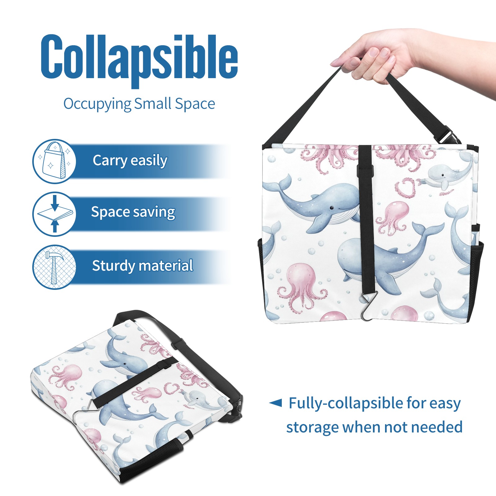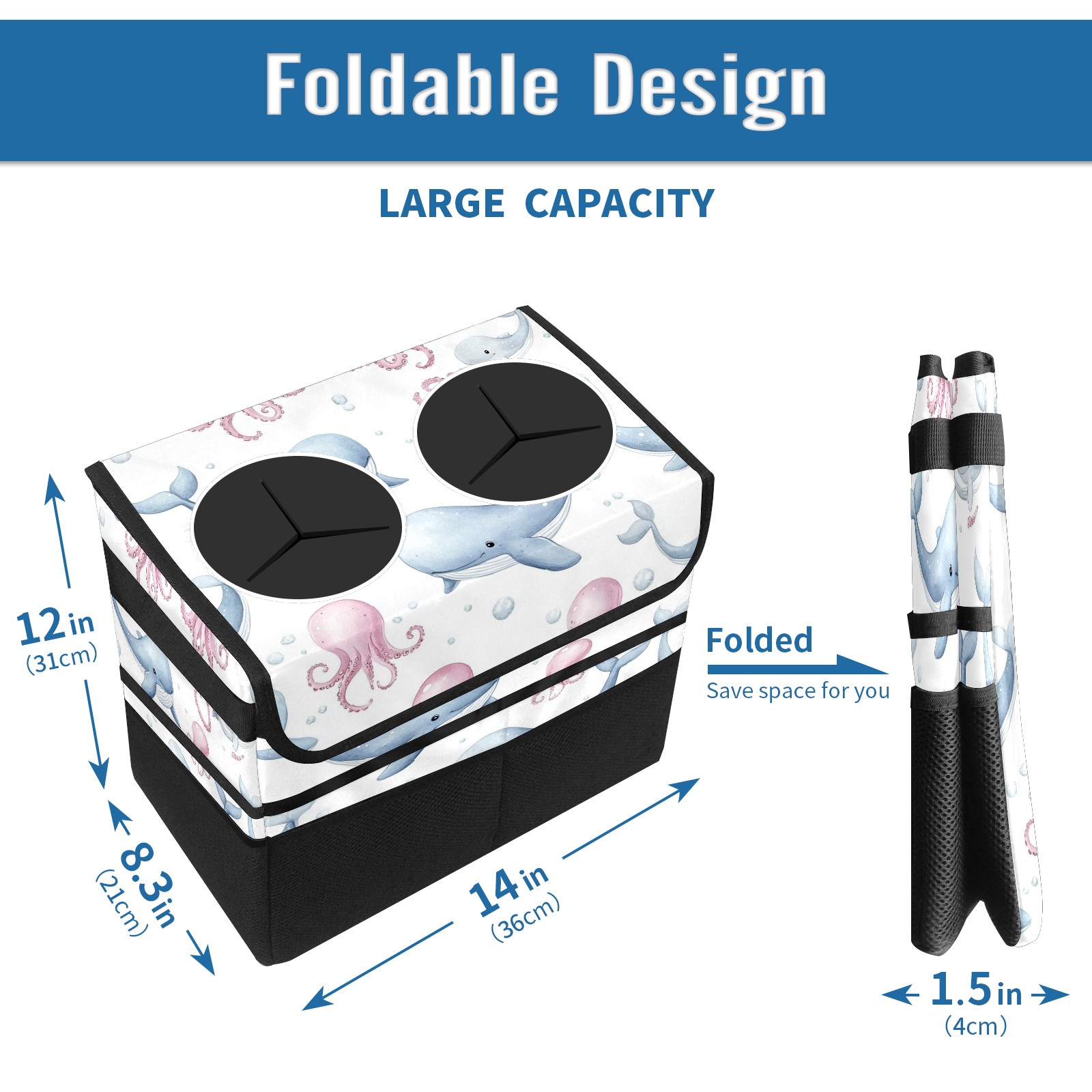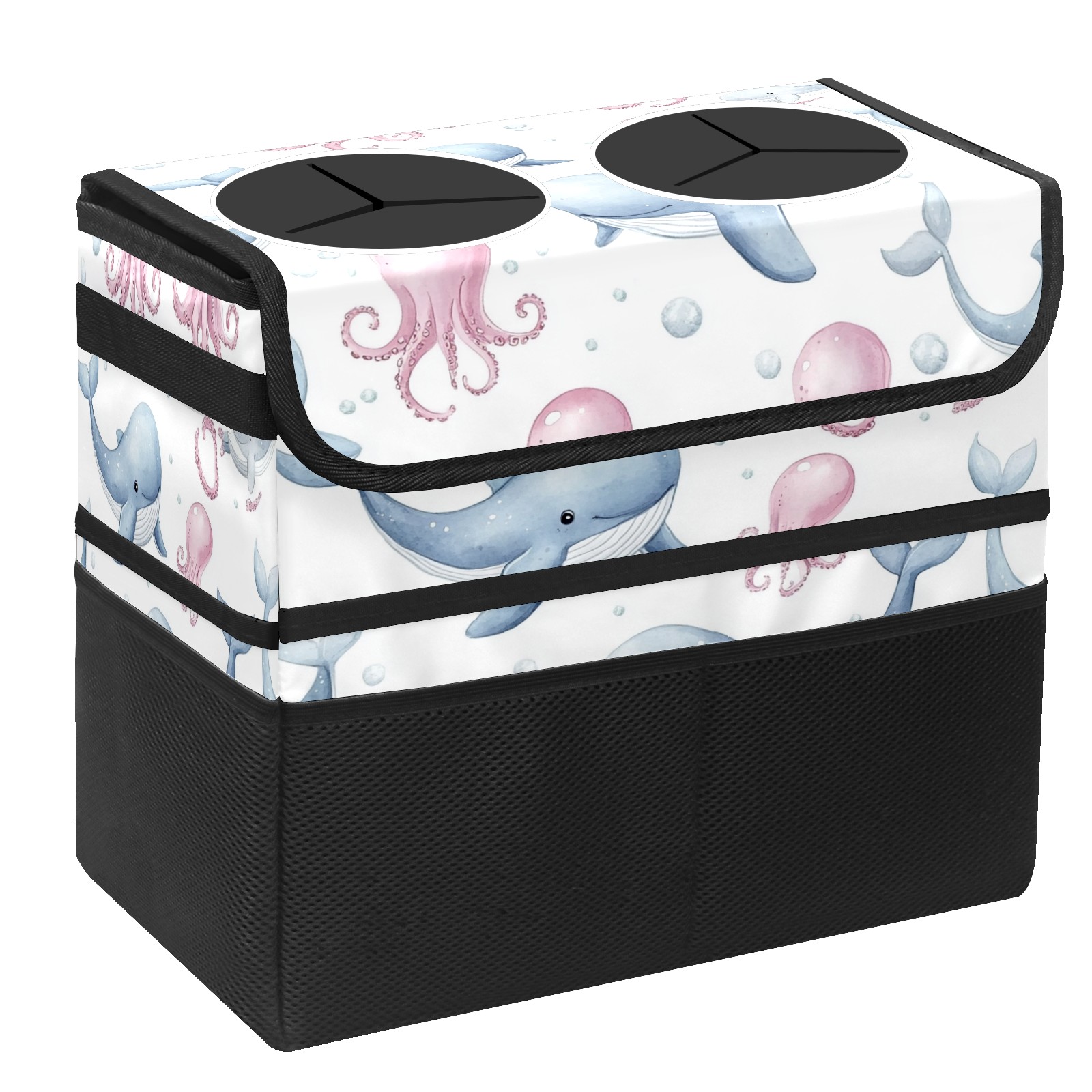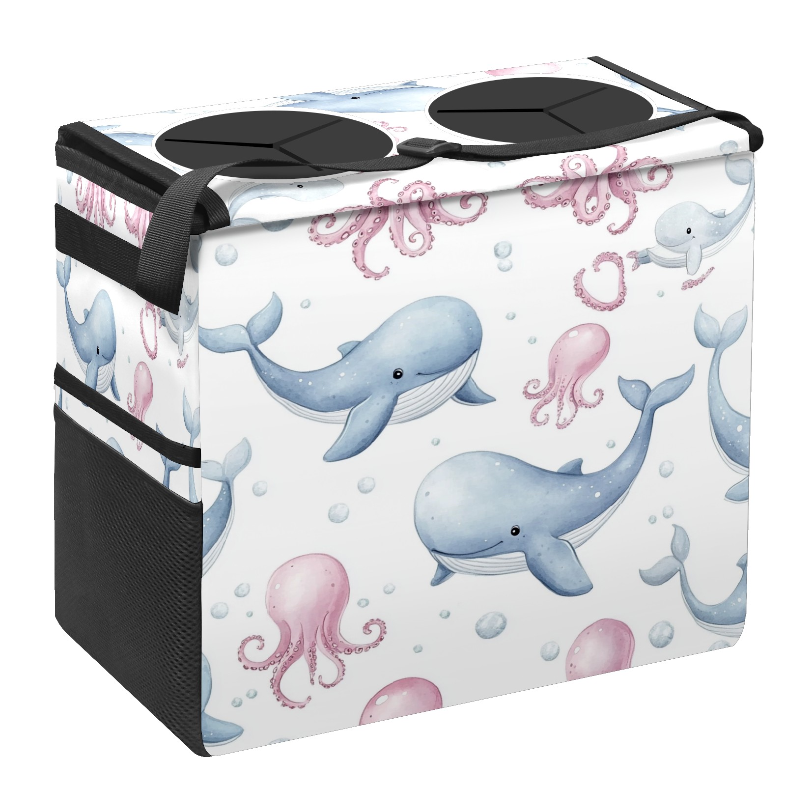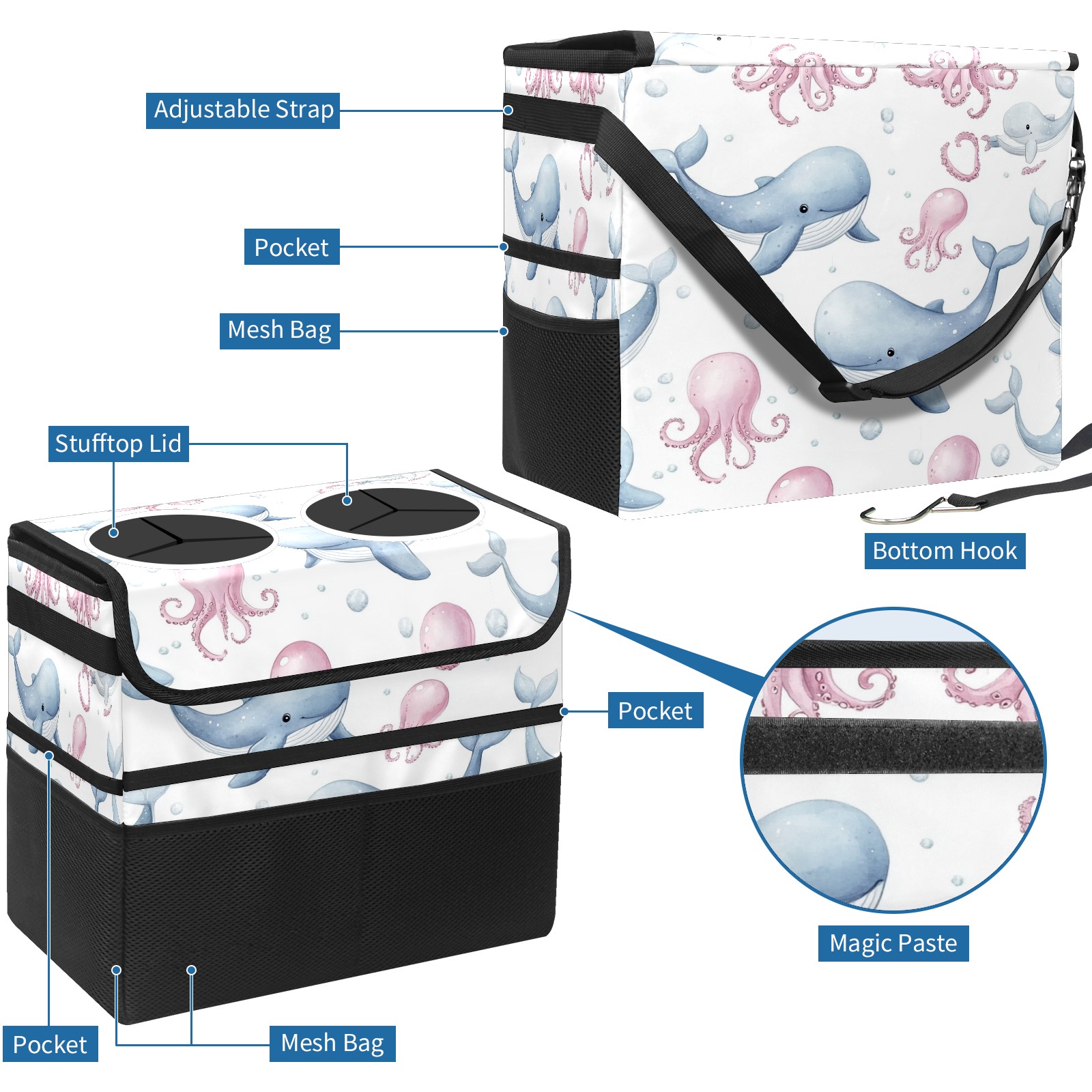 Car Trash Can with Lid, Portable Hanging Automotive Garbage Bin for Vehicles, Leakproof Waste Bag Container for SUV Truck Van Interior Auto Travel Road Trips(Blue Whales)