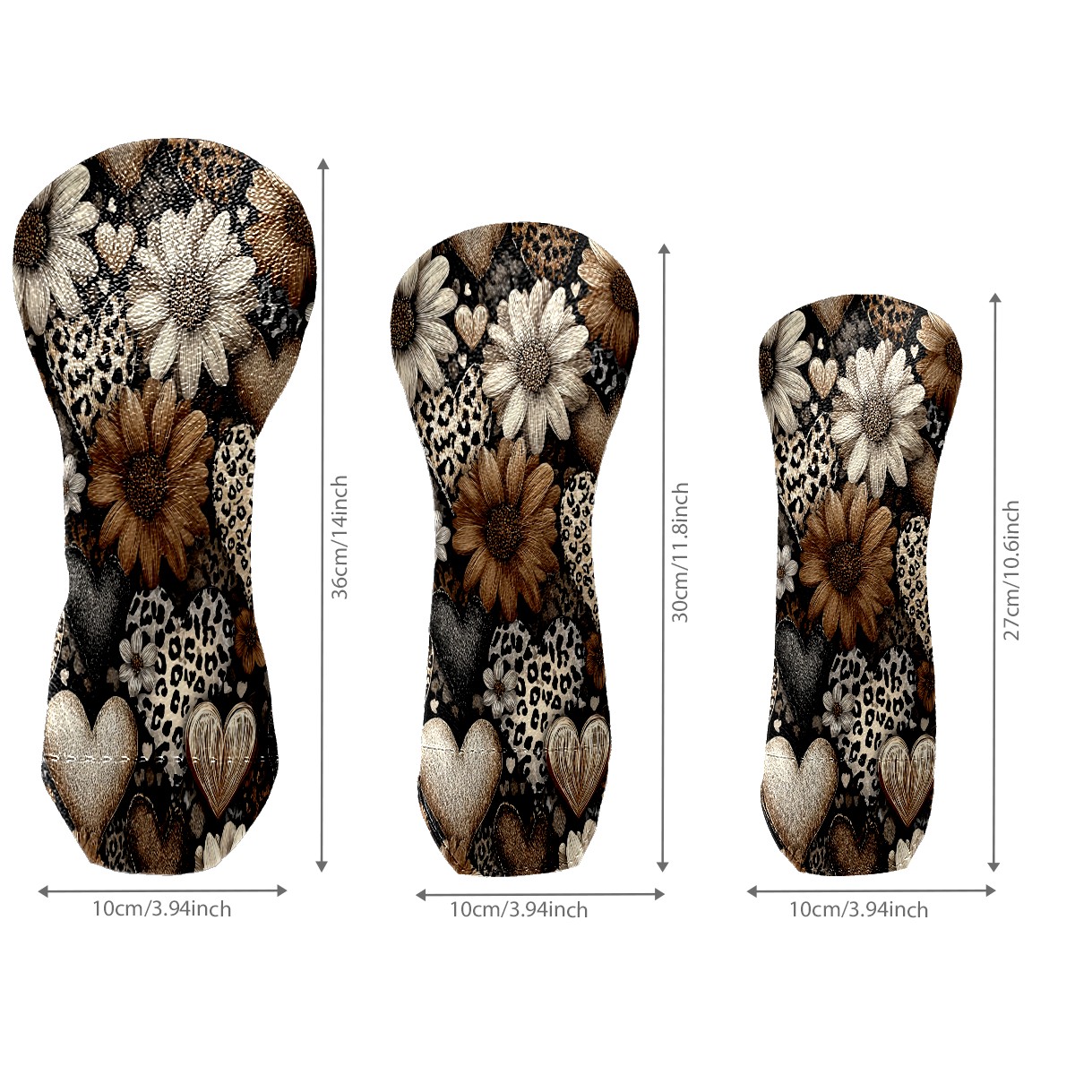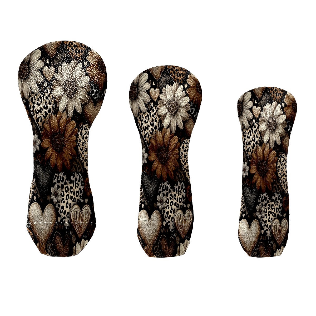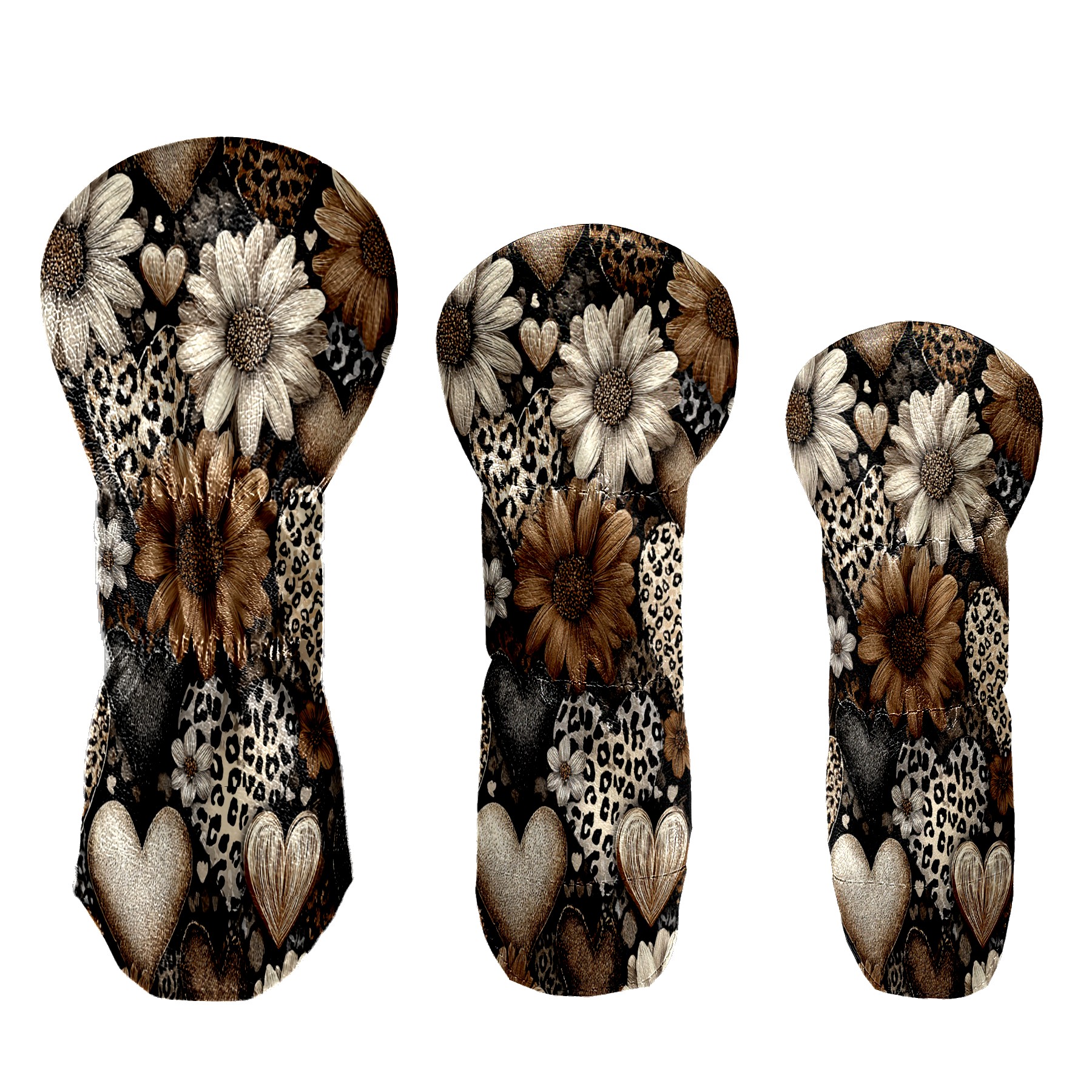 Golf Head Covers 3-Pack Brown Flower Waterproof PU Leather & Plush Velvet Lining Fits Driver Fairway Hybrid Clubs, Scratch Protection Durable Golf Gift for Men & Women