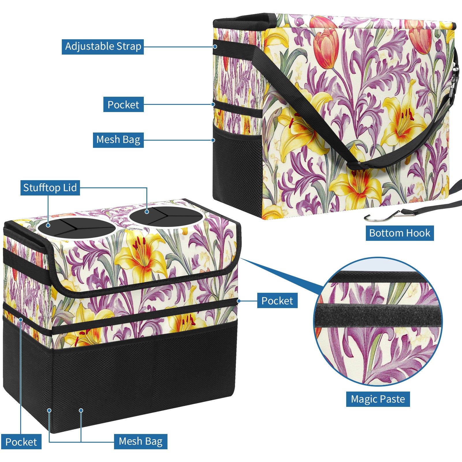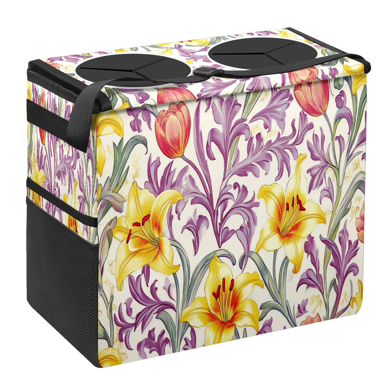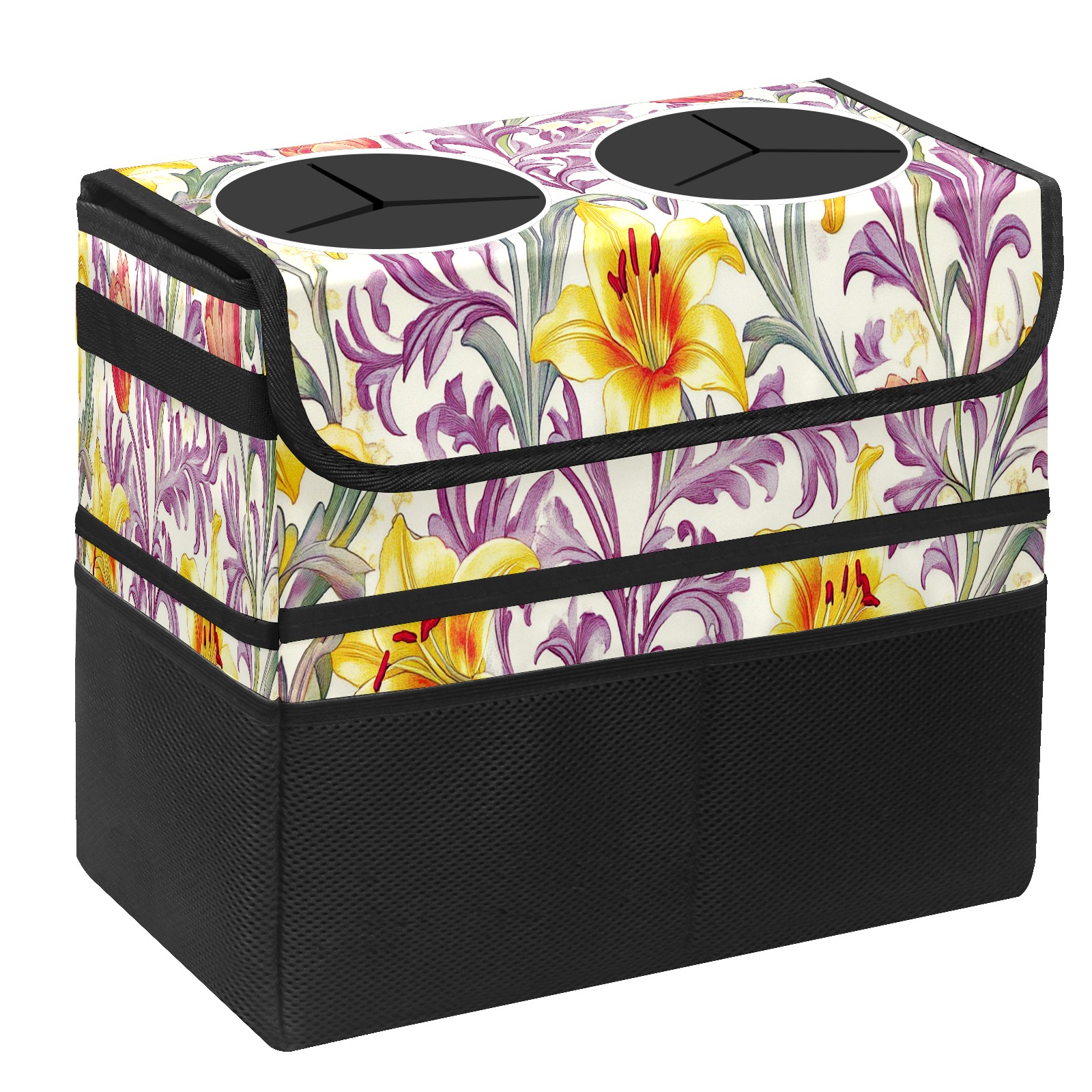 Car Trash Can with Lid, Portable Hanging Automotive Garbage Bin for Vehicles, Leakproof Waste Bag Container for SUV Truck Van Interior Auto Travel Road Trips(Yellow Lily)