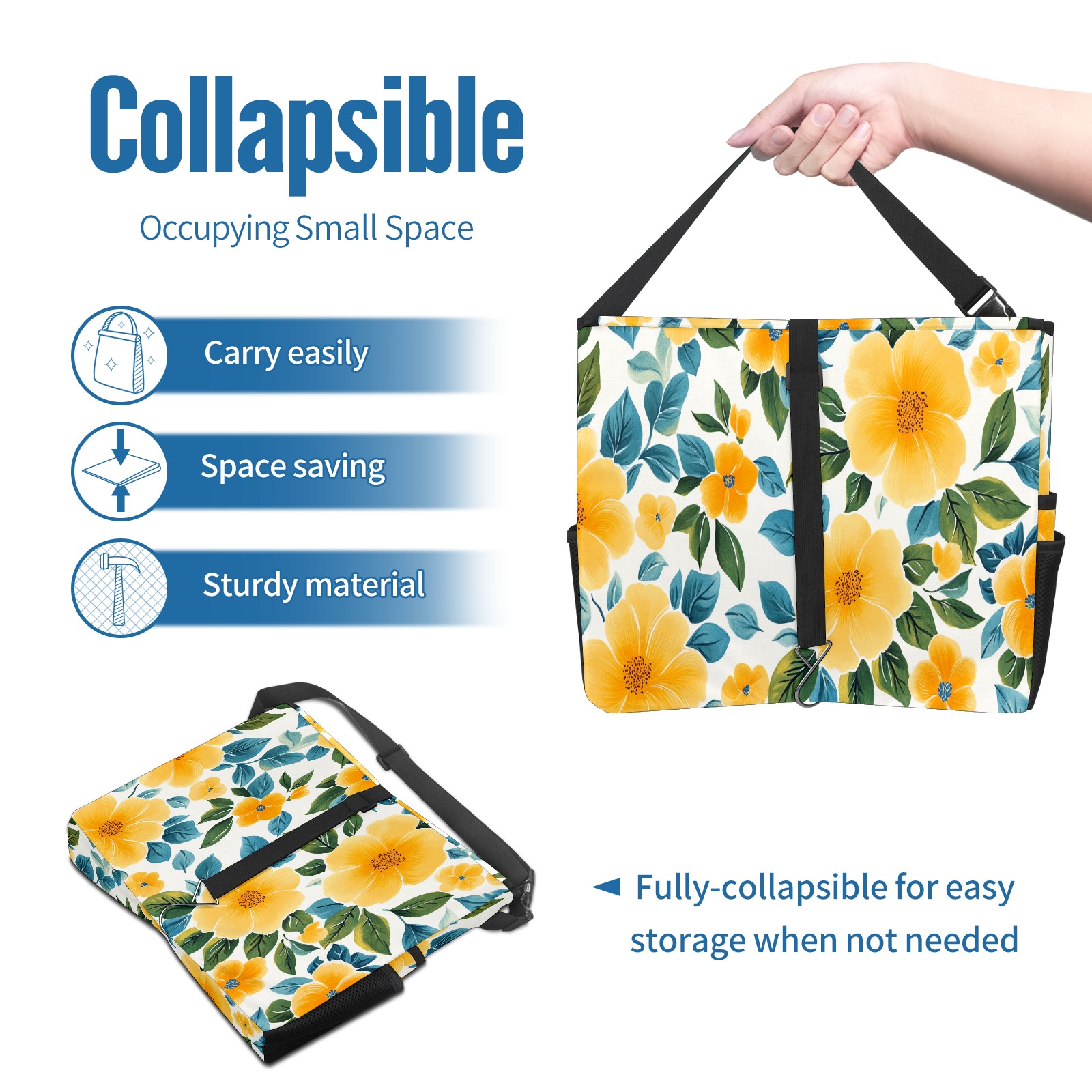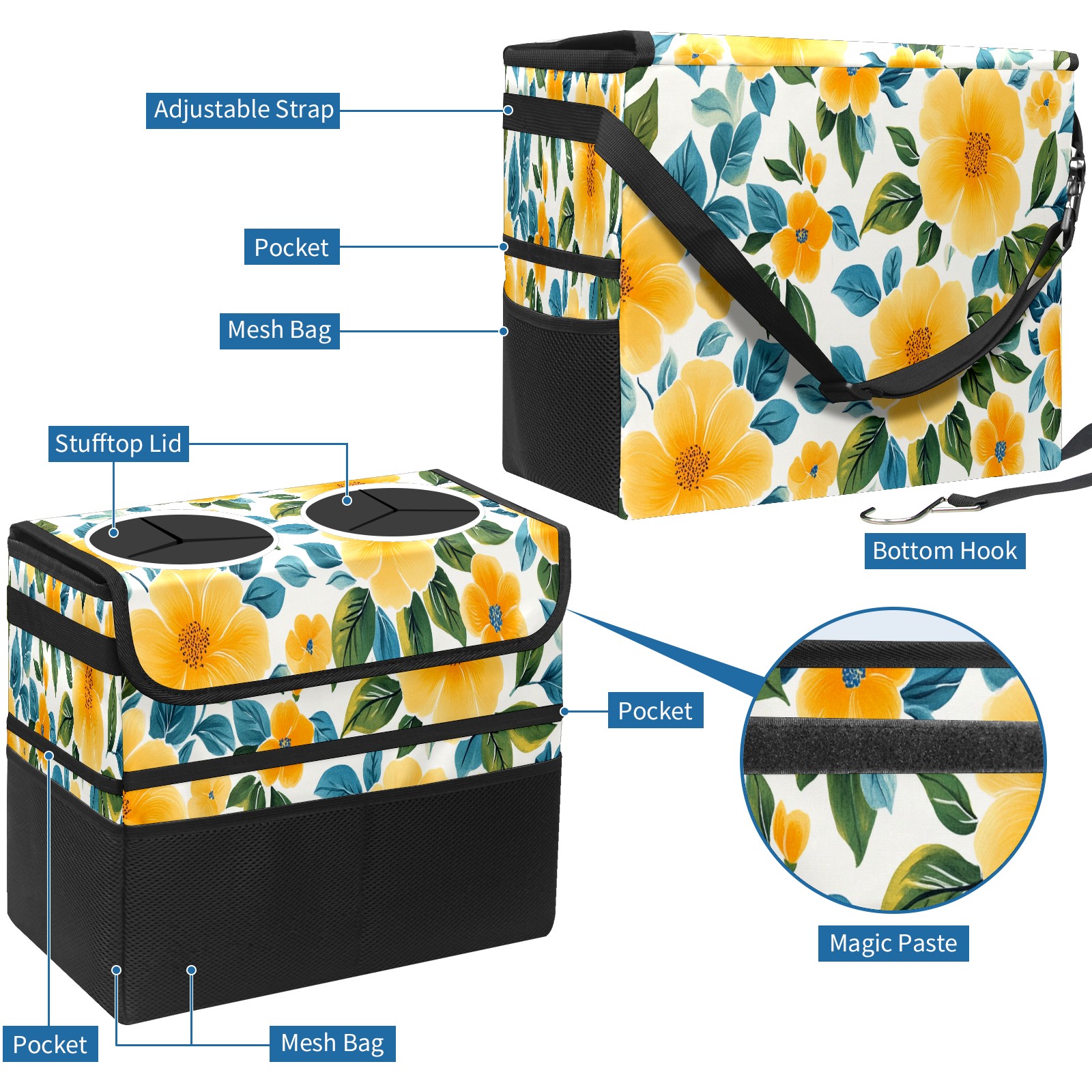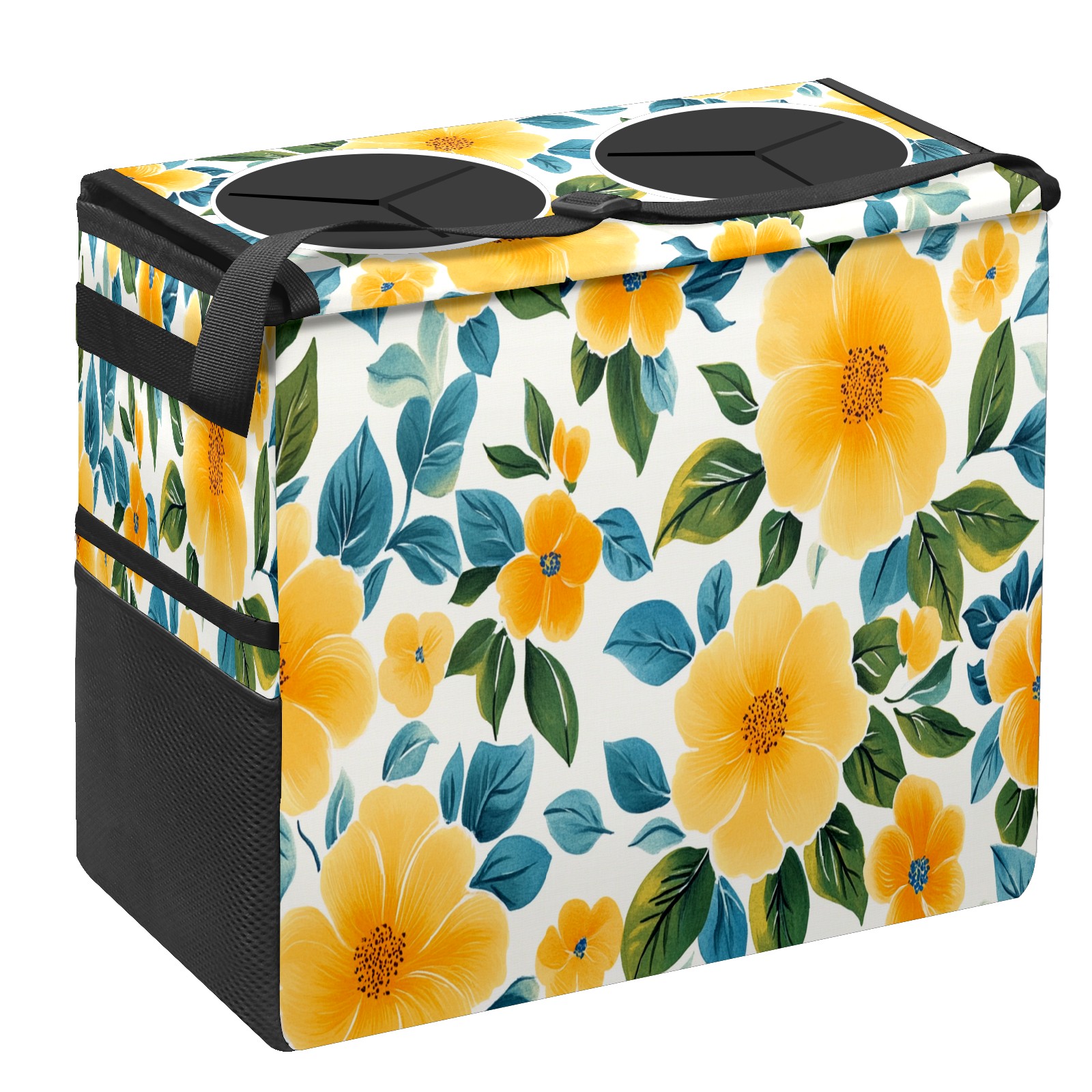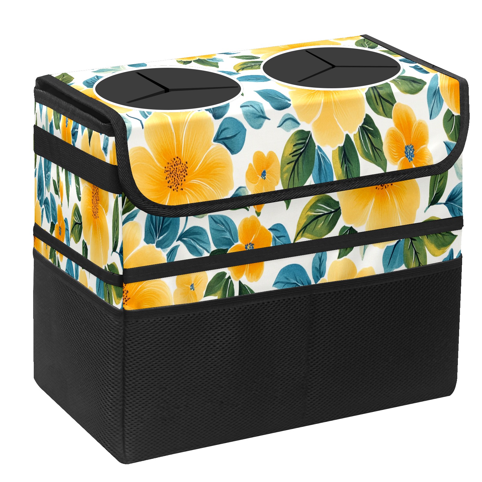 Car Trash Can with Lid, Portable Hanging Automotive Garbage Bin for Vehicles, Leakproof Waste Bag Container for SUV Truck Van Interior Auto Travel Road Trips(Yellow Green Floral)