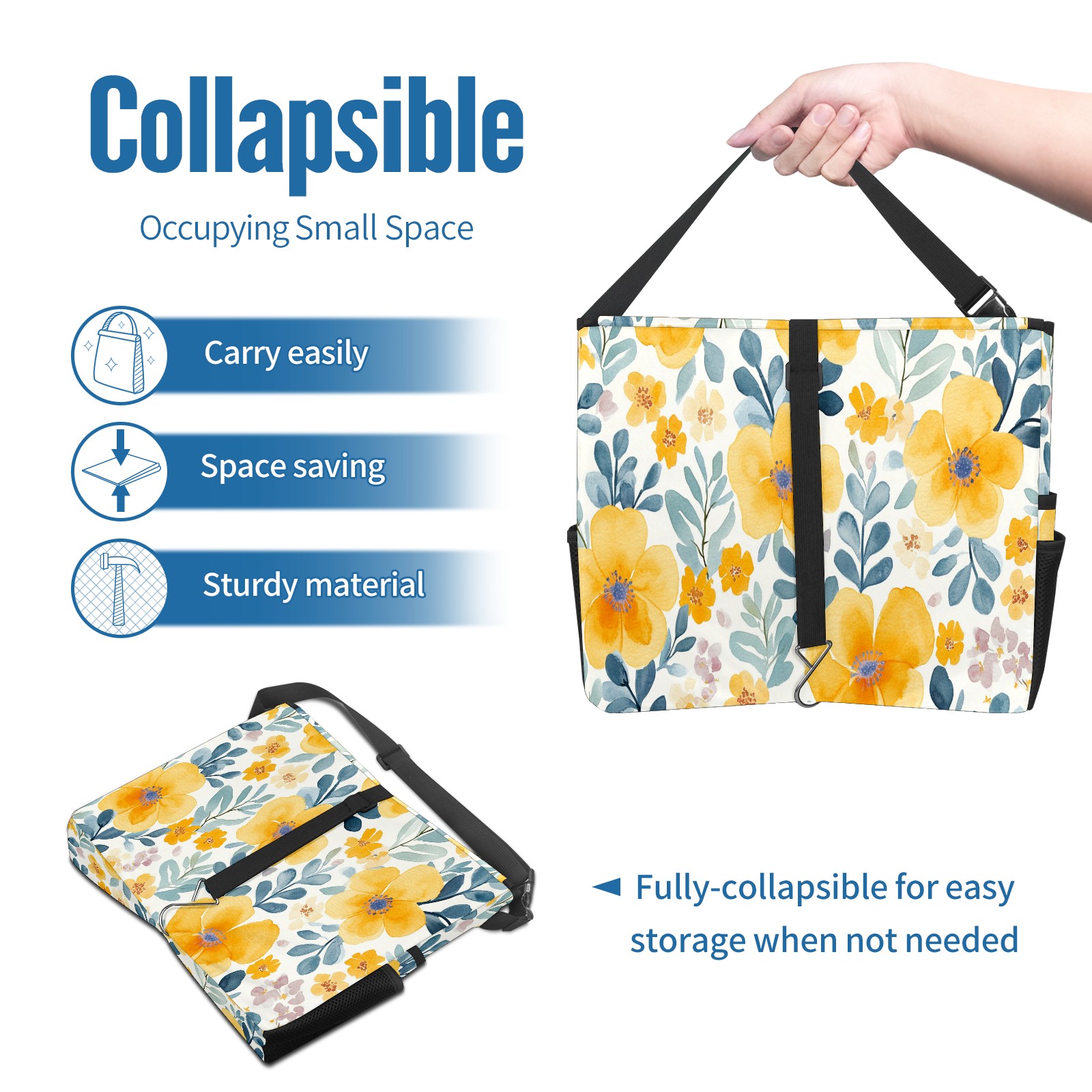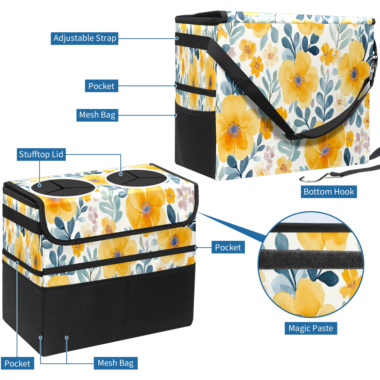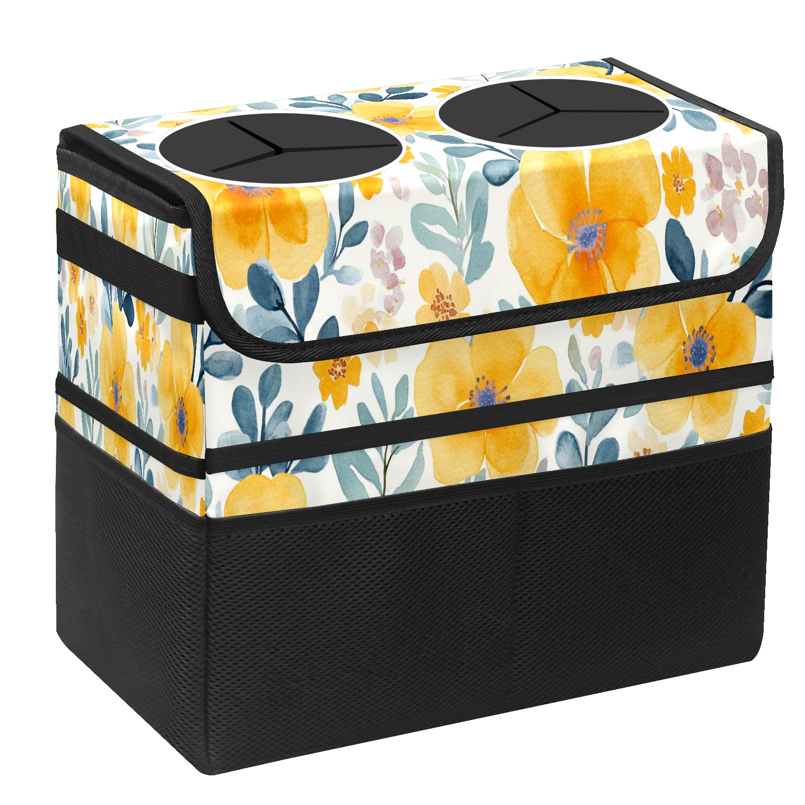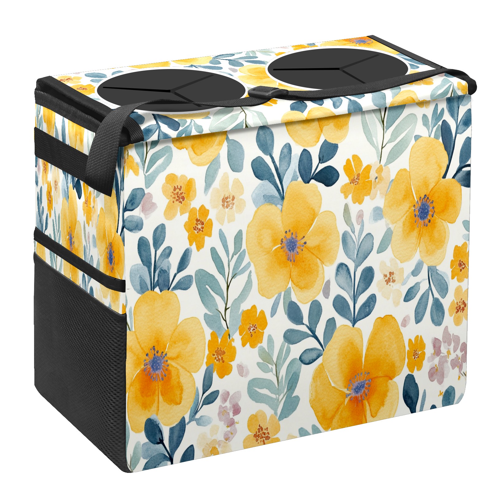 Car Trash Can with Lid, Portable Hanging Automotive Garbage Bin for Vehicles, Leakproof Waste Bag Container for SUV Truck Van Interior Auto Travel Road Trips(Watercolor Yellow Floral)