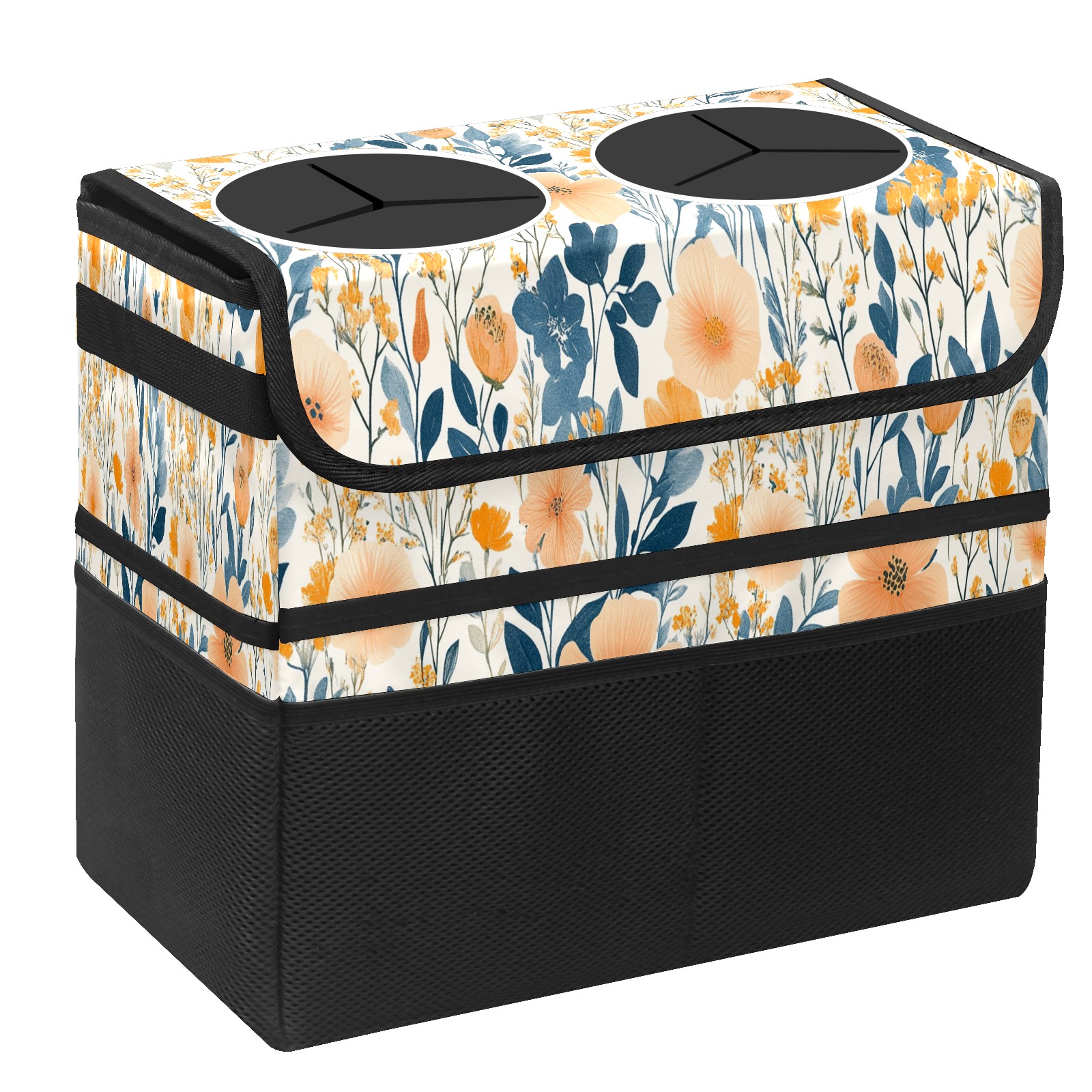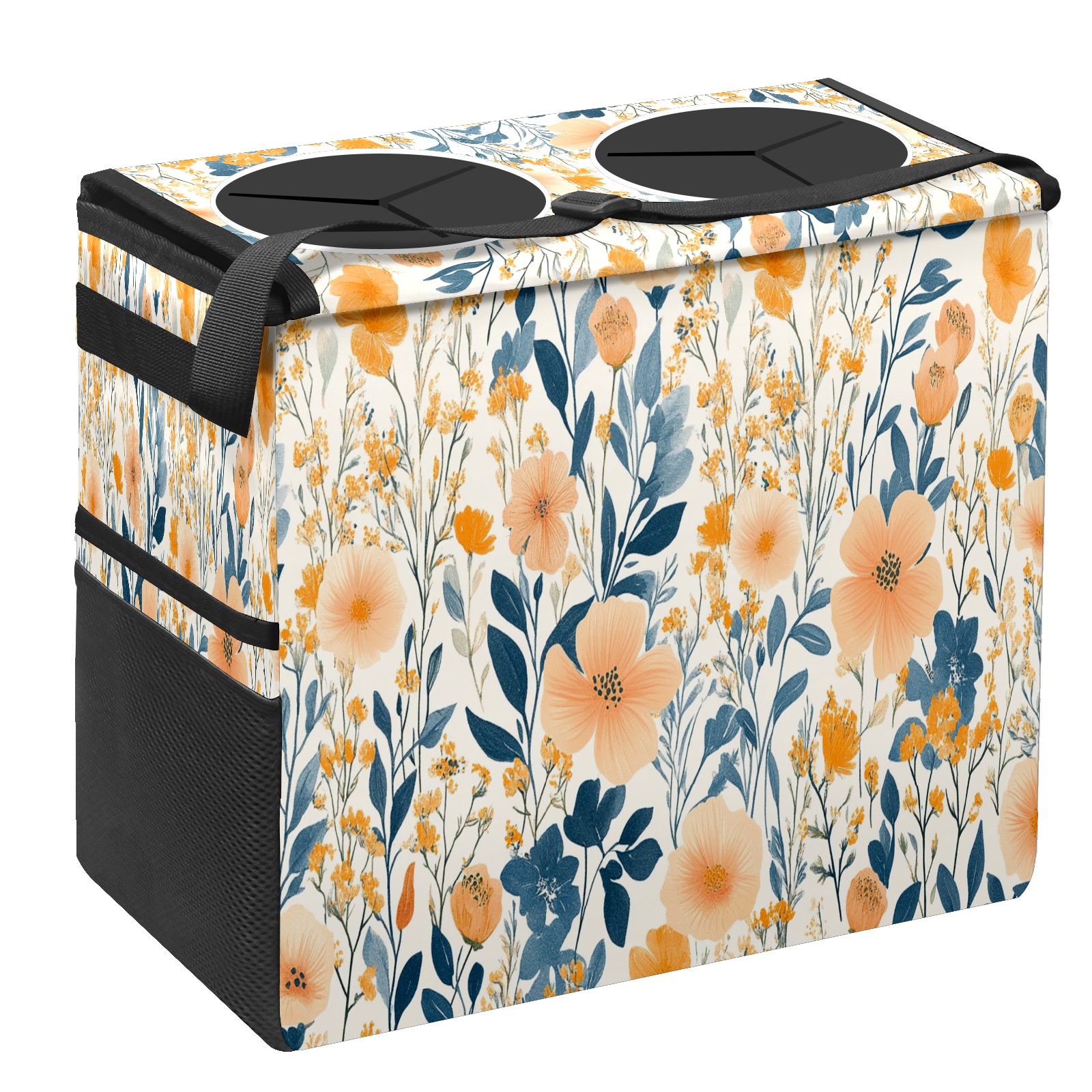 Car Trash Can with Lid, Portable Hanging Automotive Garbage Bin for Vehicles, Leakproof Waste Bag Container for SUV Truck Van Interior Auto Travel Road Trips(Peach Blue Wildflowers)