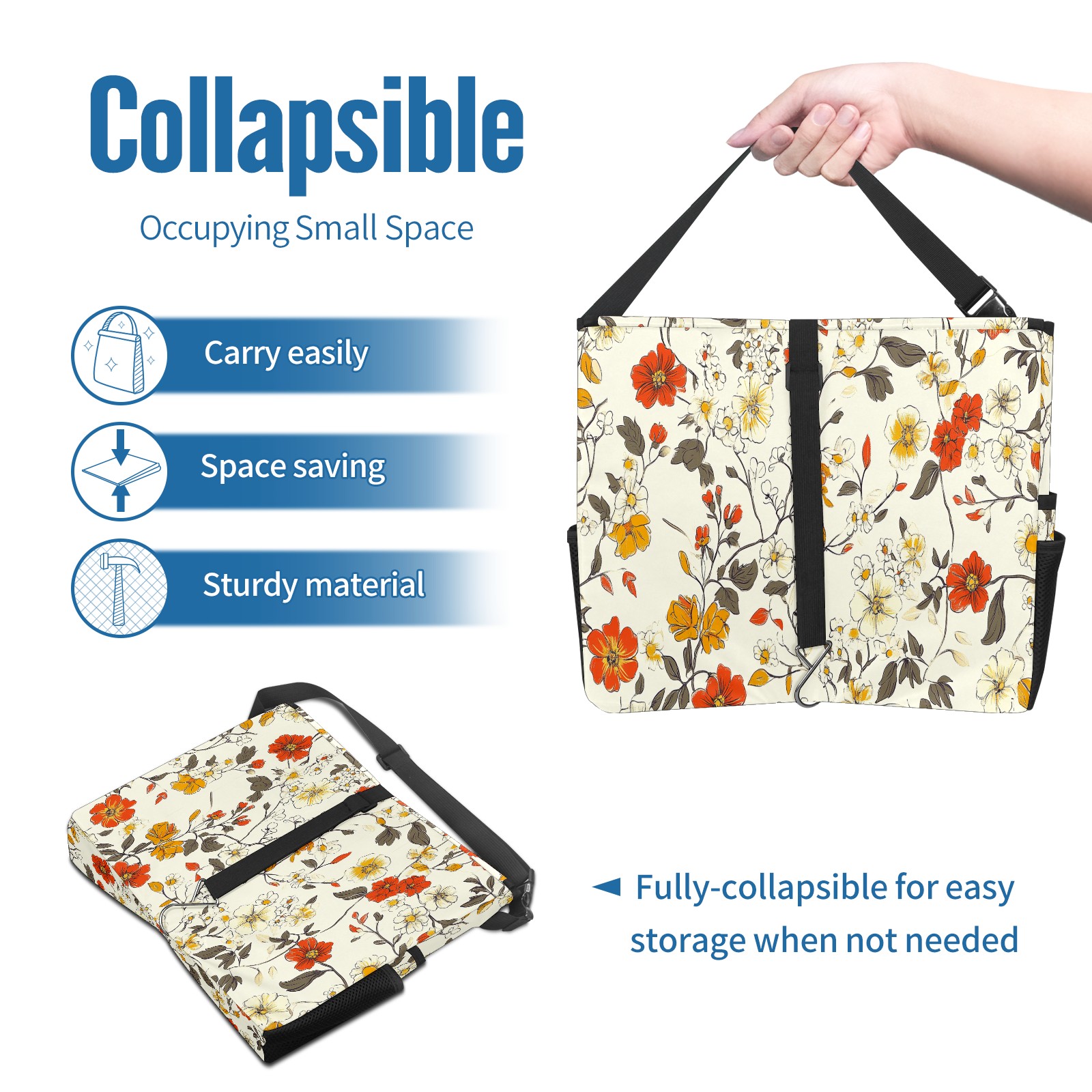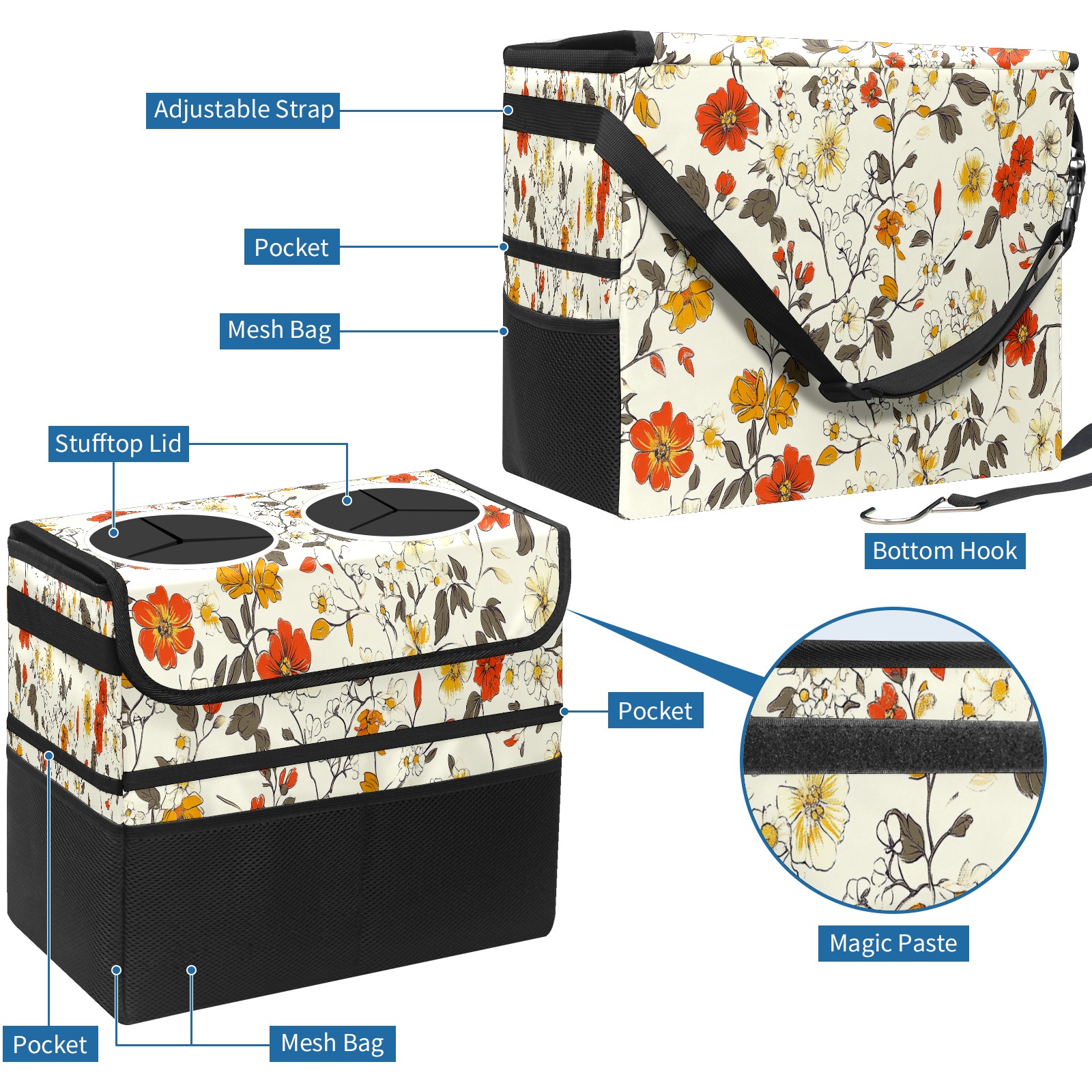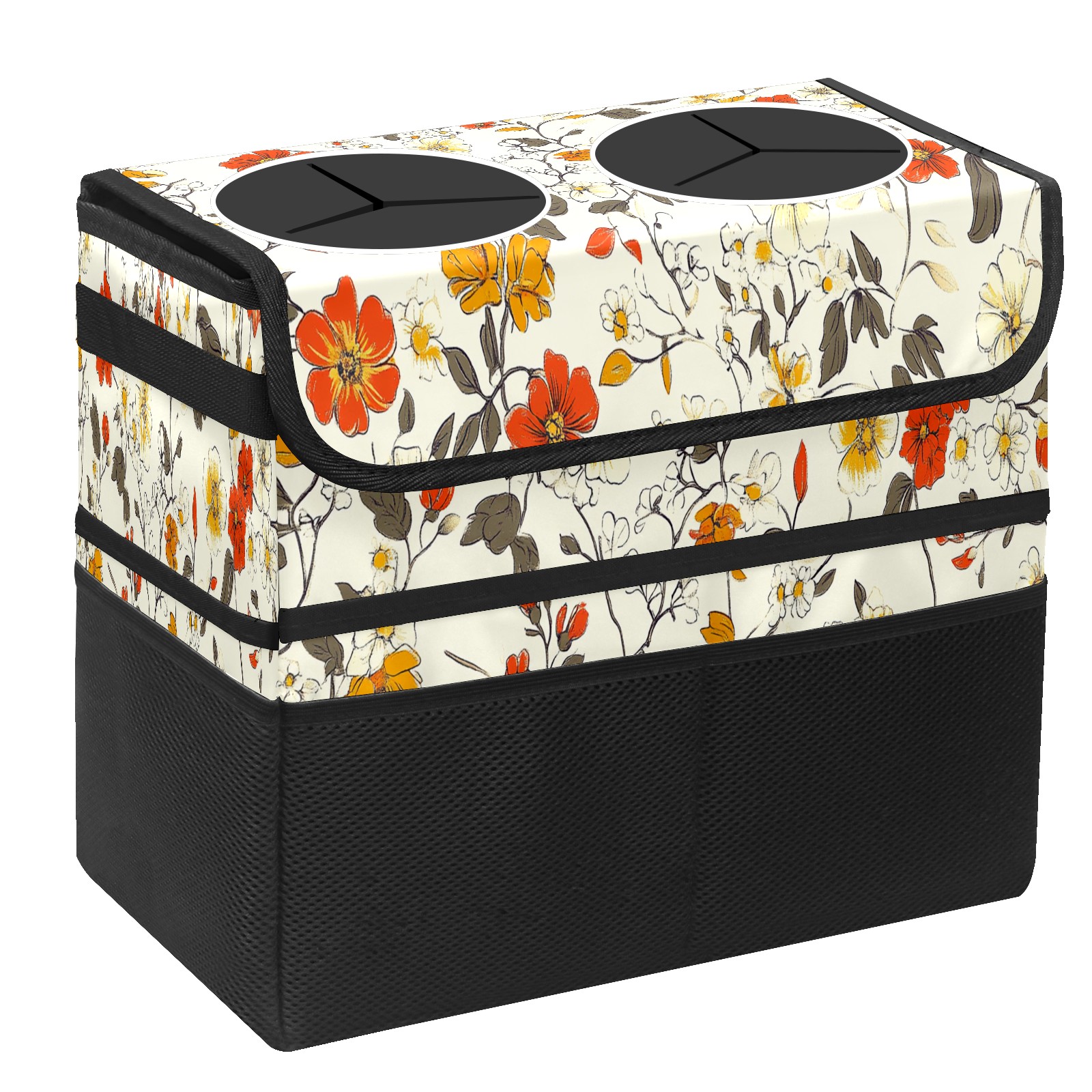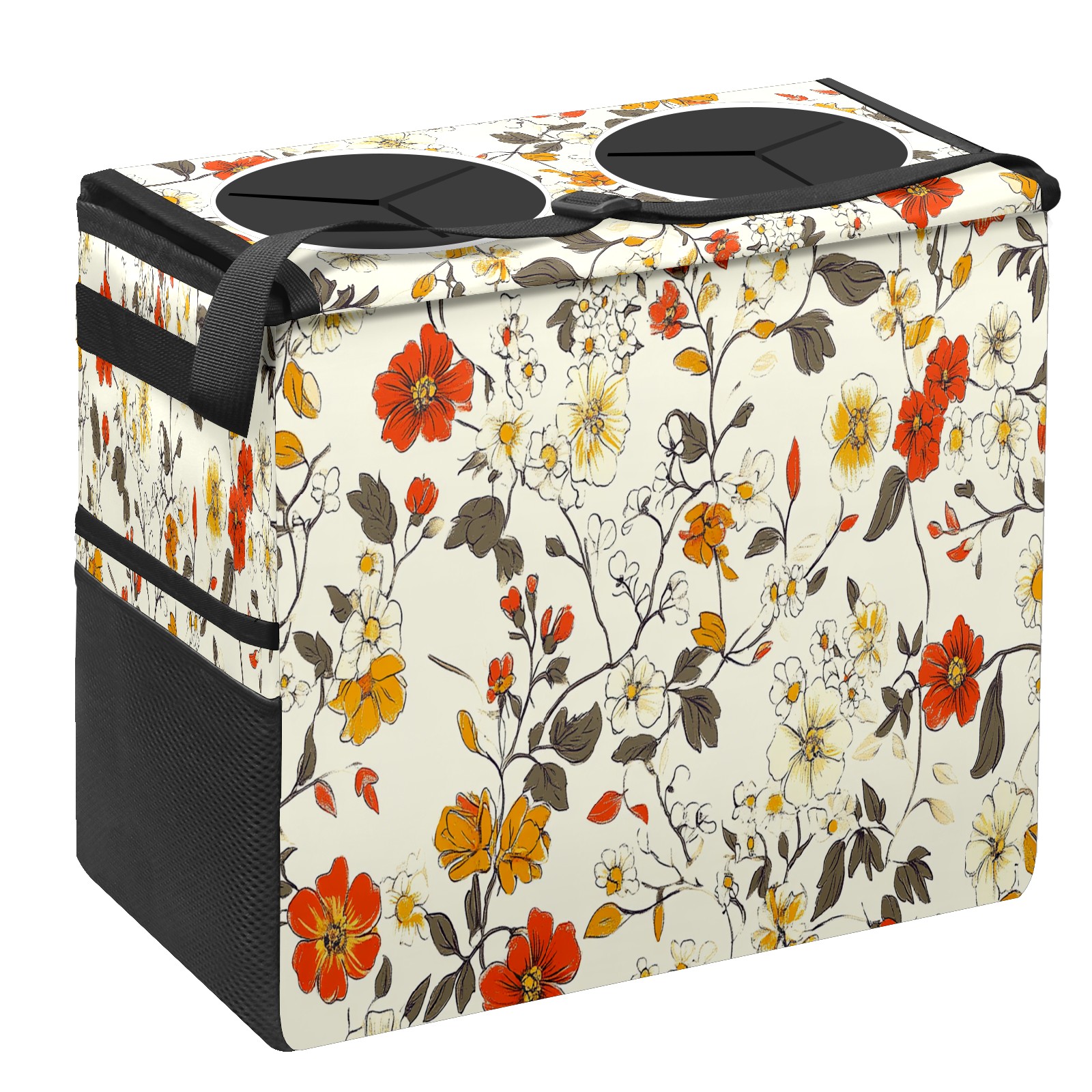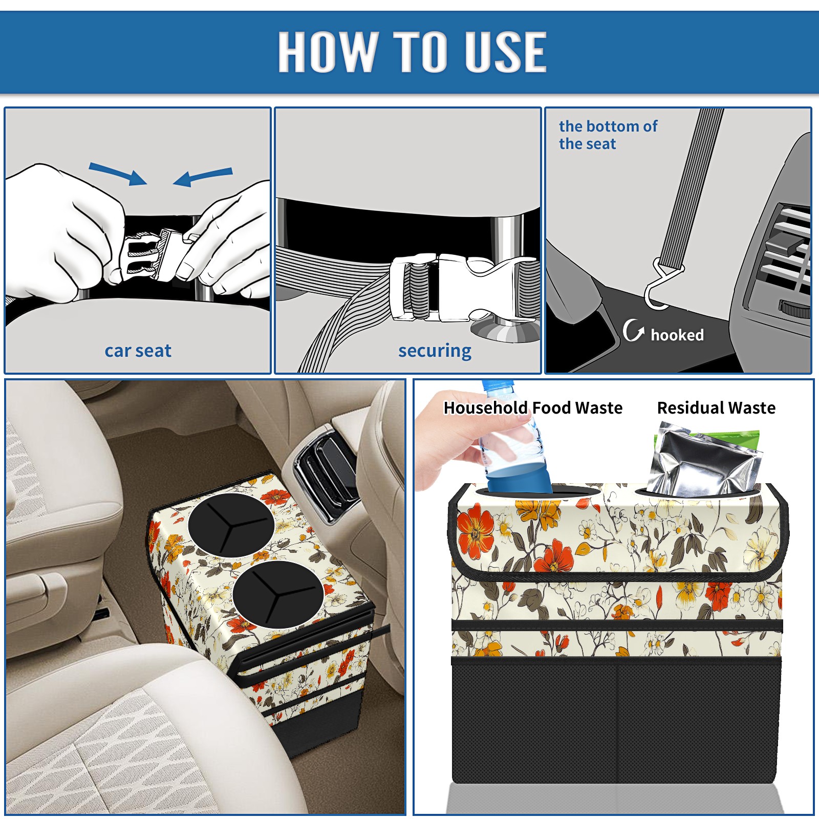 Car Trash Can with Lid, Portable Hanging Automotive Garbage Bin for Vehicles, Leakproof Waste Bag Container for SUV Truck Van Interior Auto Travel Road Trips(Orange Red Floral)