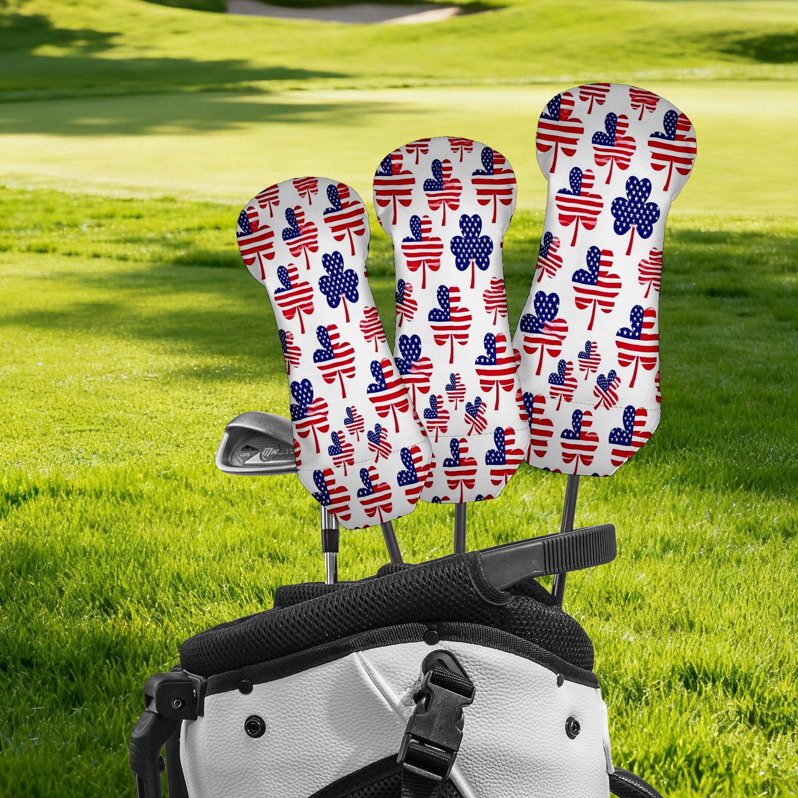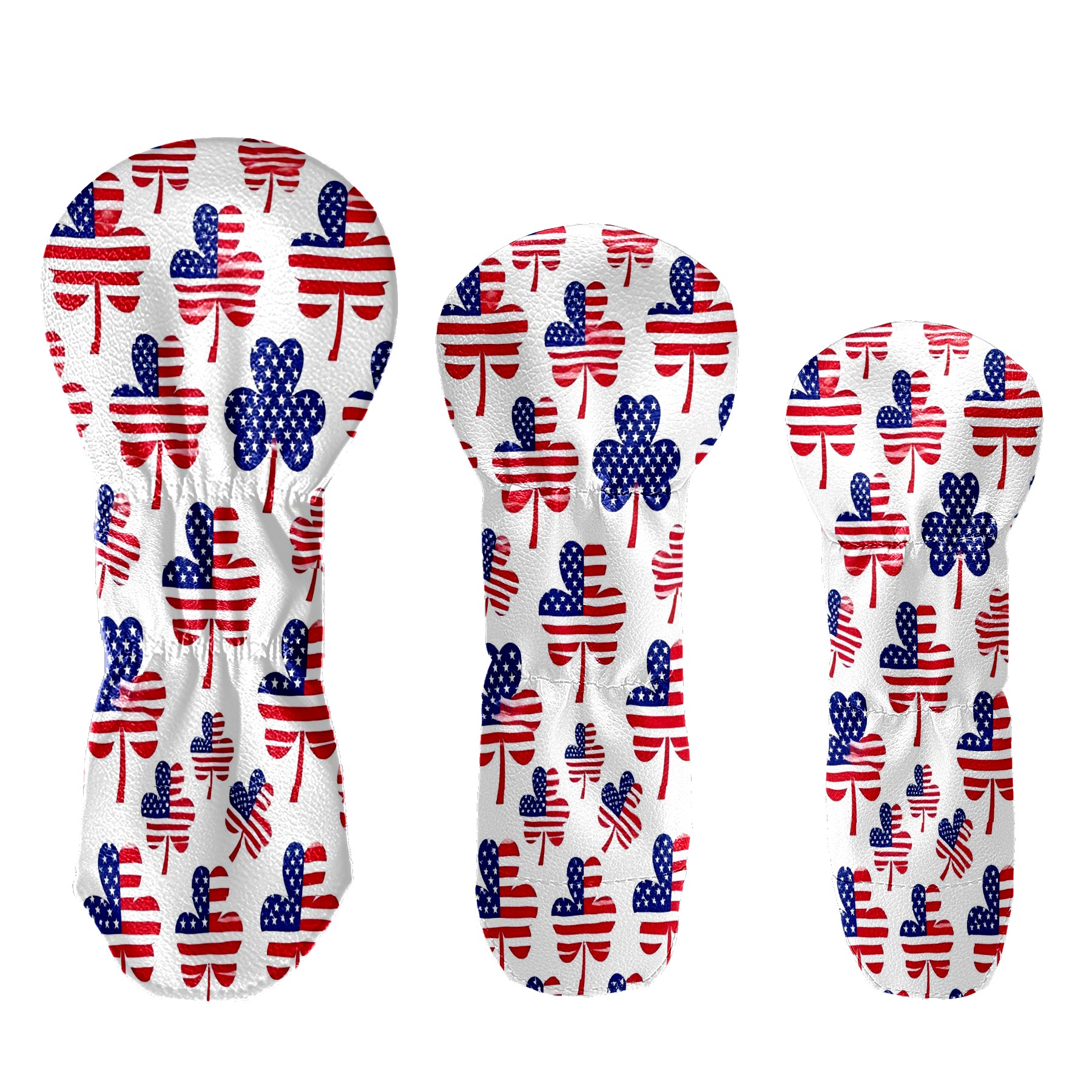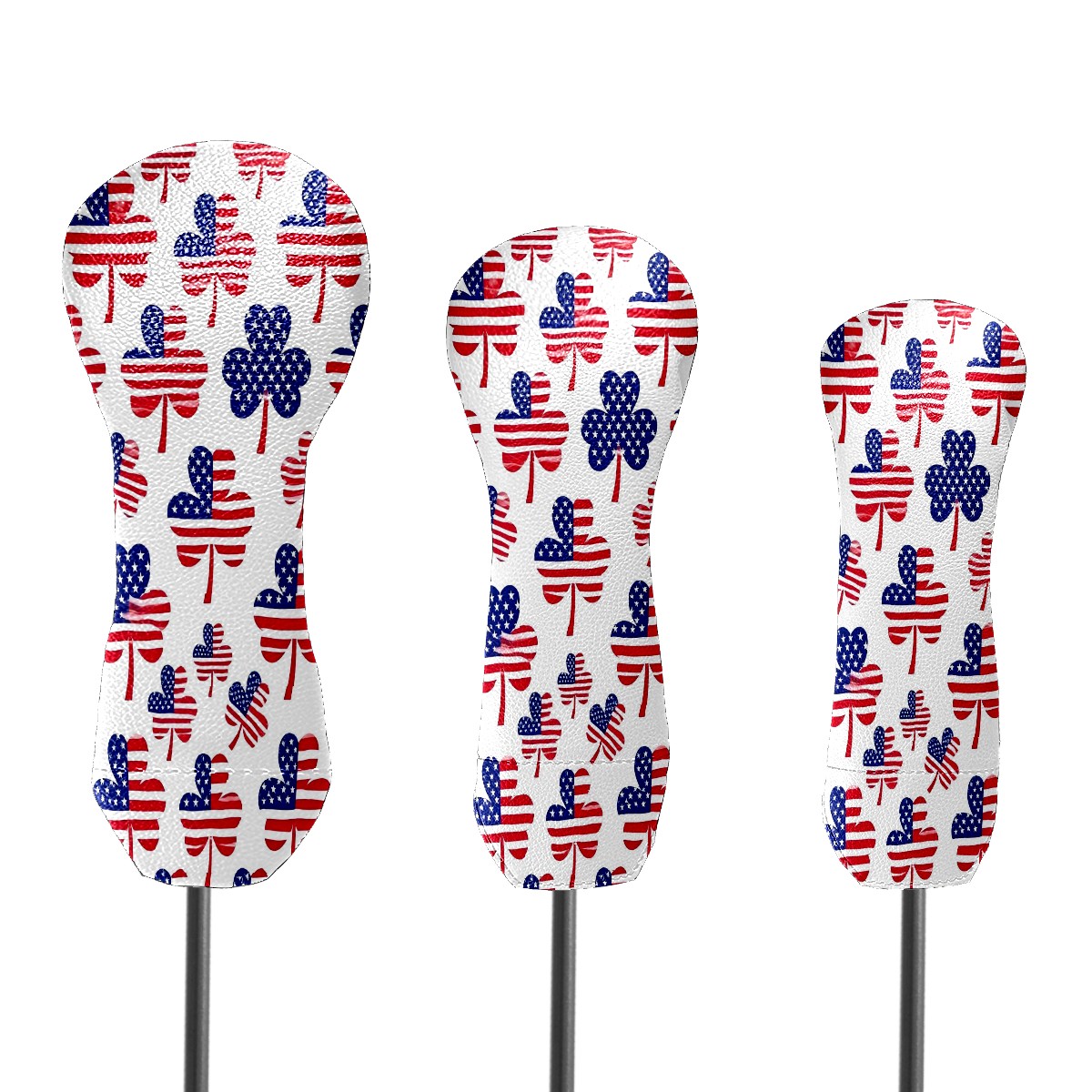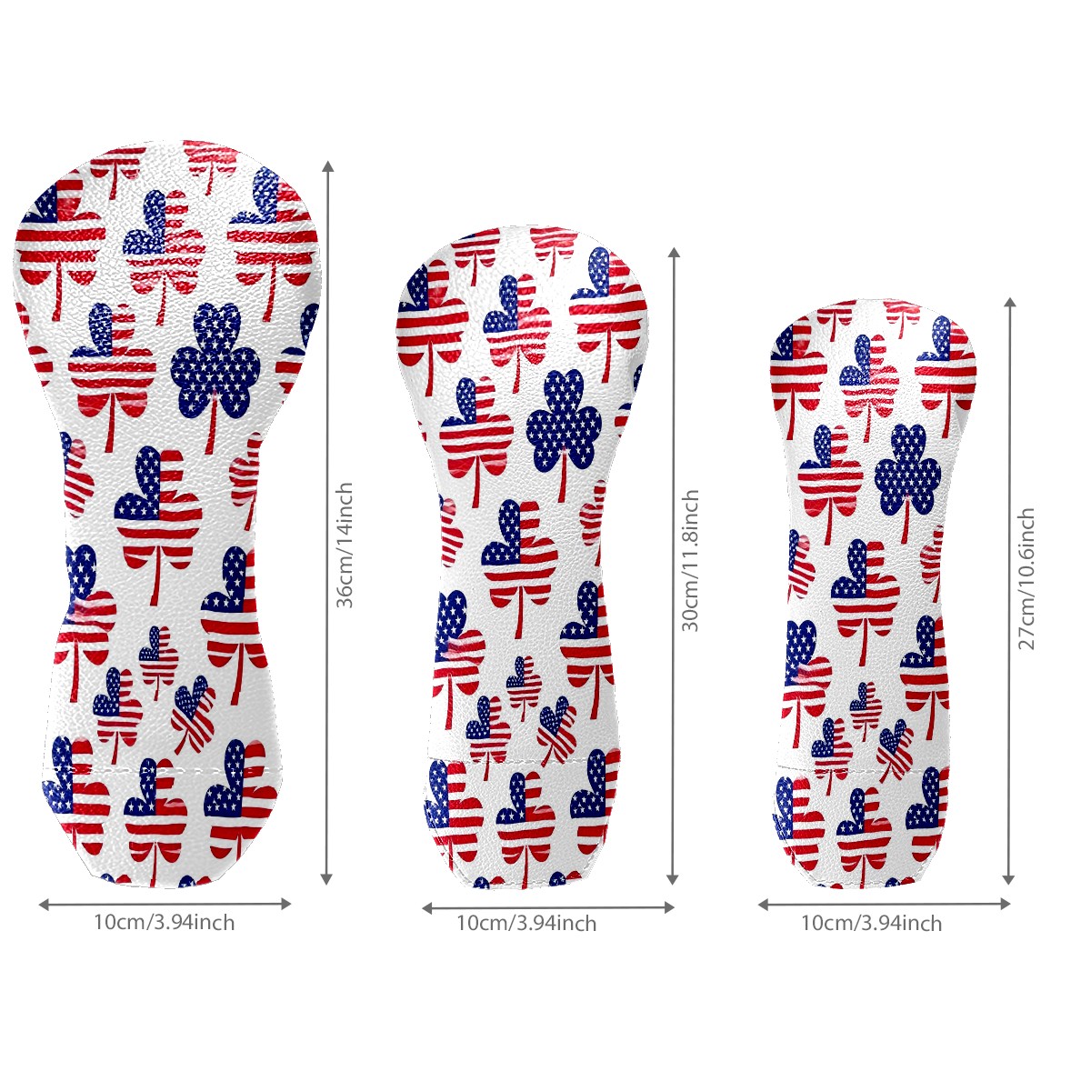 Golf Head Covers 3-Pack Red Clover Waterproof PU Leather & Plush Velvet Lining Fits Driver Fairway Hybrid Clubs, Scratch Protection Durable Golf Gift for Men & Women