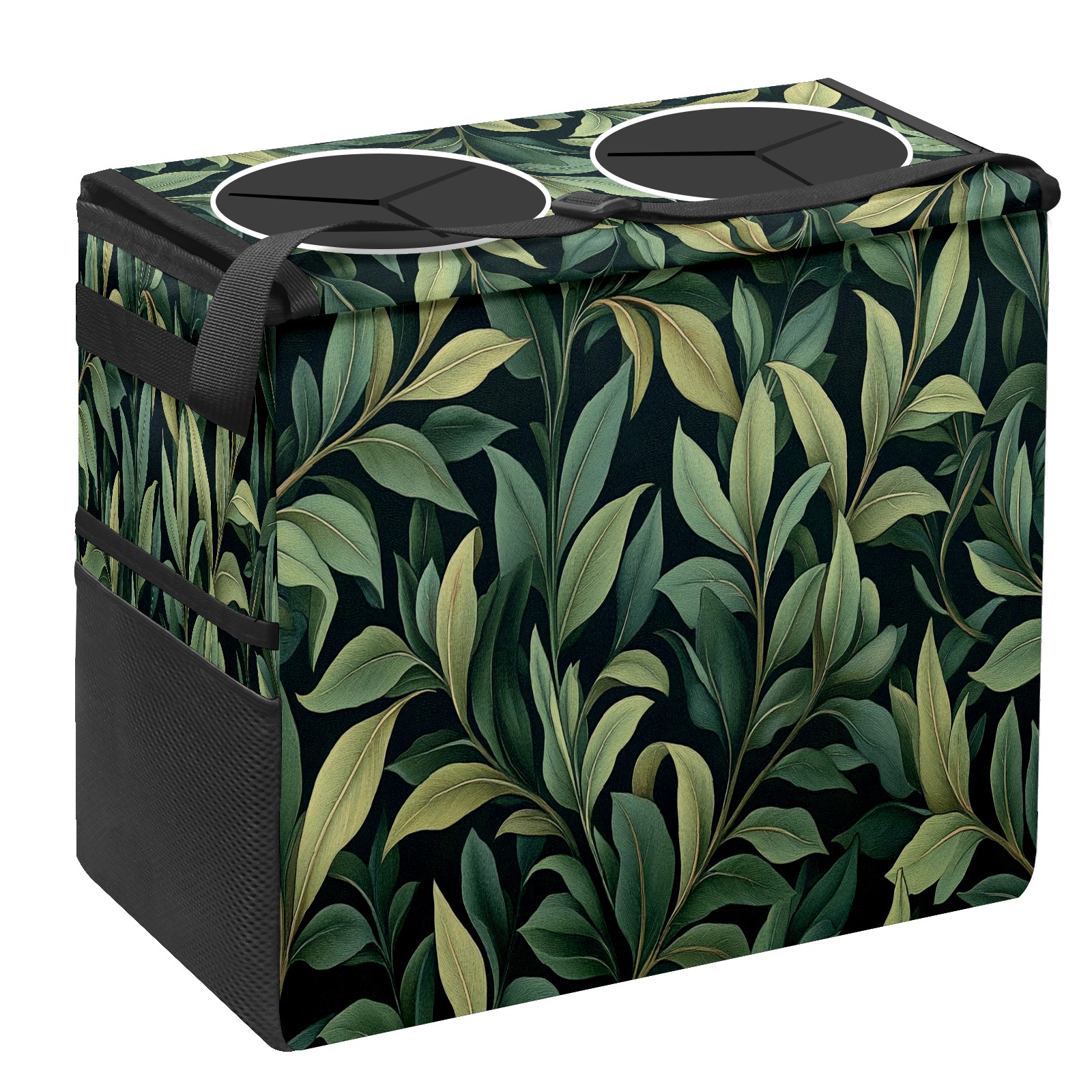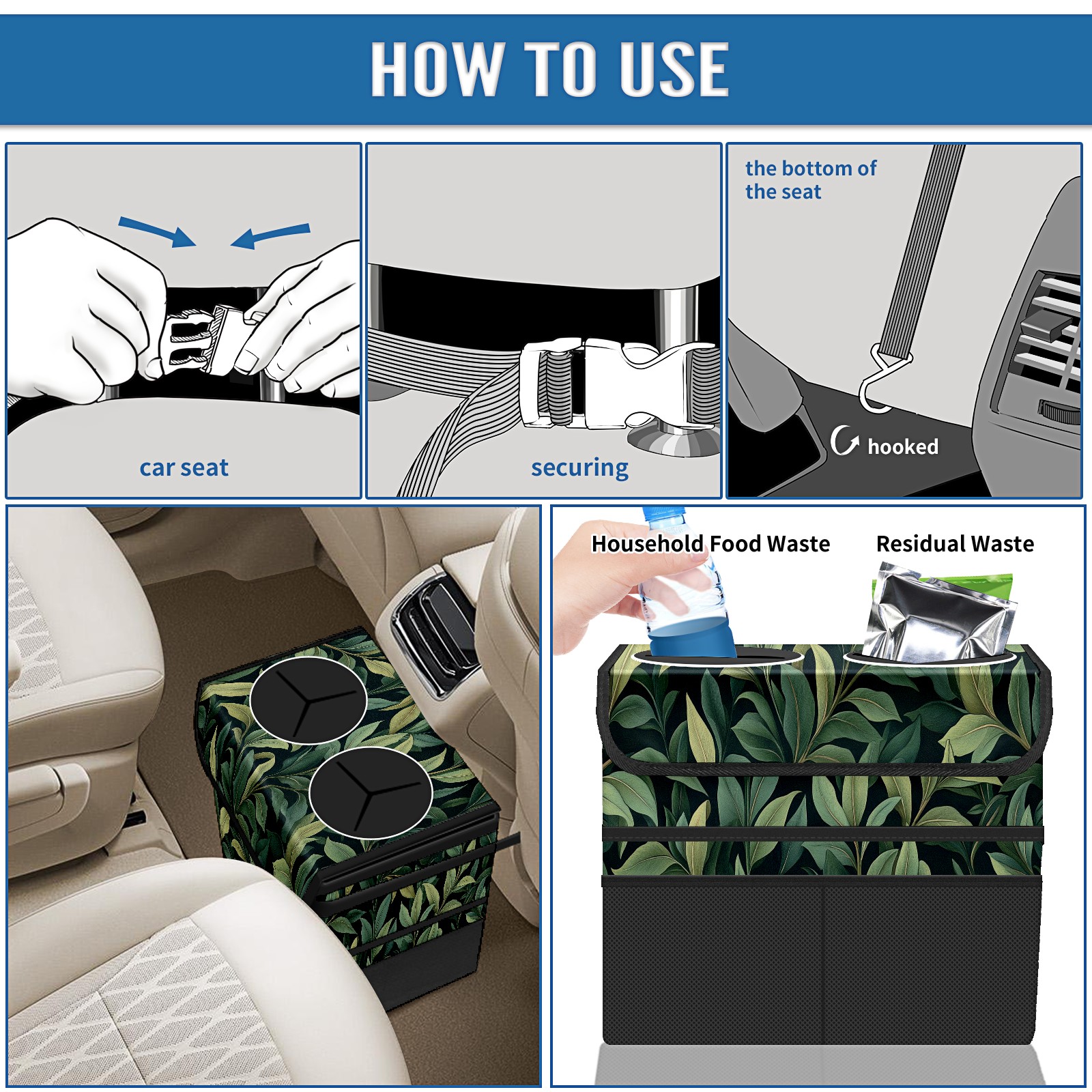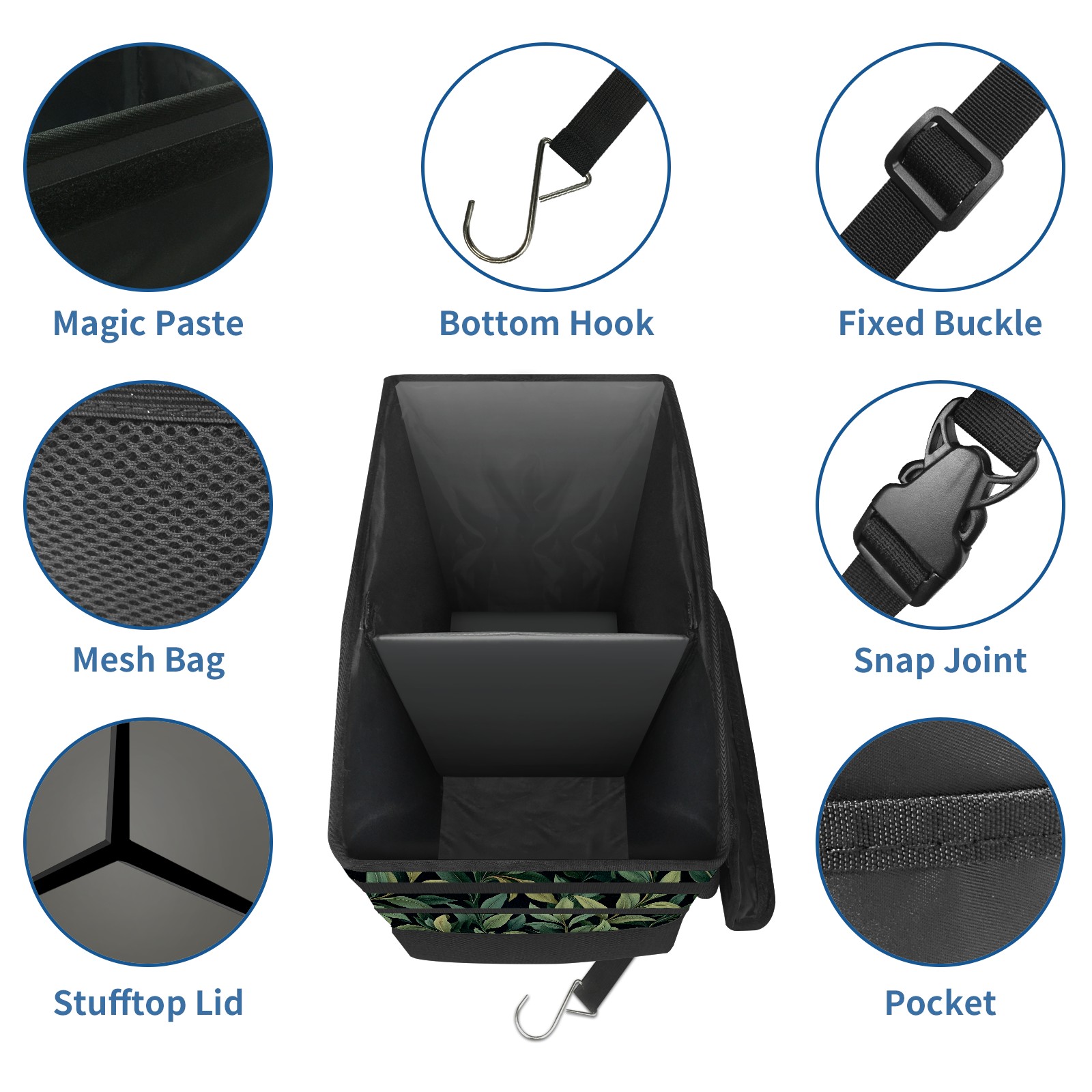 Car Trash Can with Lid, Portable Hanging Automotive Garbage Bin for Vehicles, Leakproof Waste Bag Container for SUV Truck Van Interior Auto Travel Road Trips(Green Leaf)