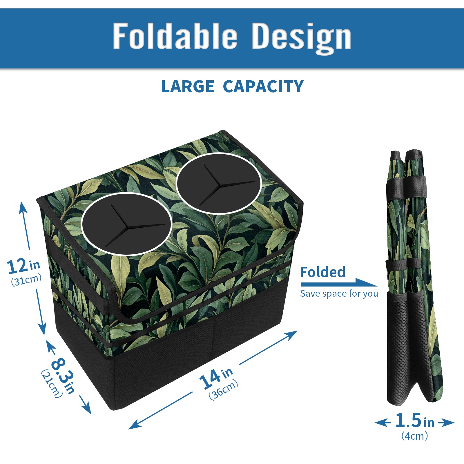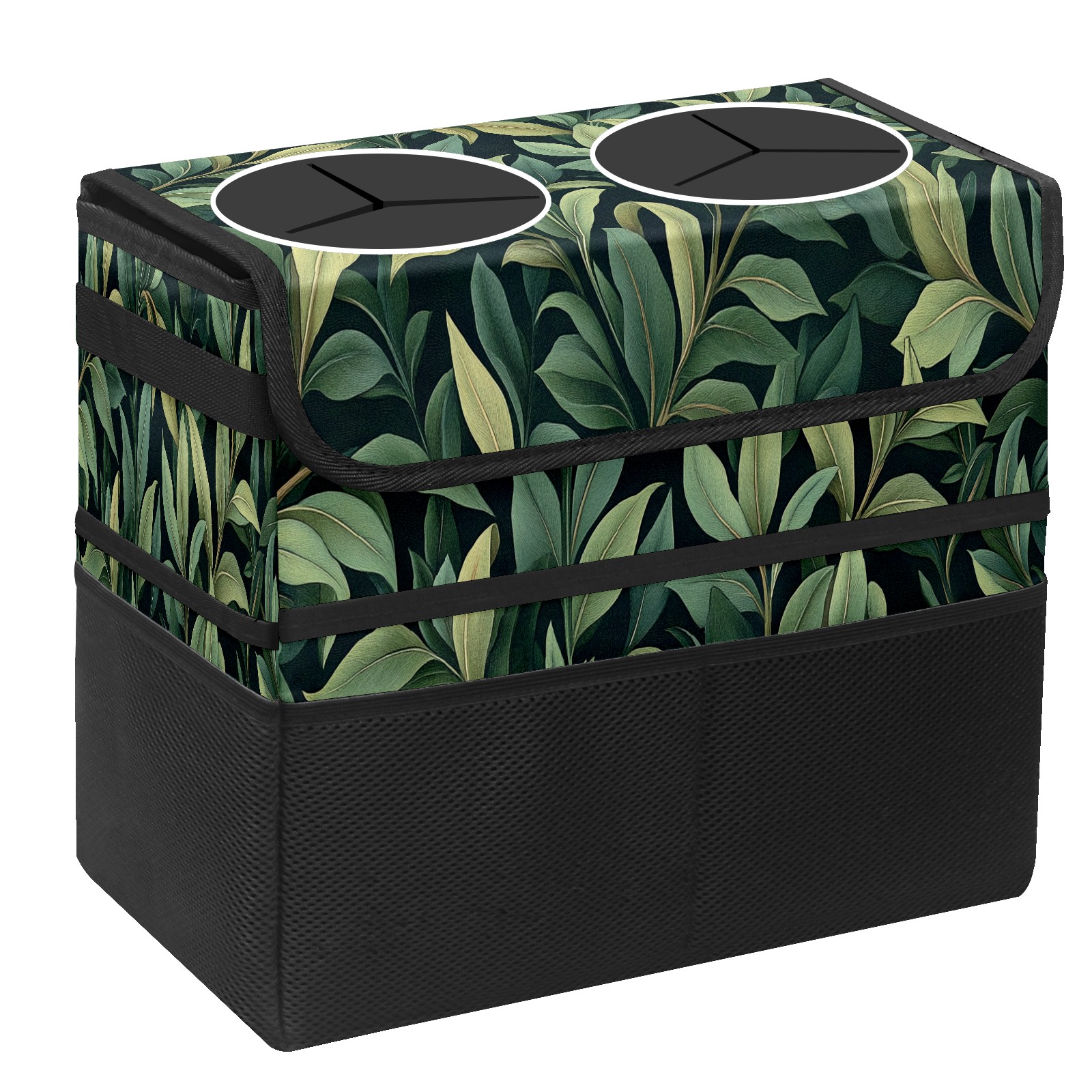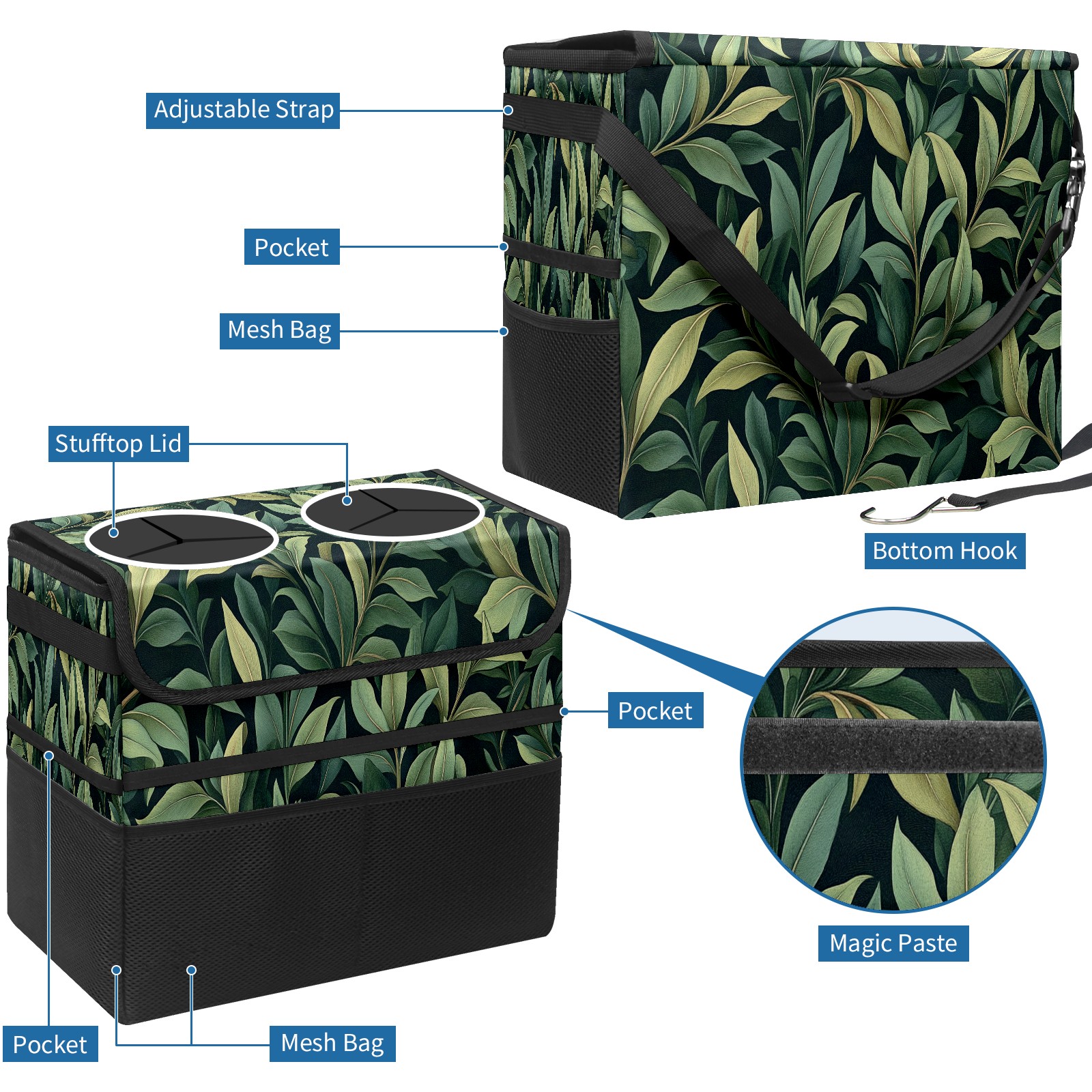 Car Trash Can with Lid, Portable Hanging Automotive Garbage Bin for Vehicles, Leakproof Waste Bag Container for SUV Truck Van Interior Auto Travel Road Trips(Green Leaf)