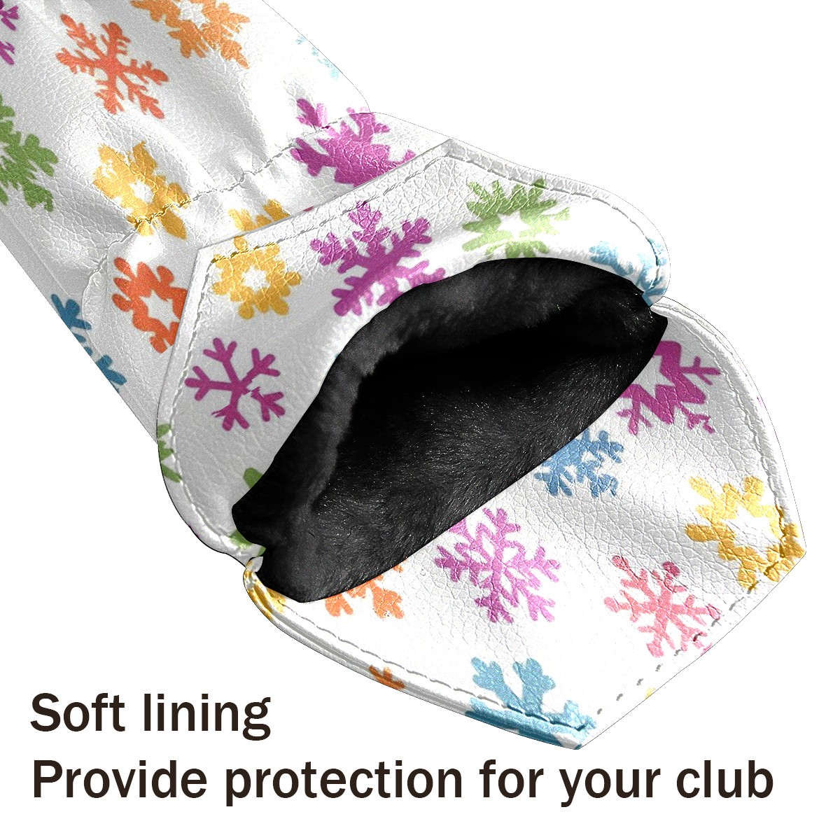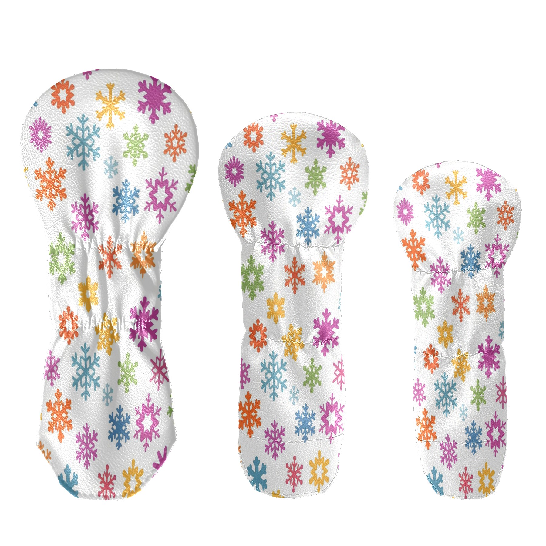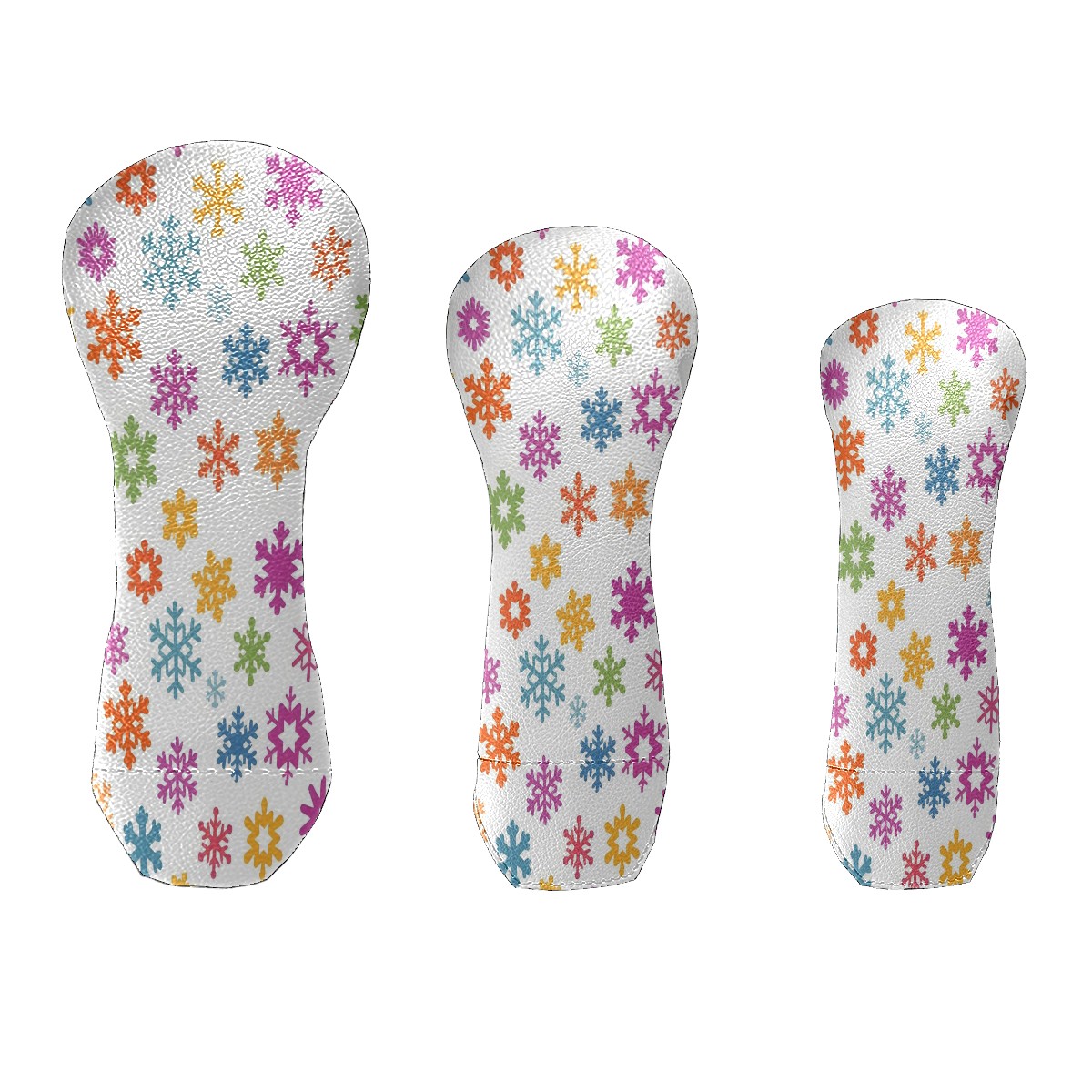 Golf Head Covers 3-Pack Colorful Snowflake Waterproof PU Leather & Plush Velvet Lining Fits Driver Fairway Hybrid Clubs, Scratch Protection Durable Golf Gift for Men & Women