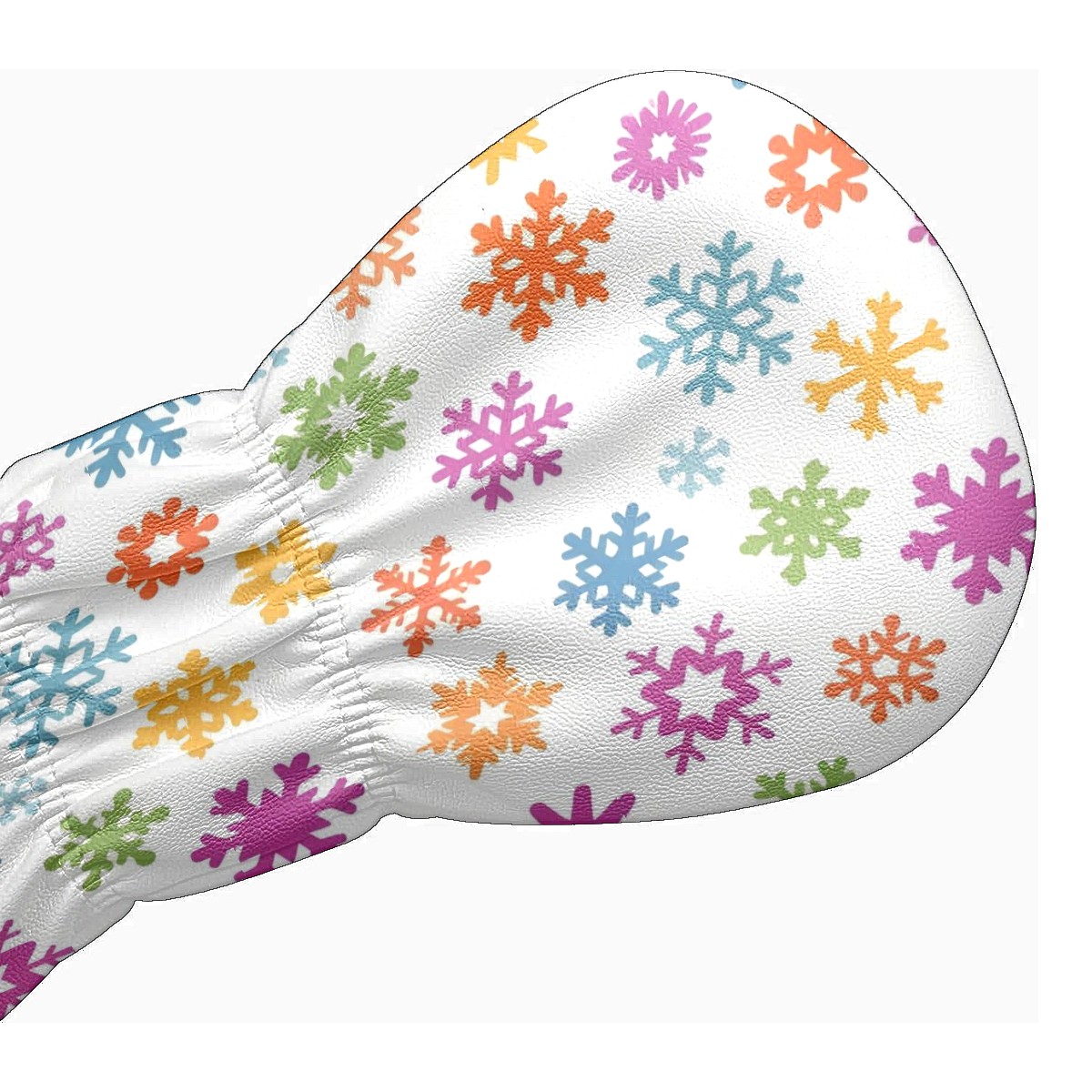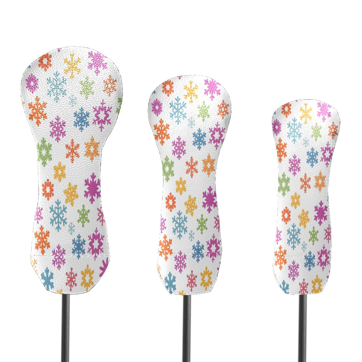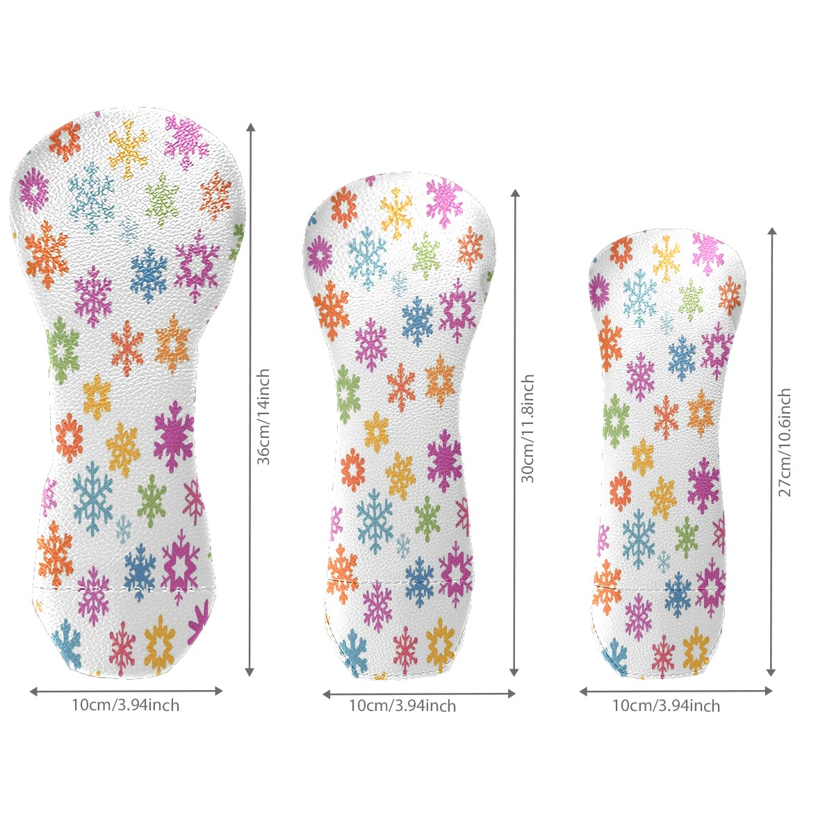 Golf Head Covers 3-Pack Colorful Snowflake Waterproof PU Leather & Plush Velvet Lining Fits Driver Fairway Hybrid Clubs, Scratch Protection Durable Golf Gift for Men & Women