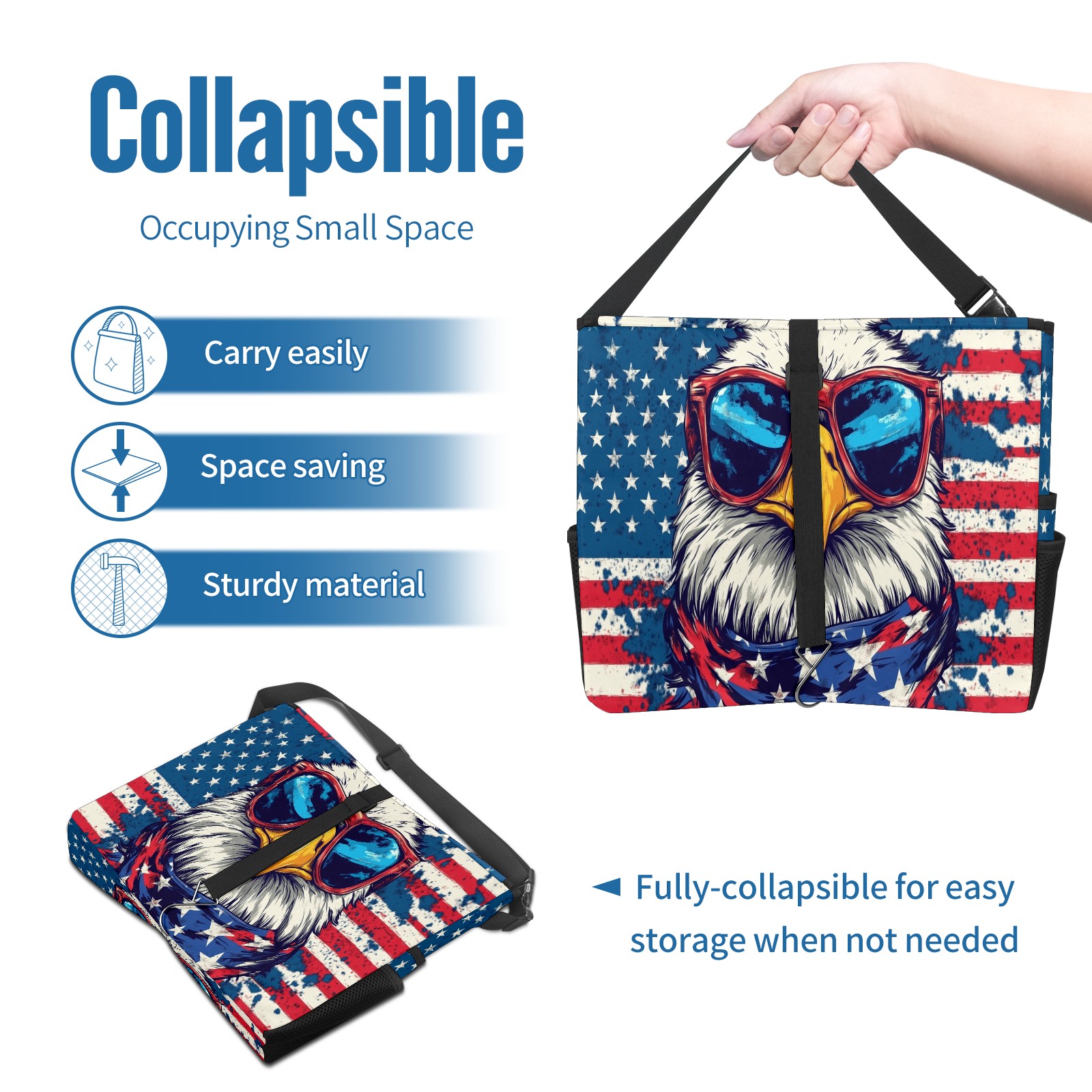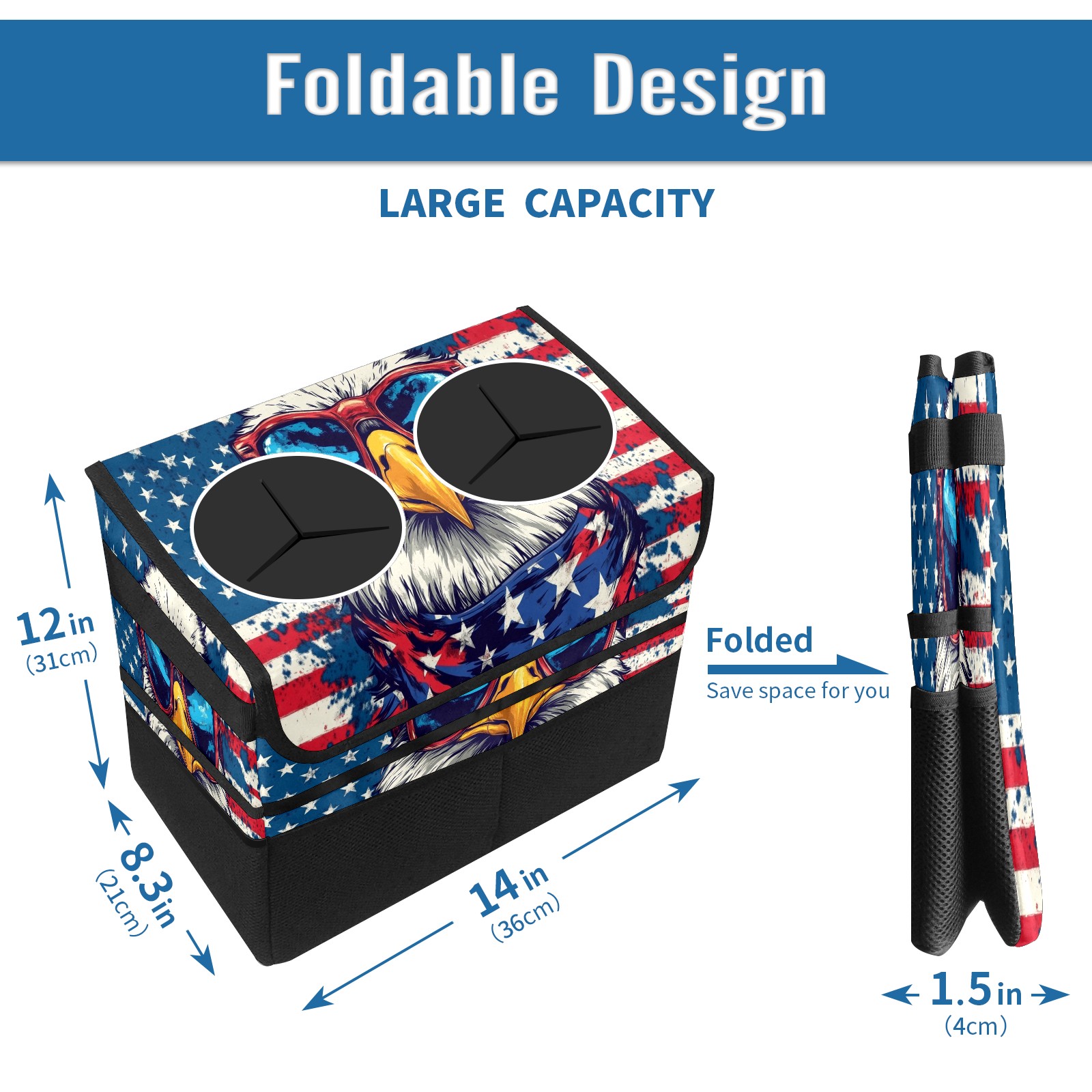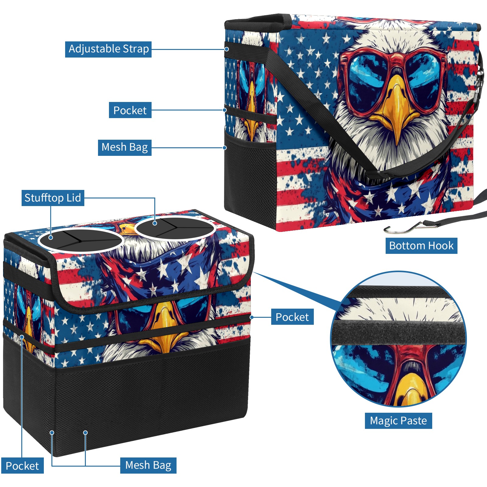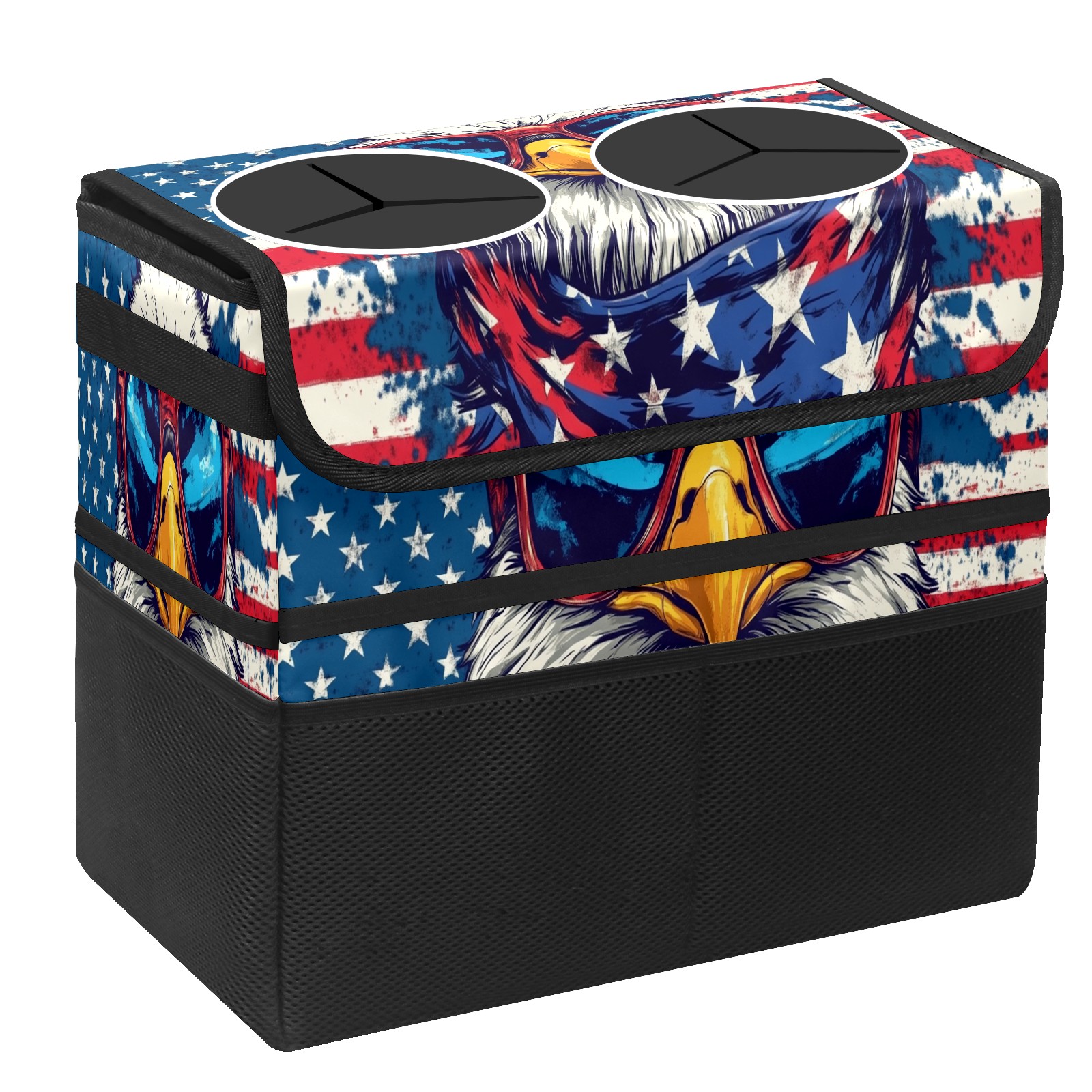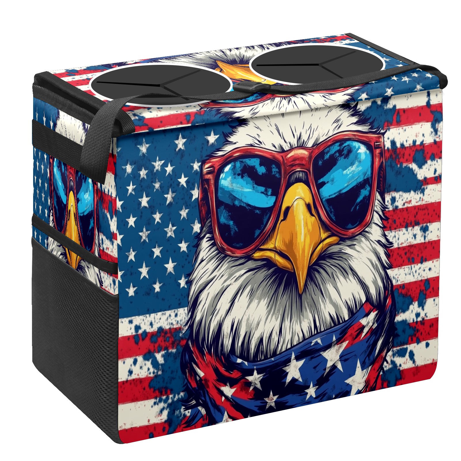 Car Trash Can with Lid, Portable Hanging Automotive Garbage Bin for Vehicles, Leakproof Waste Bag Container for SUV Truck Van Interior Auto Travel Road Trips(Eagle And American Flag)