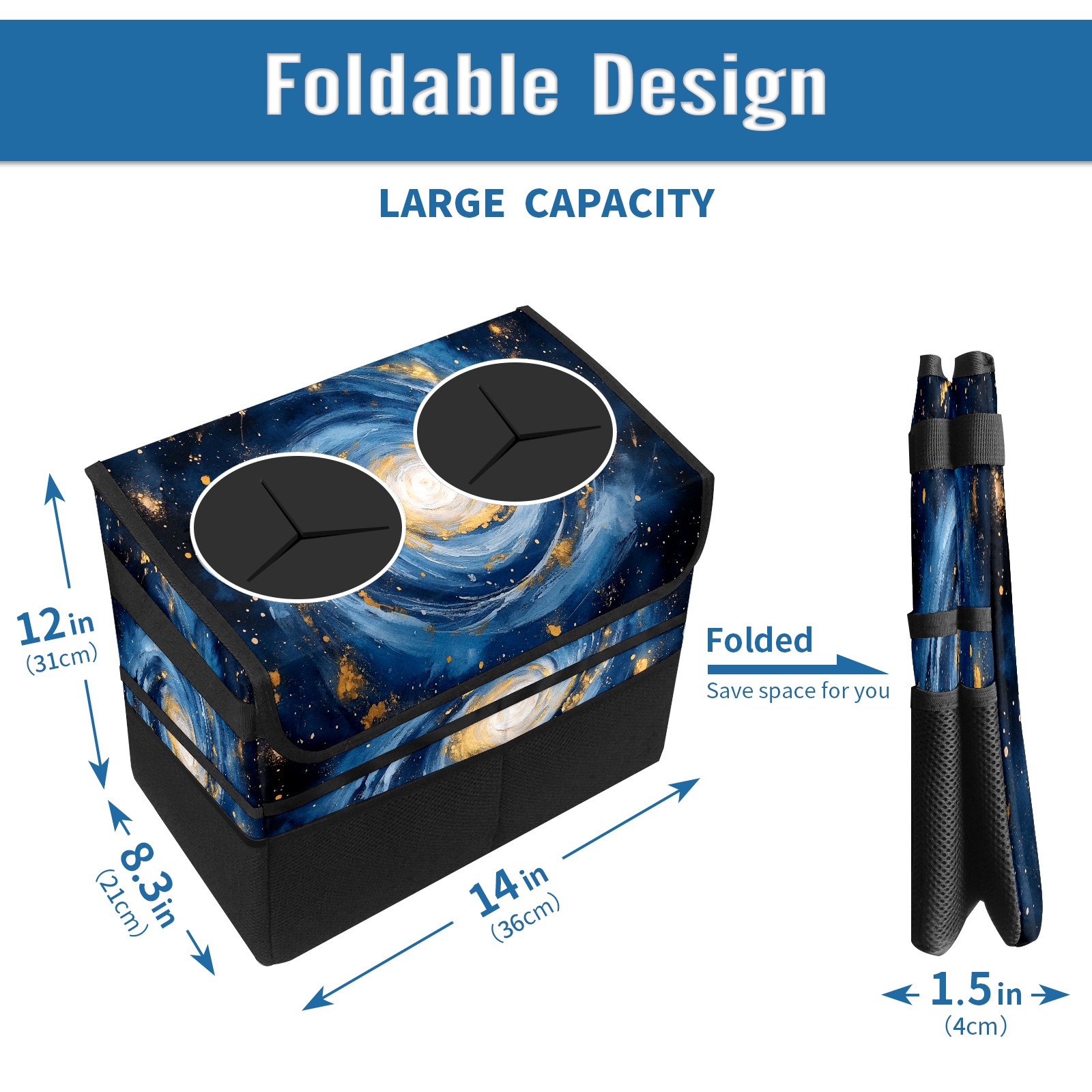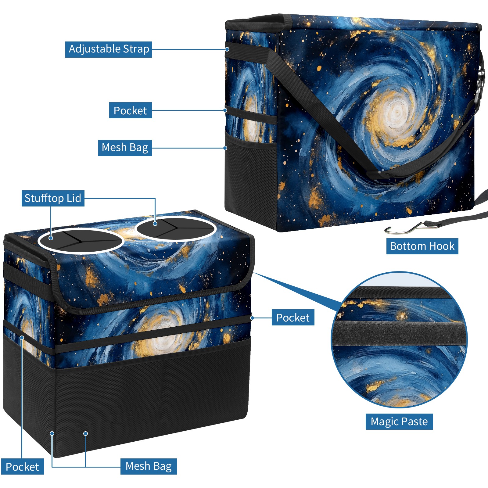 Car Trash Can with Lid, Portable Hanging Automotive Garbage Bin for Vehicles, Leakproof Waste Bag Container for SUV Truck Van Interior Auto Travel Road Trips(Space Galaxy)