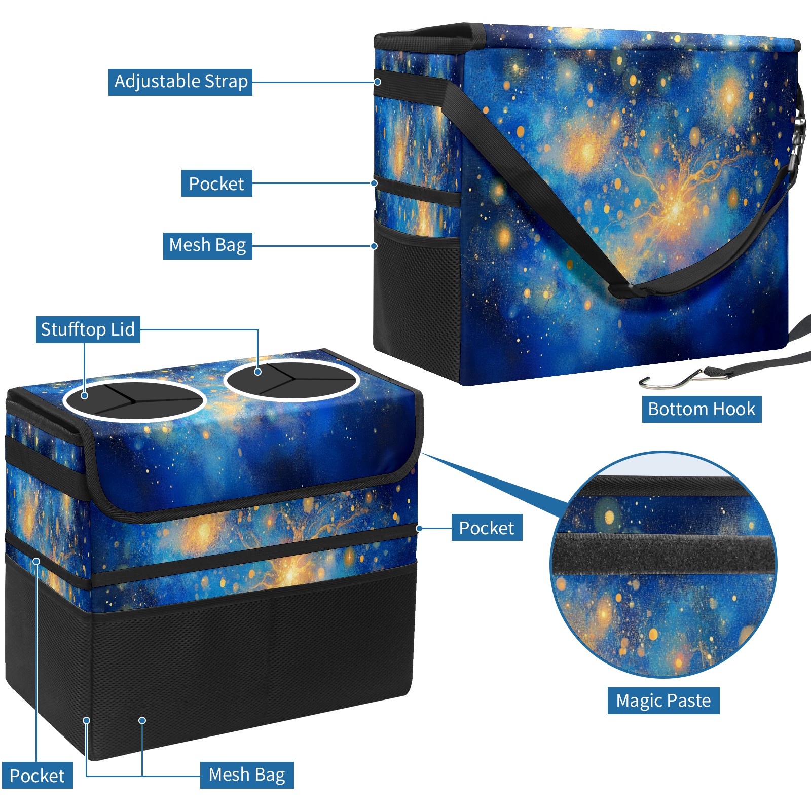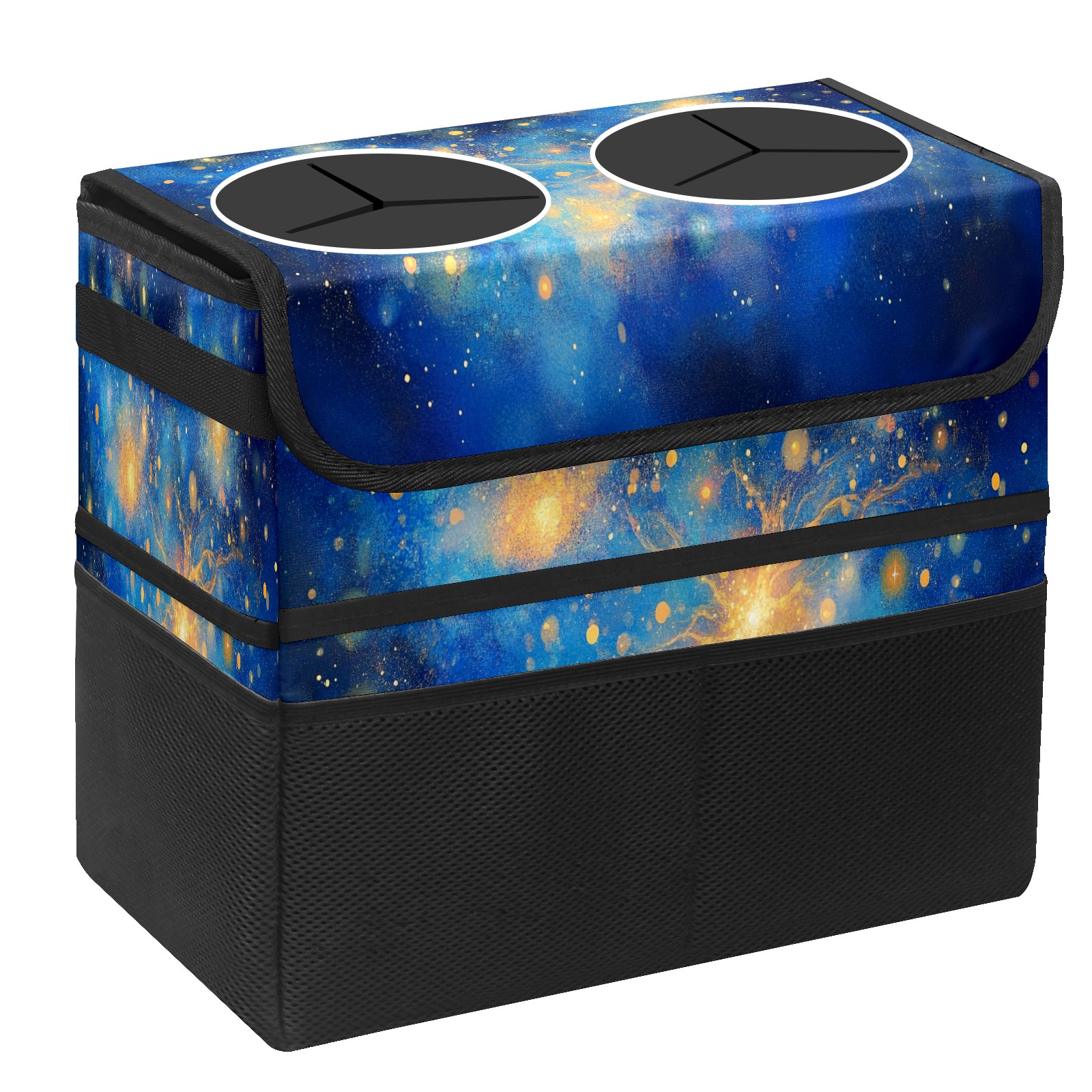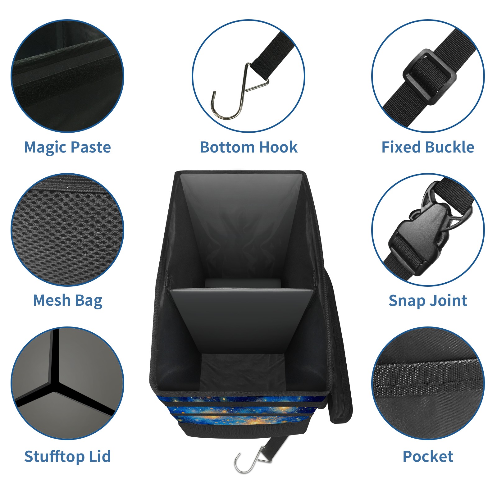 Car Trash Can with Lid, Portable Hanging Automotive Garbage Bin for Vehicles, Leakproof Waste Bag Container for SUV Truck Van Interior Auto Travel Road Trips(Stars Twinkling Lights)