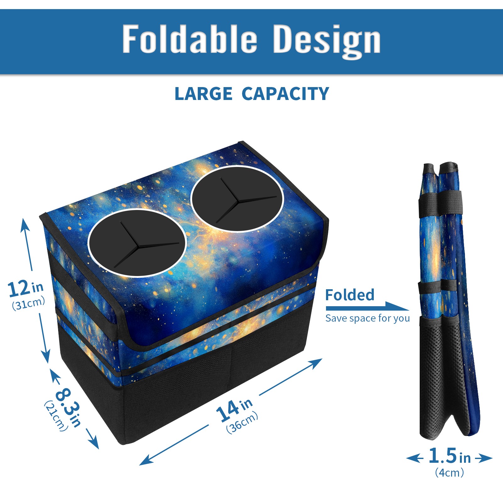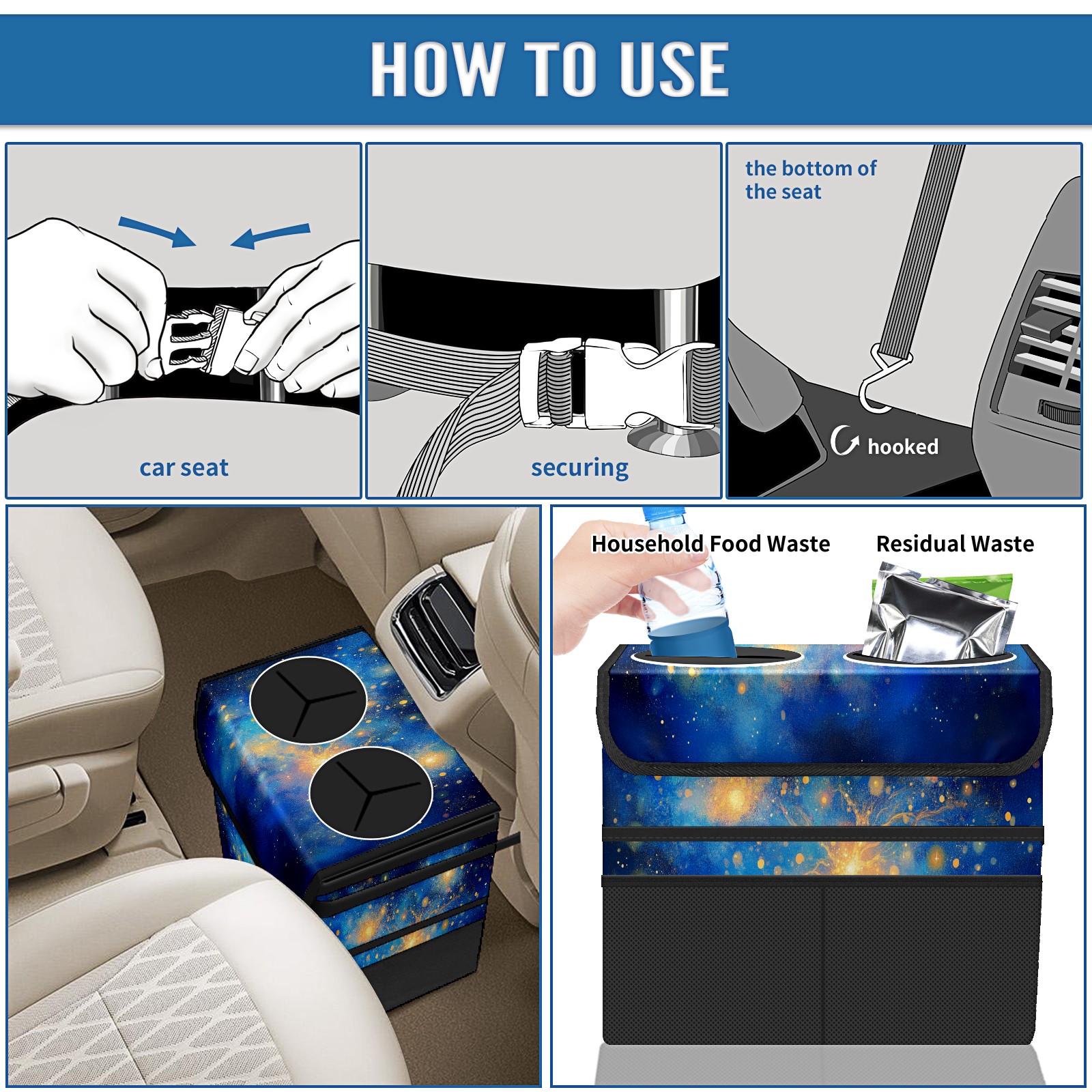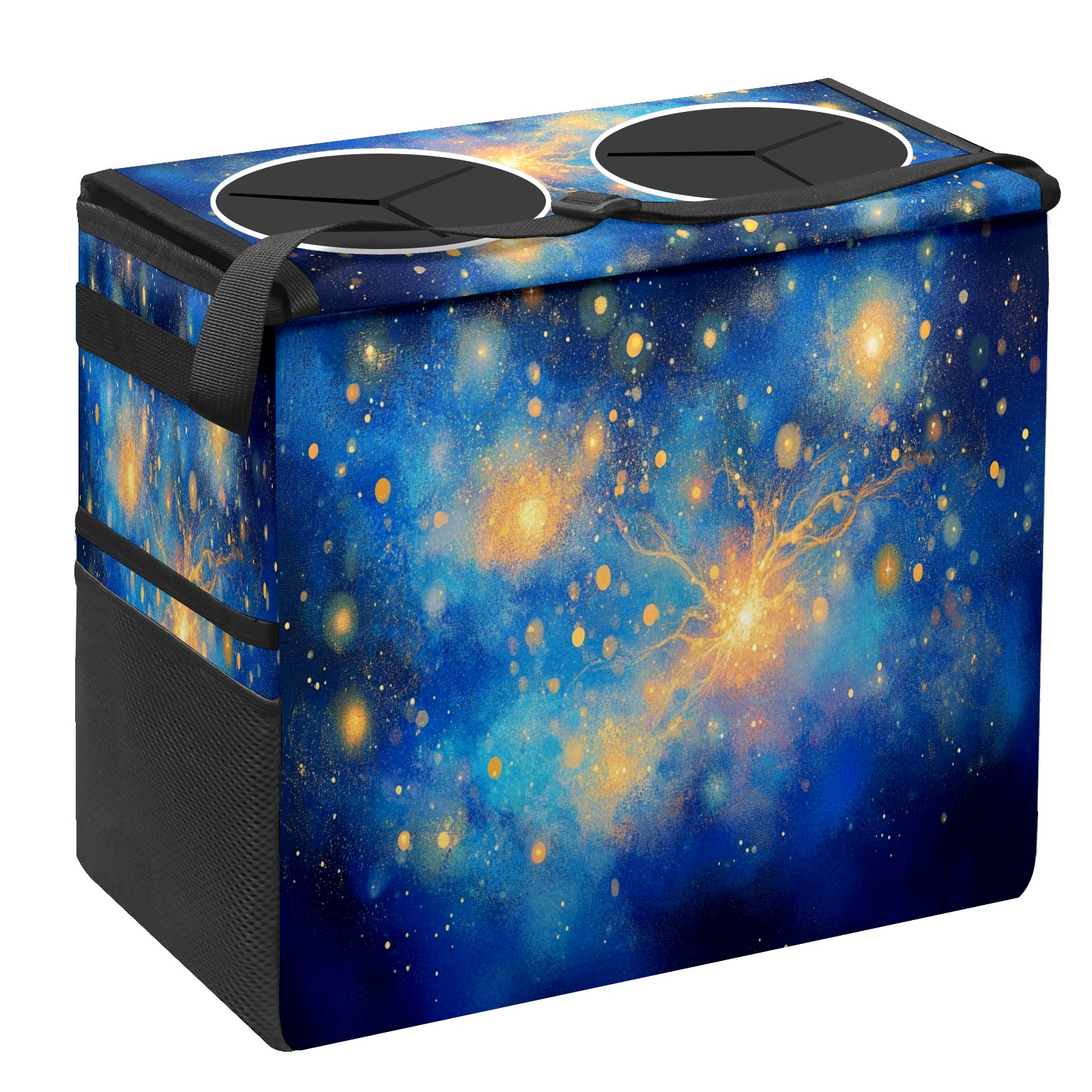 Car Trash Can with Lid, Portable Hanging Automotive Garbage Bin for Vehicles, Leakproof Waste Bag Container for SUV Truck Van Interior Auto Travel Road Trips(Stars Twinkling Lights)