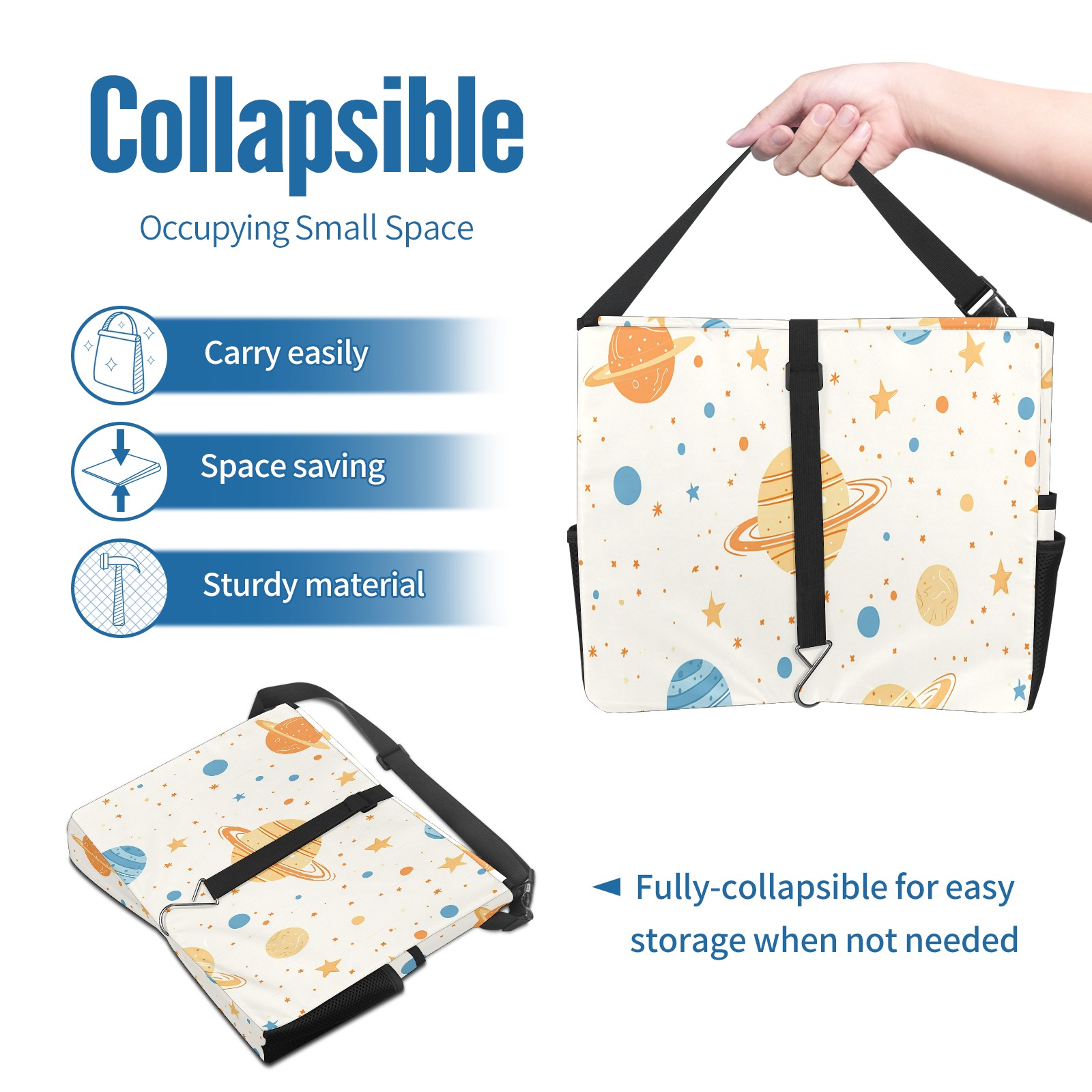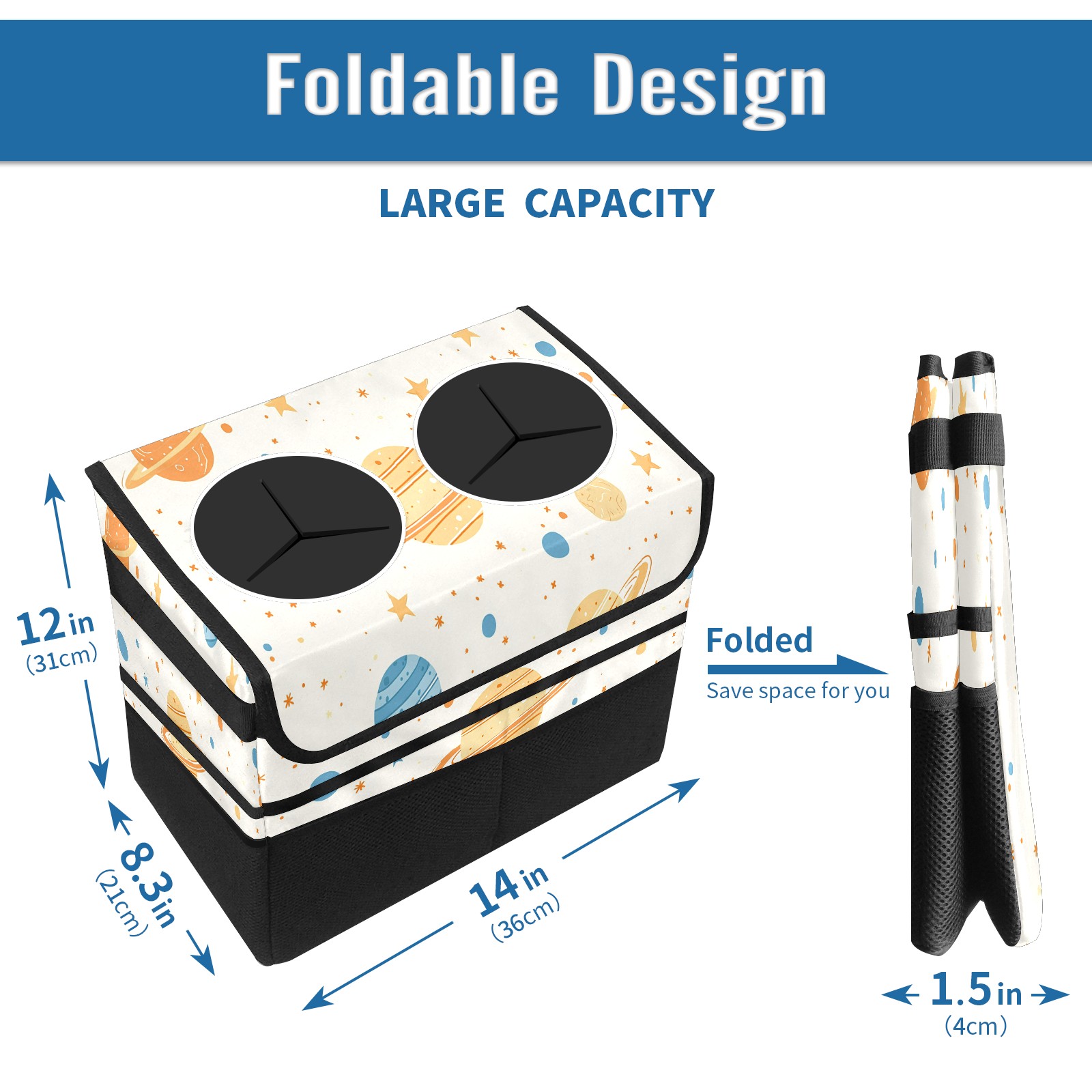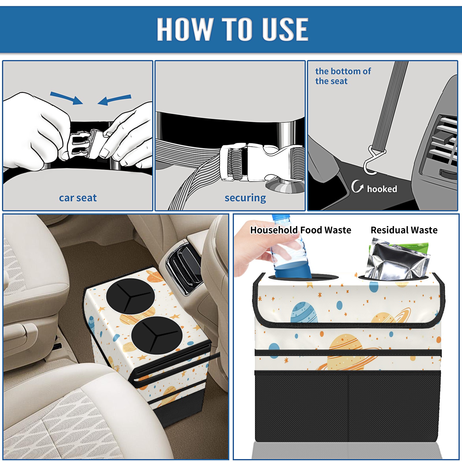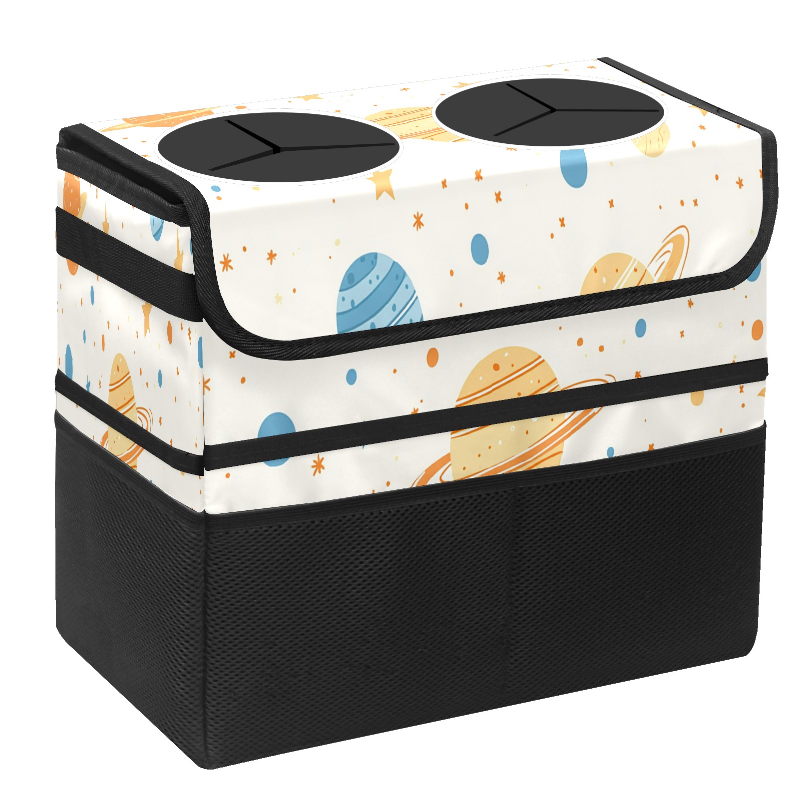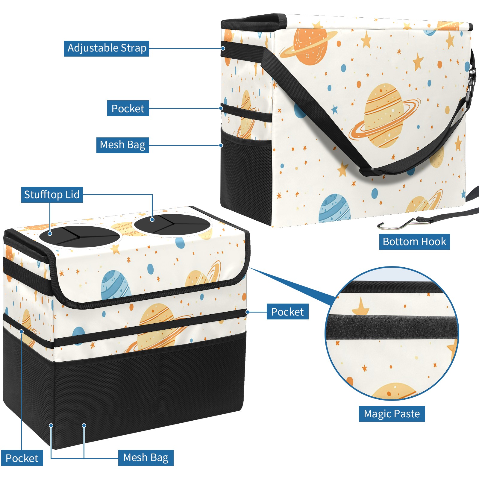Car Trash Can with Lid, Portable Hanging Automotive Garbage Bin for Vehicles, Leakproof Waste Bag Container for SUV Truck Van Interior Auto Travel Road Trips(Planets Stars)