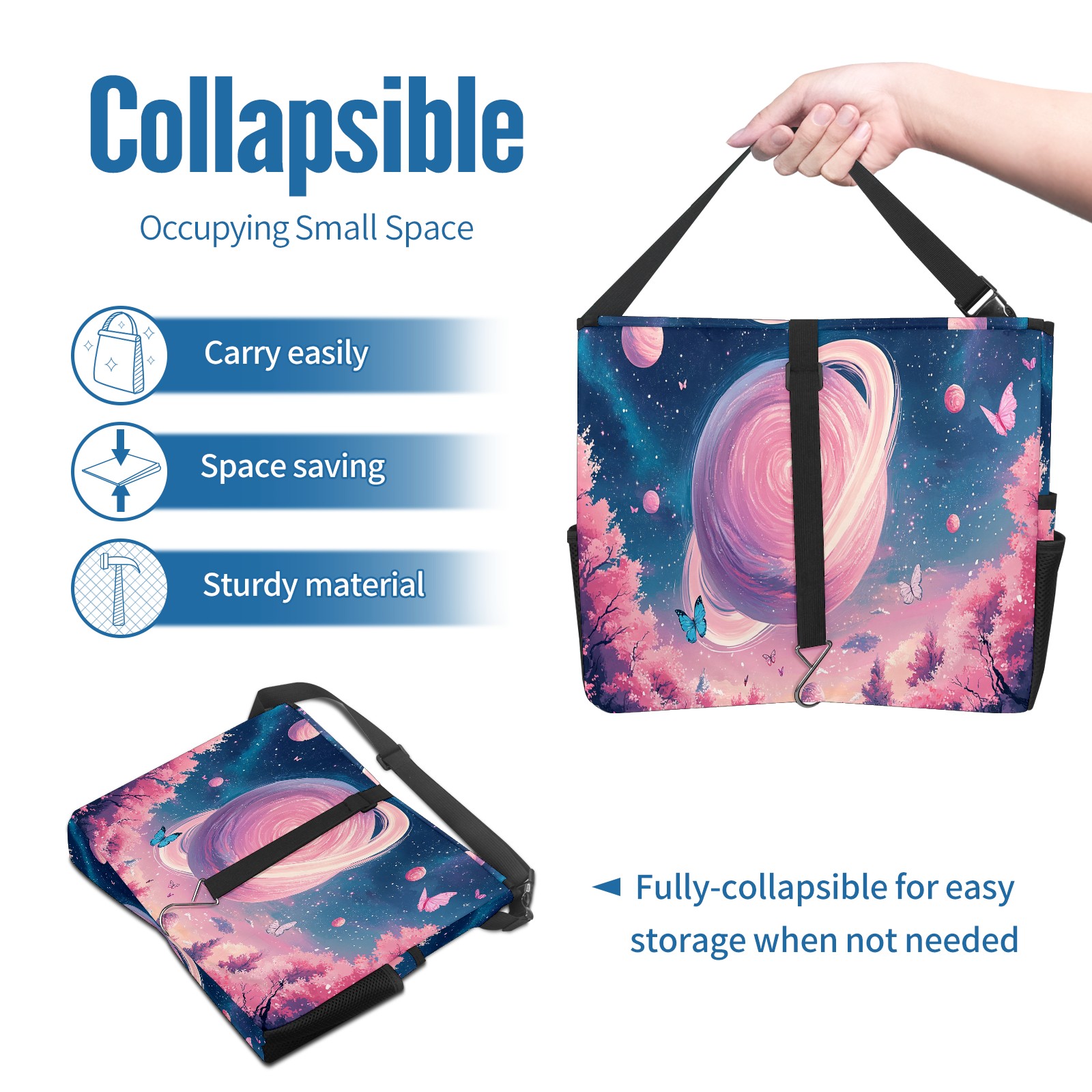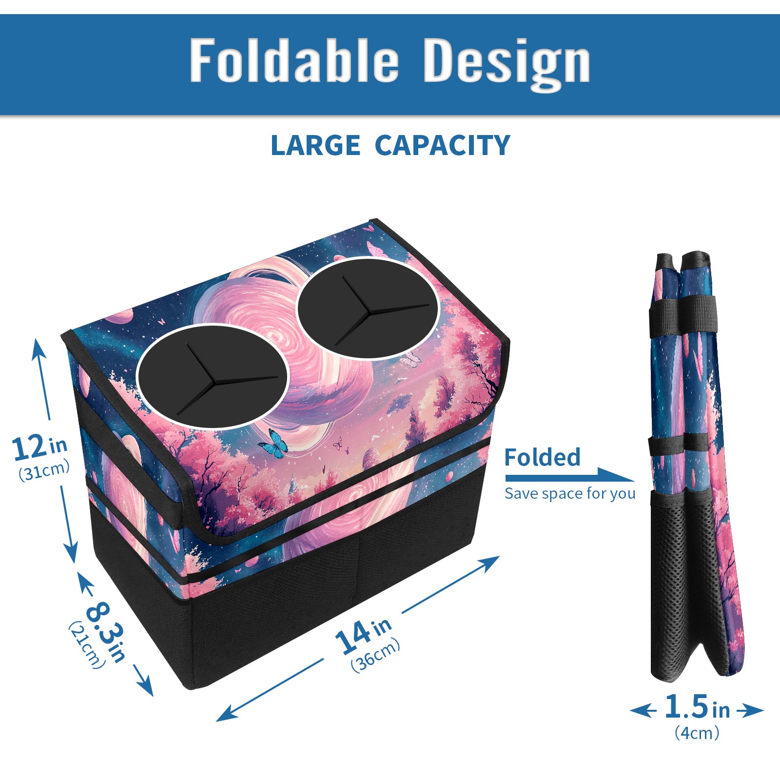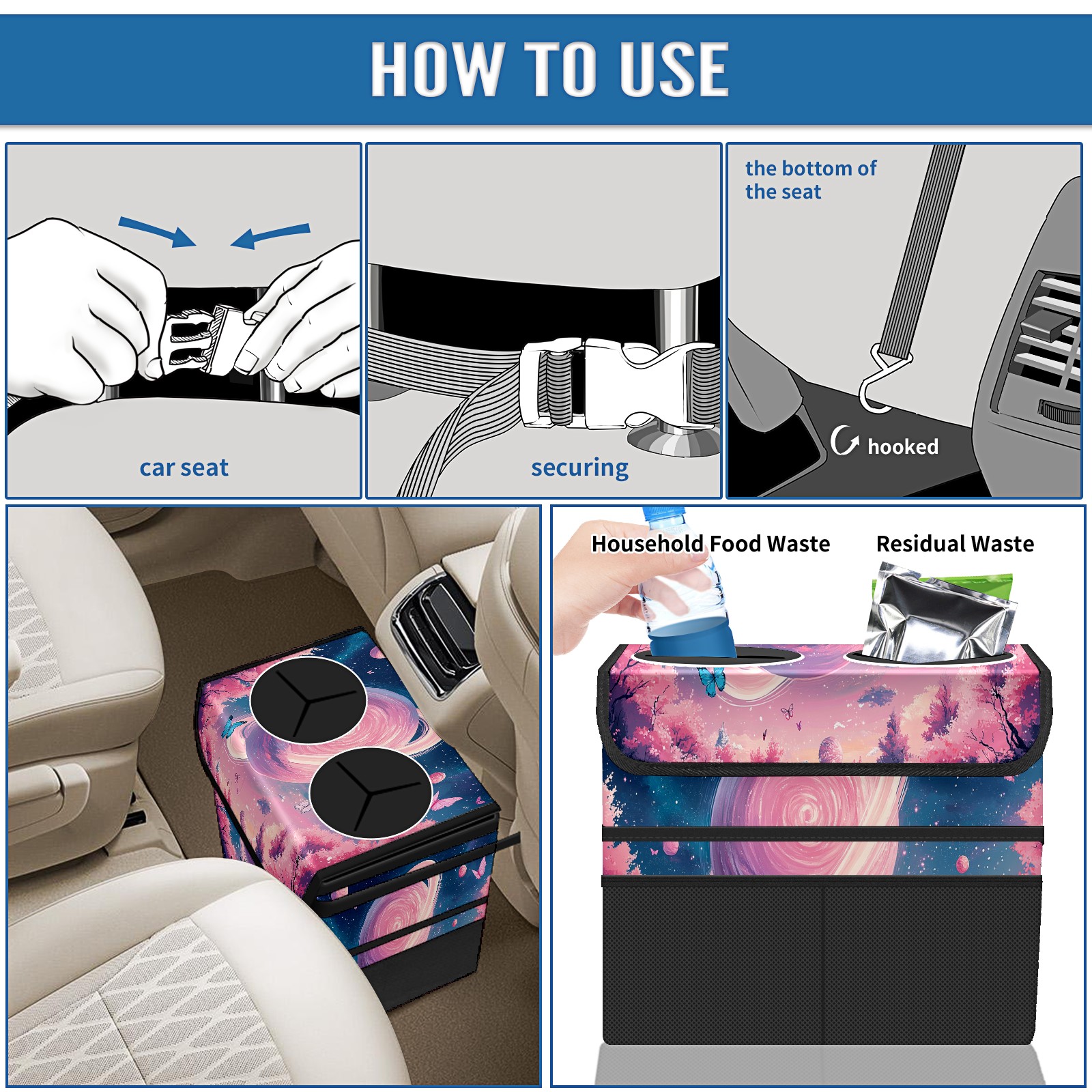 Car Trash Can with Lid, Portable Hanging Automotive Garbage Bin for Vehicles, Leakproof Waste Bag Container for SUV Truck Van Interior Auto Travel Road Trips(Pink Universe)