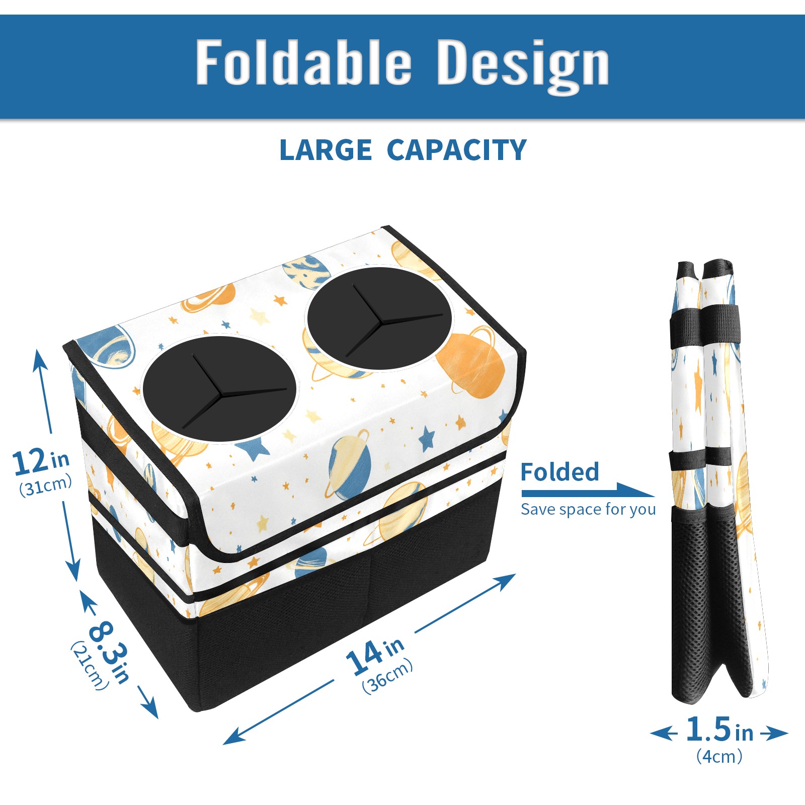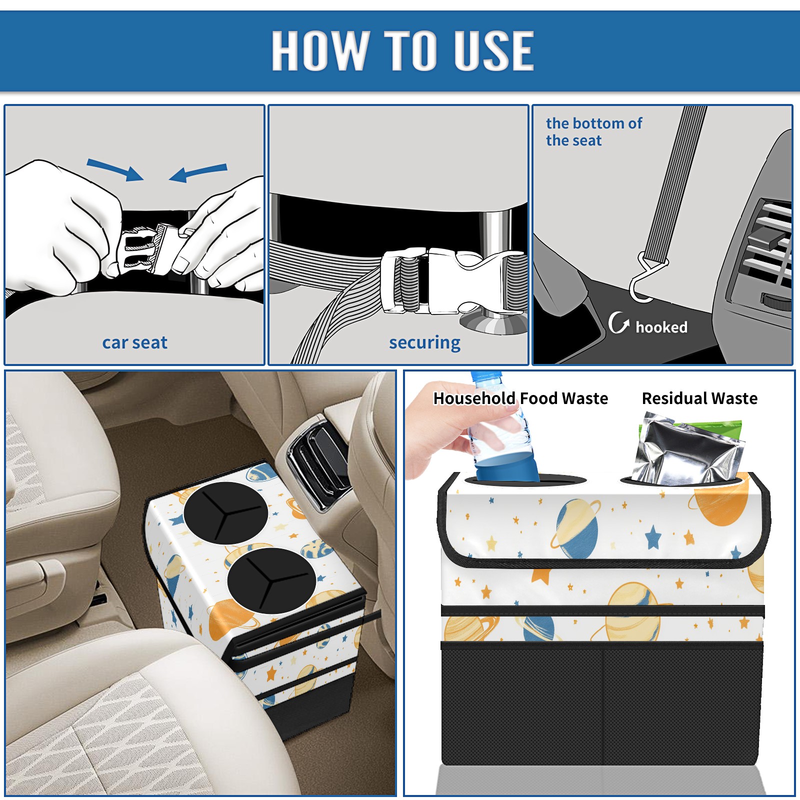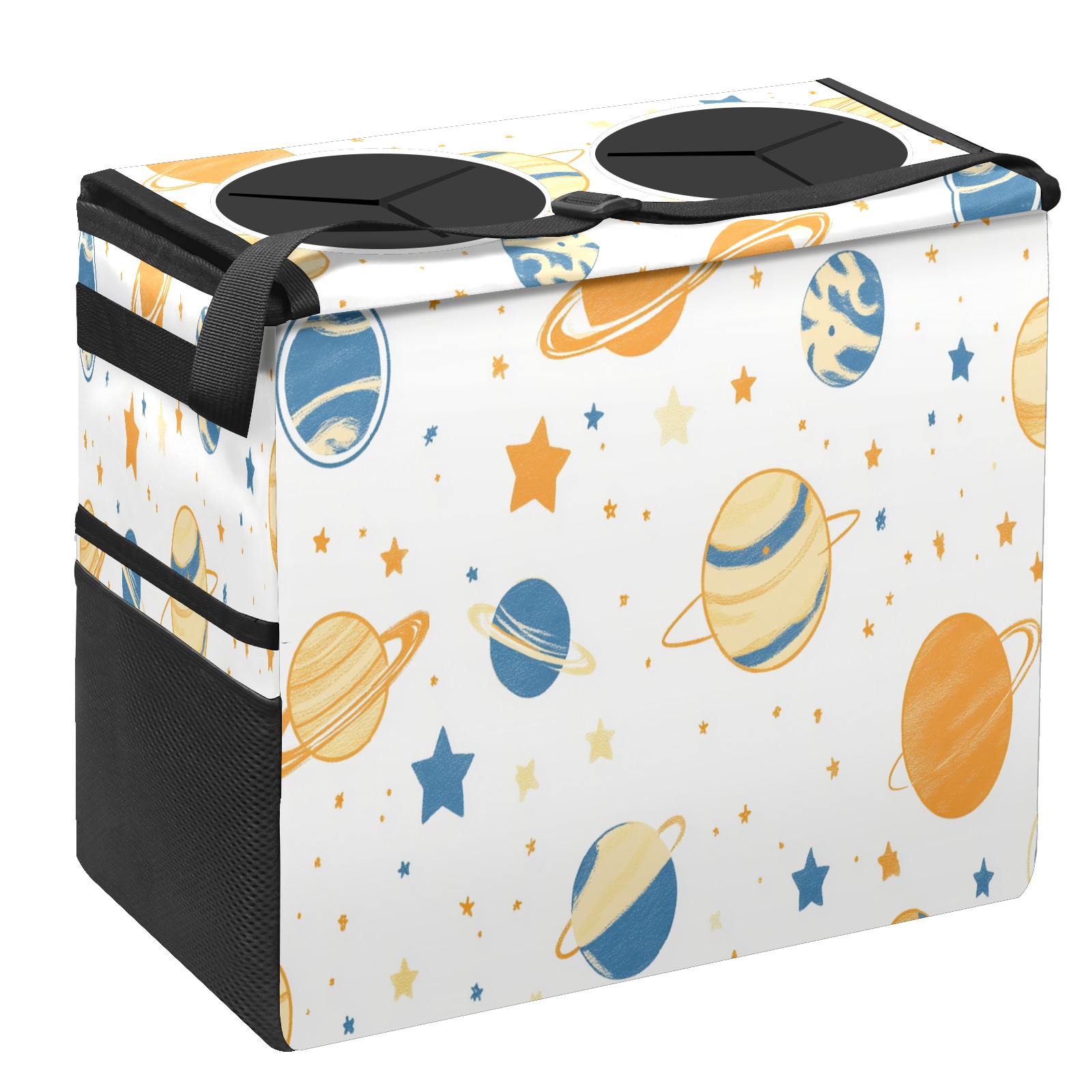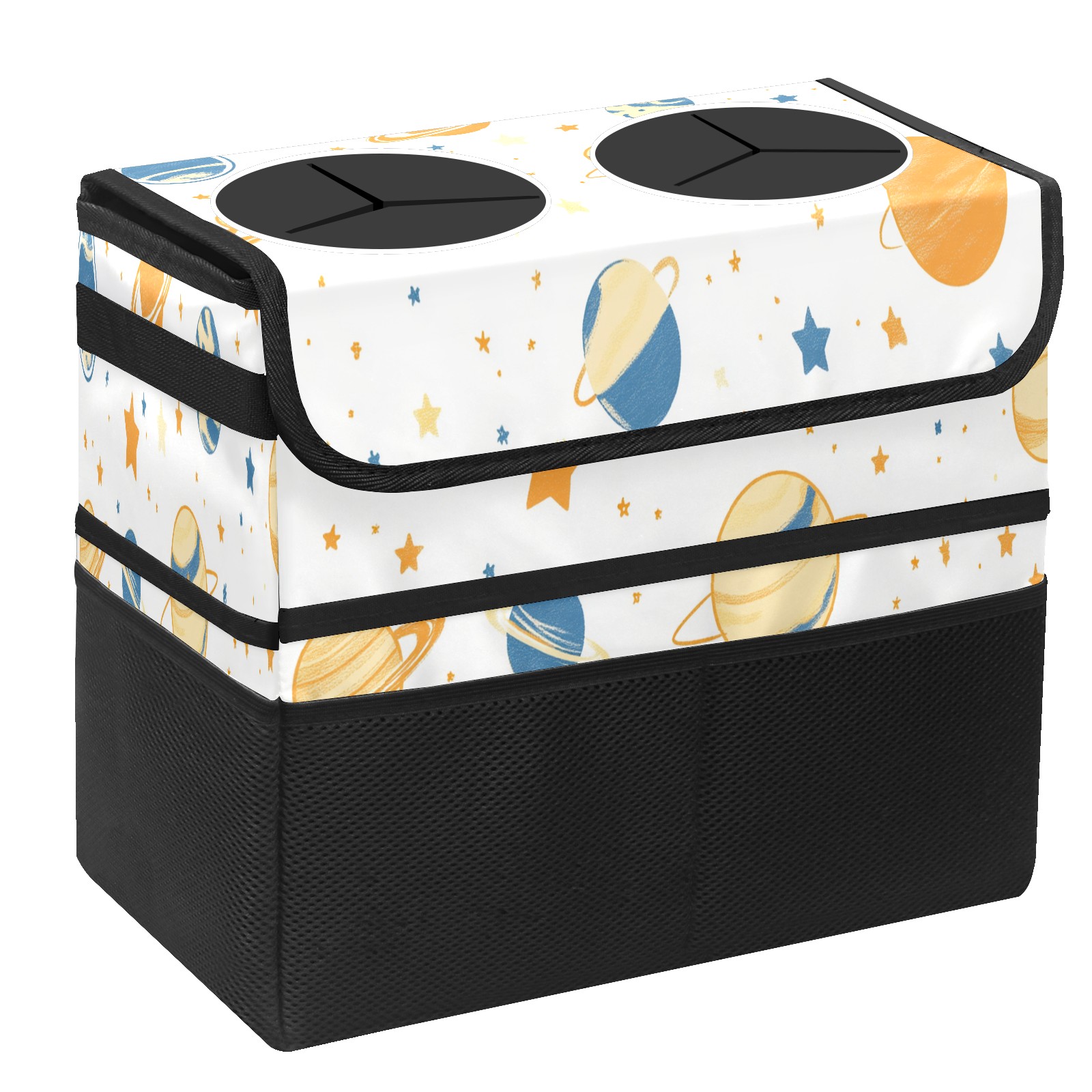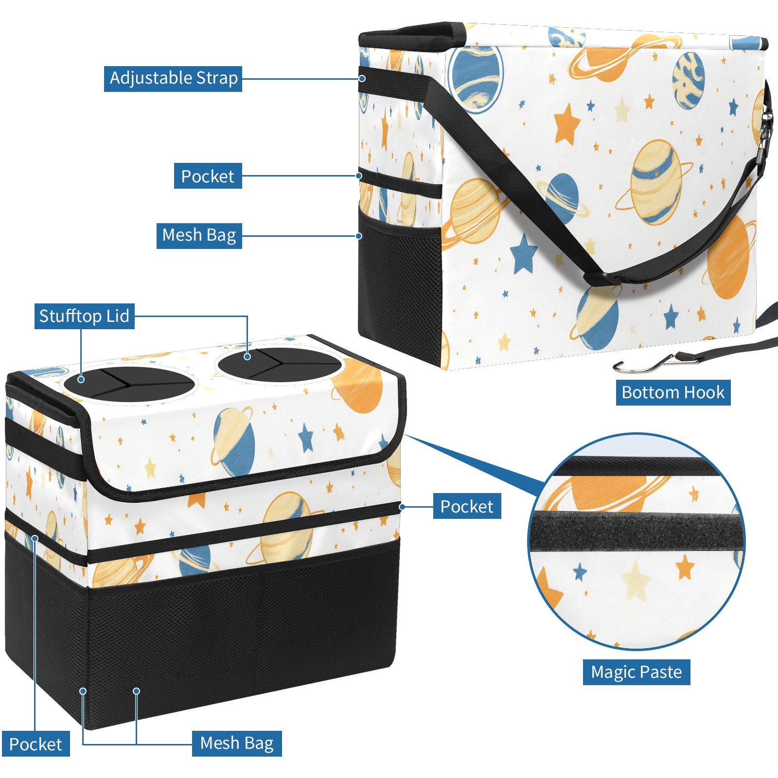 Car Trash Can with Lid, Portable Hanging Automotive Garbage Bin for Vehicles, Leakproof Waste Bag Container for SUV Truck Van Interior Auto Travel Road Trips(Planets And Stars)