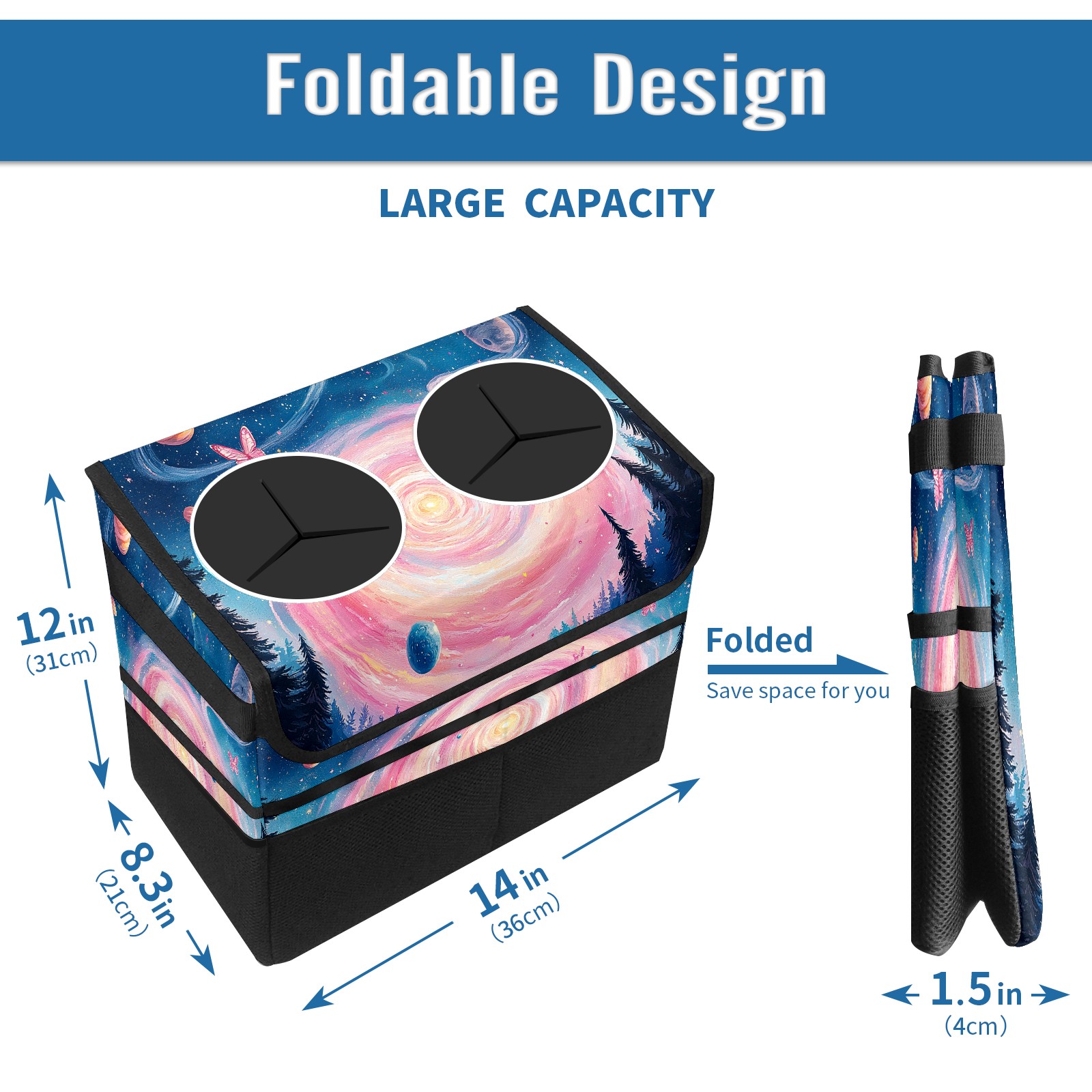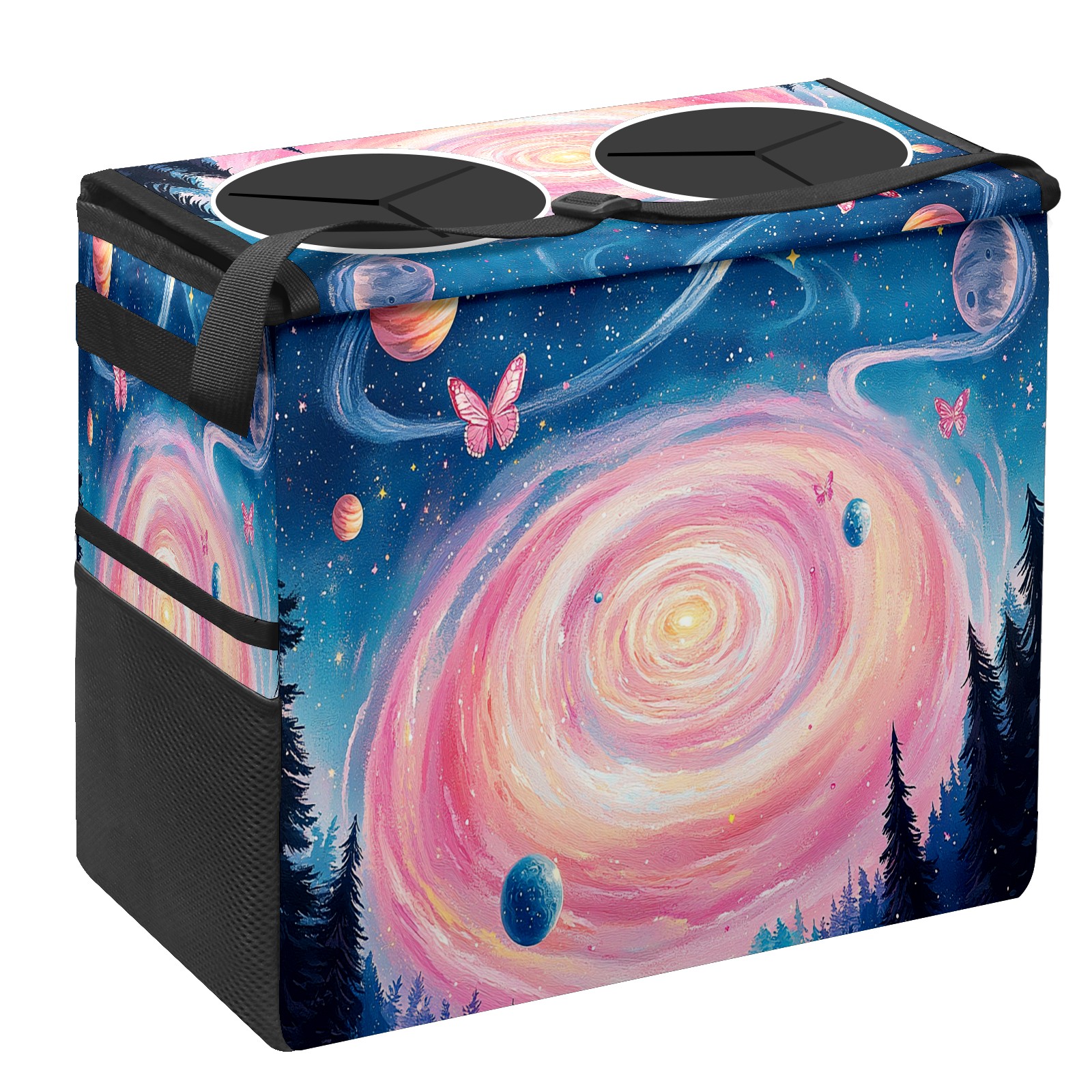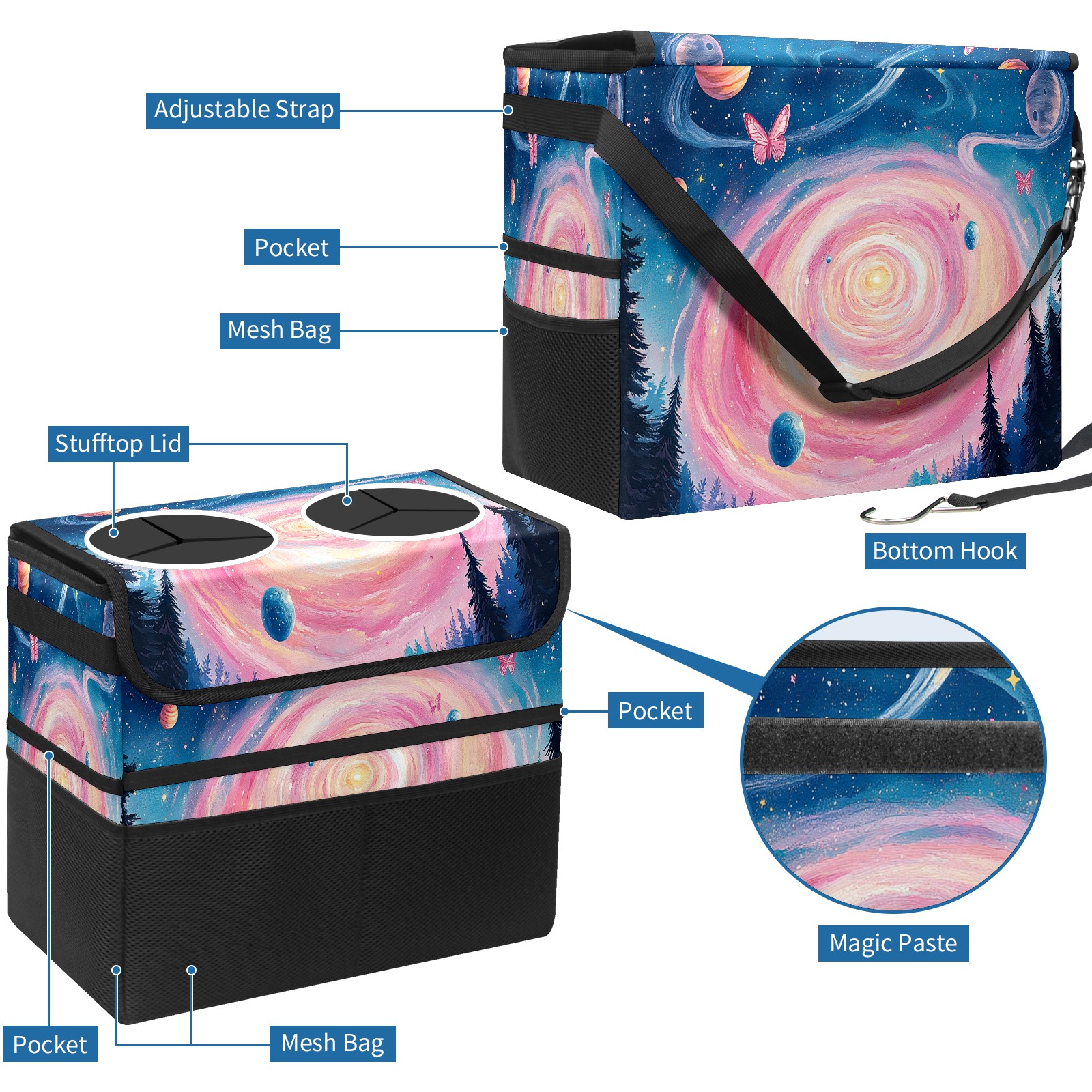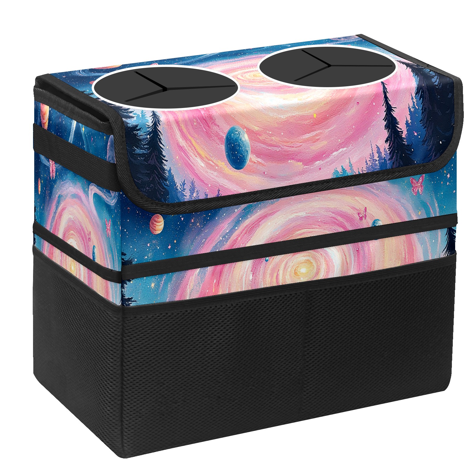 Car Trash Can with Lid, Portable Hanging Automotive Garbage Bin for Vehicles, Leakproof Waste Bag Container for SUV Truck Van Interior Auto Travel Road Trips(Pink Spiral Galaxy)