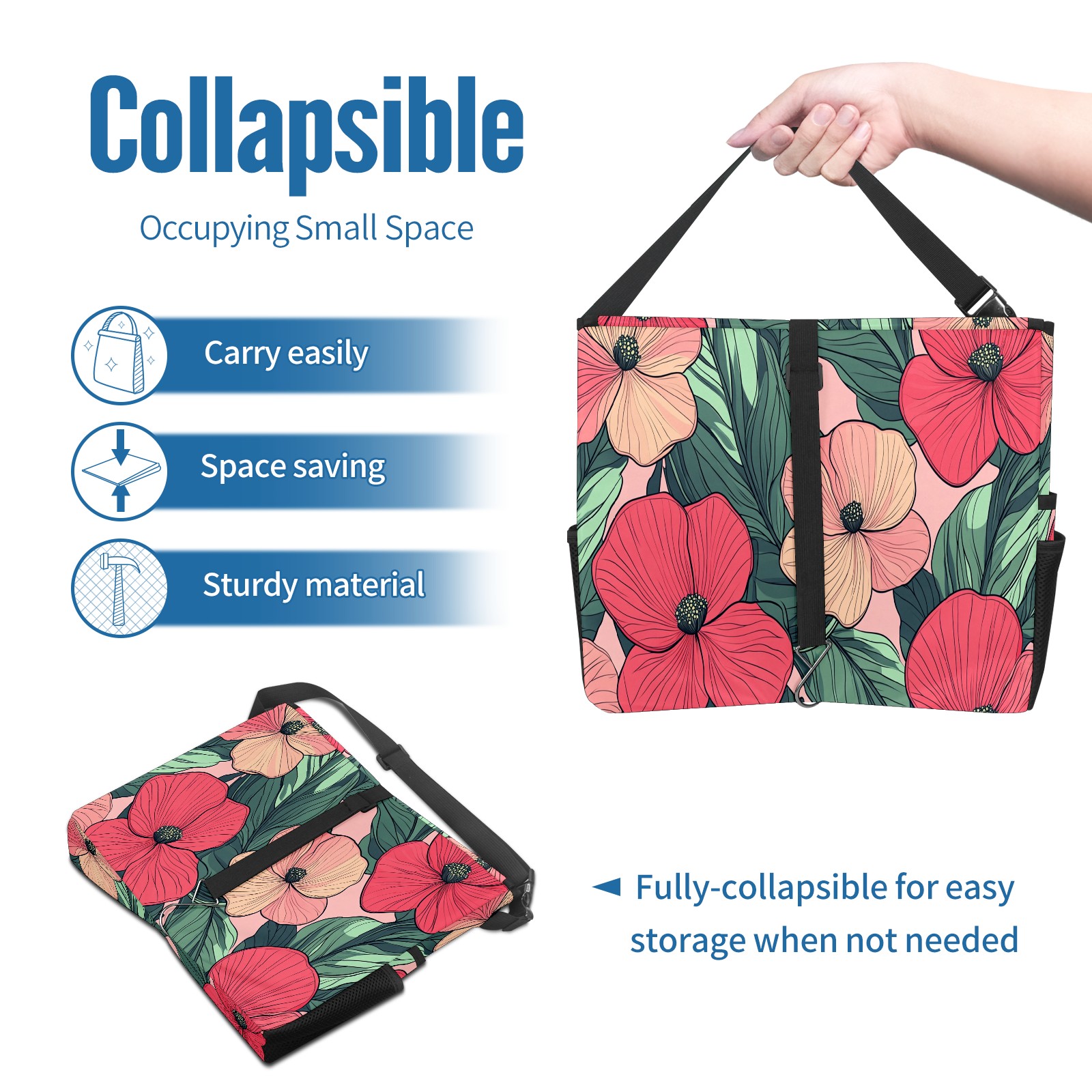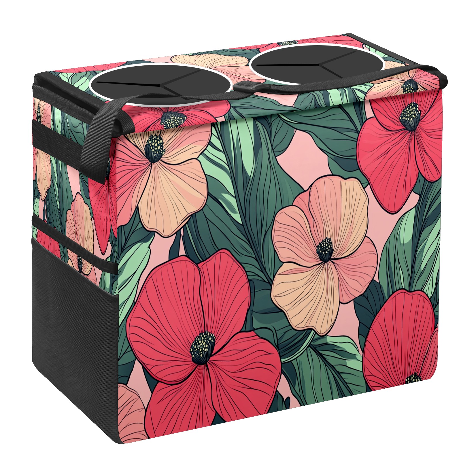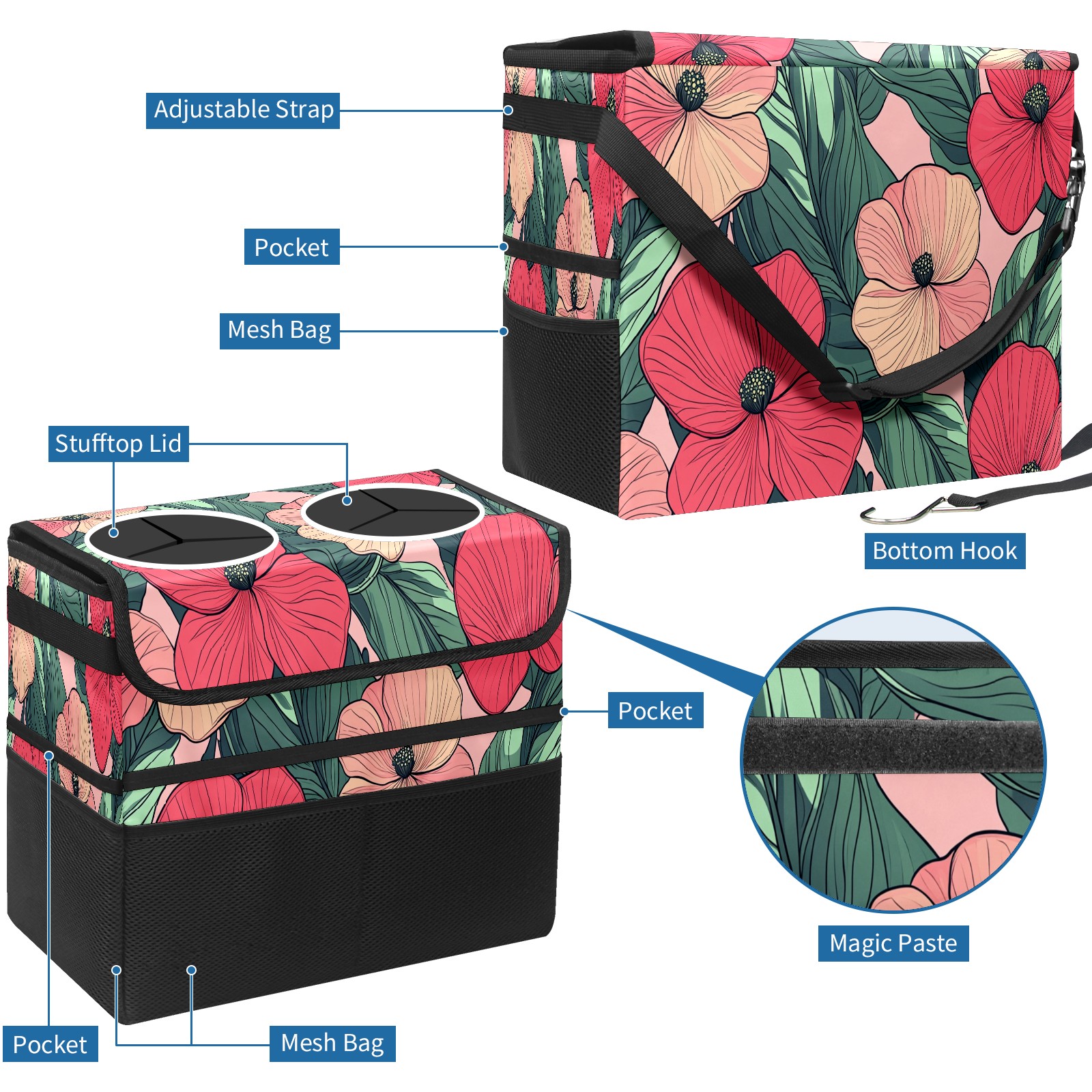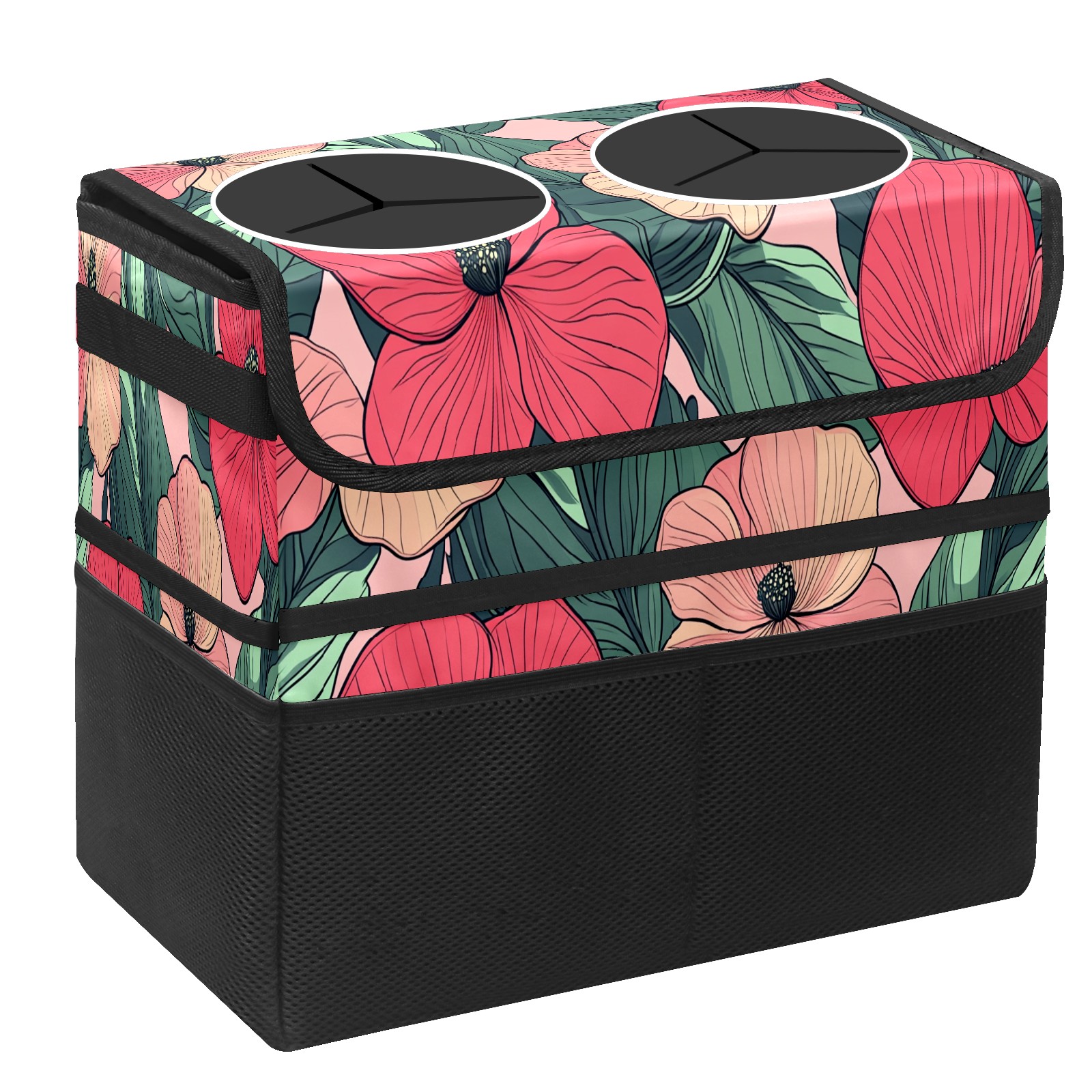 Car Trash Can with Lid, Portable Hanging Automotive Garbage Bin for Vehicles, Leakproof Waste Bag Container for SUV Truck Van Interior Auto Travel Road Trips(Red Pink Flowers)