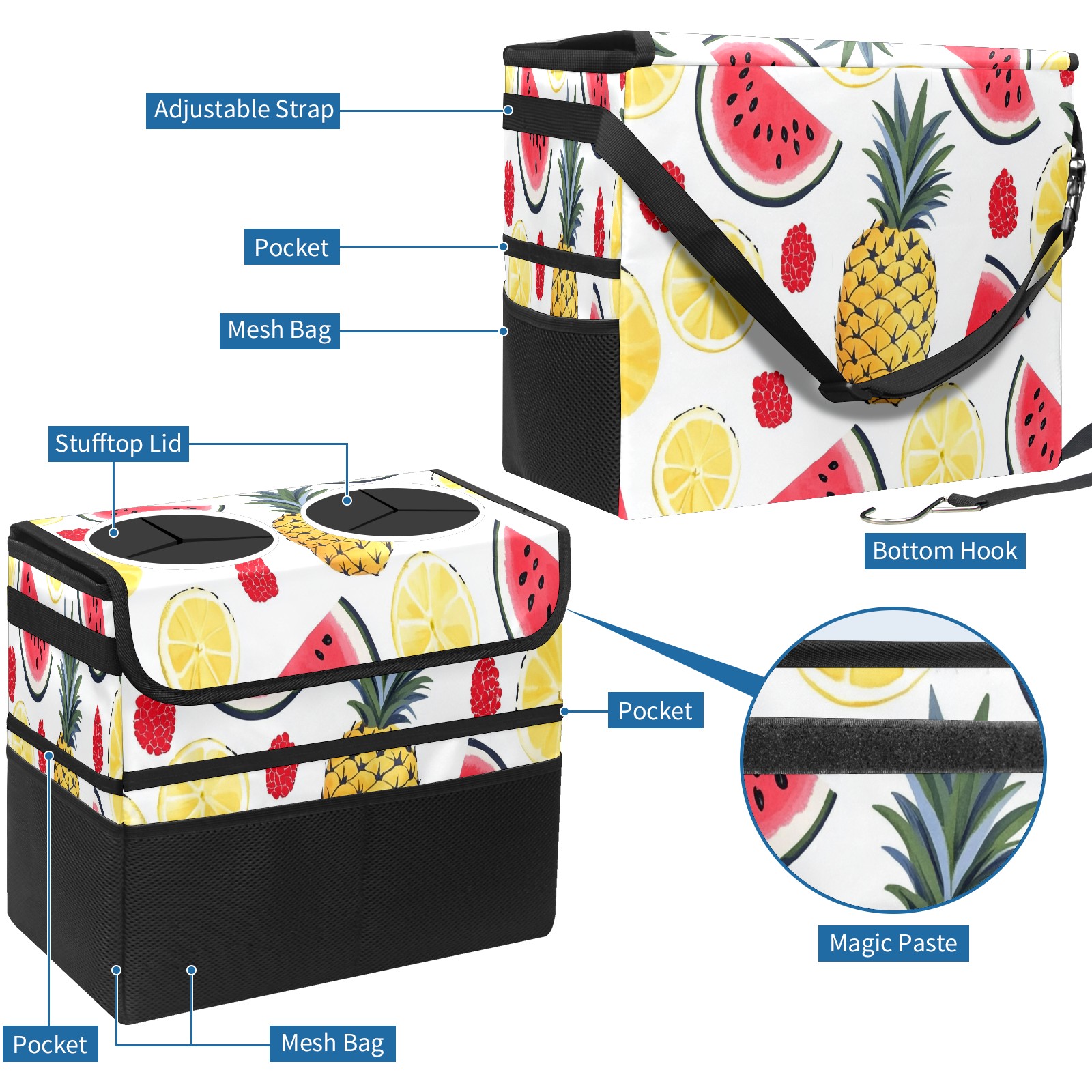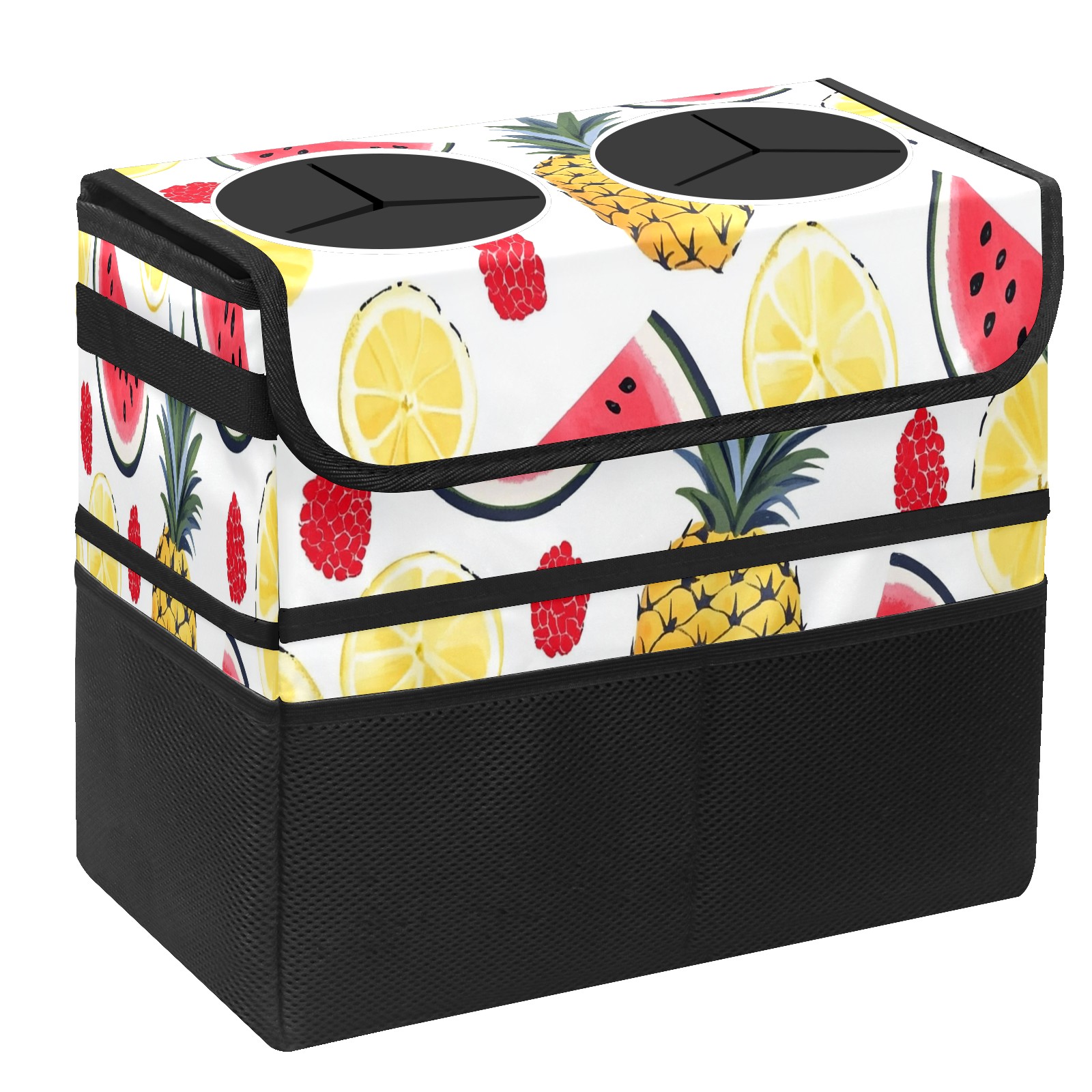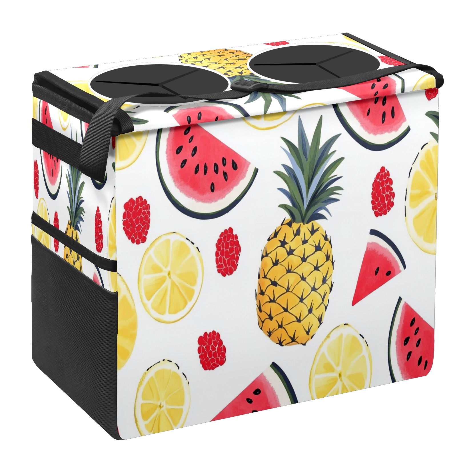 Car Trash Can with Lid, Portable Hanging Automotive Garbage Bin for Vehicles, Leakproof Waste Bag Container for SUV Truck Van Interior Auto Travel Road Trips(Watermelon Pineapple)