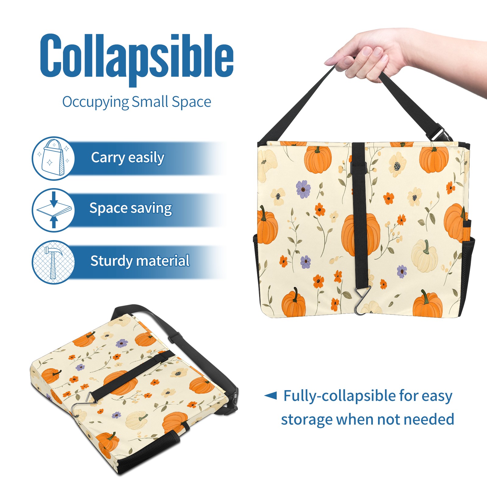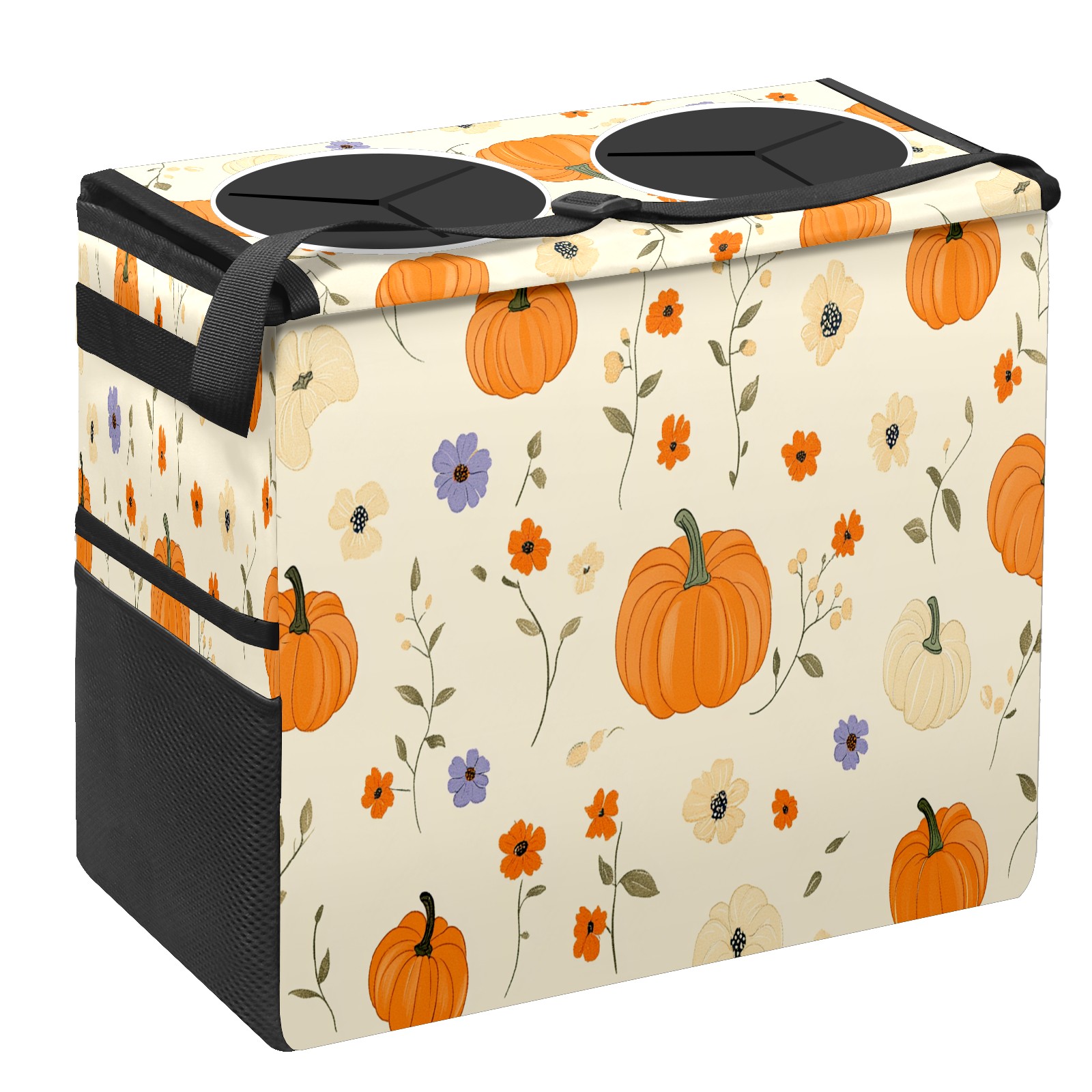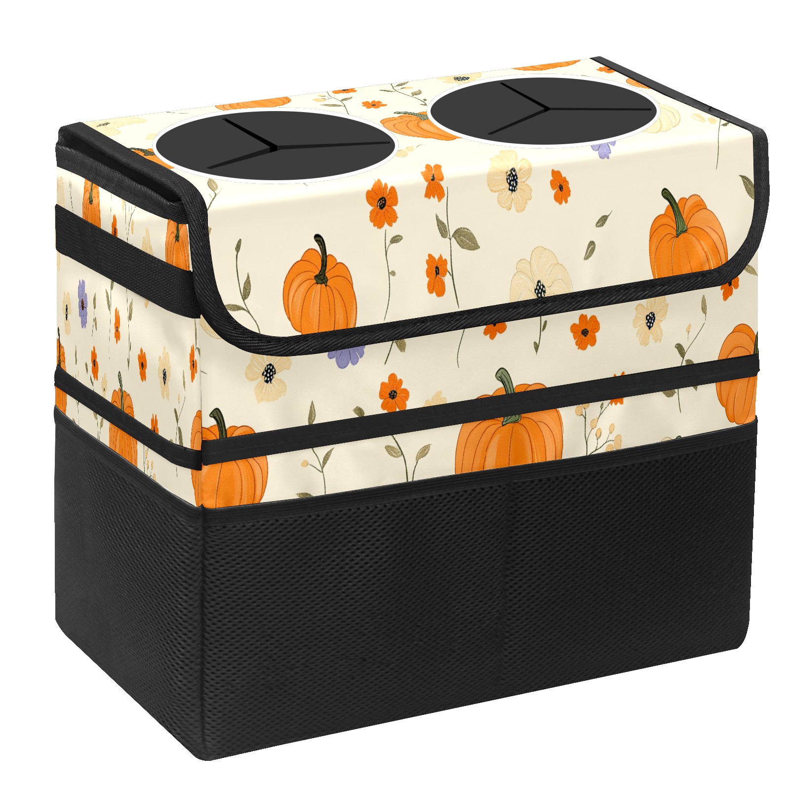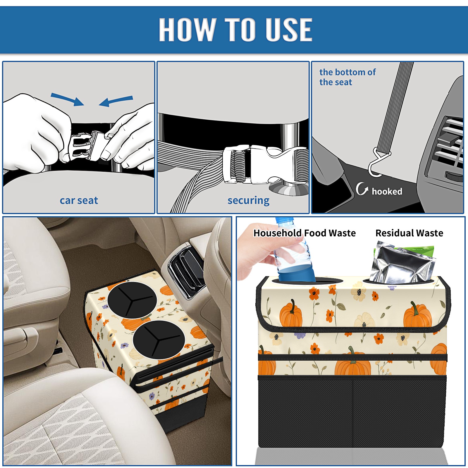 Car Trash Can with Lid, Portable Hanging Automotive Garbage Bin for Vehicles, Leakproof Waste Bag Container for SUV Truck Van Interior Auto Travel Road Trips(Pumpkins)