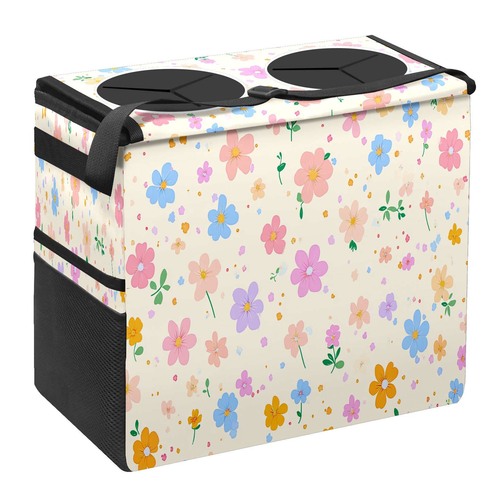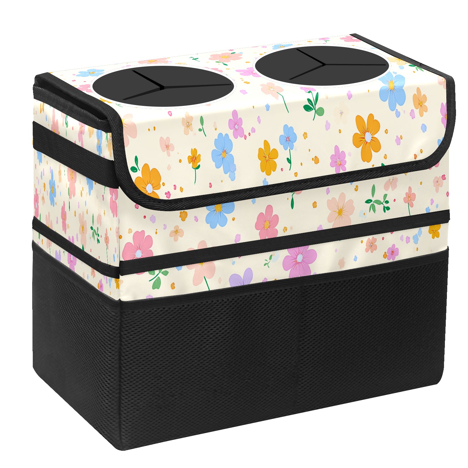 Car Trash Can with Lid, Portable Hanging Automotive Garbage Bin for Vehicles, Leakproof Waste Bag Container for SUV Truck Van Interior Auto Travel Road Trips(Spring Flowers)