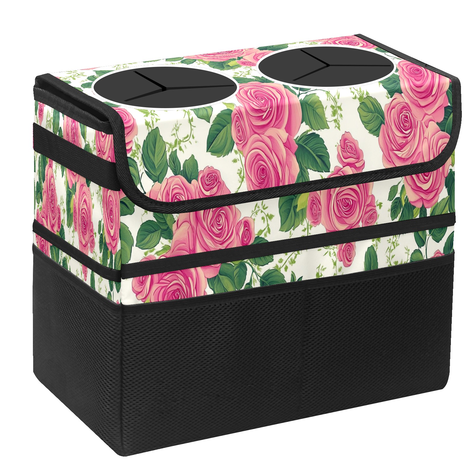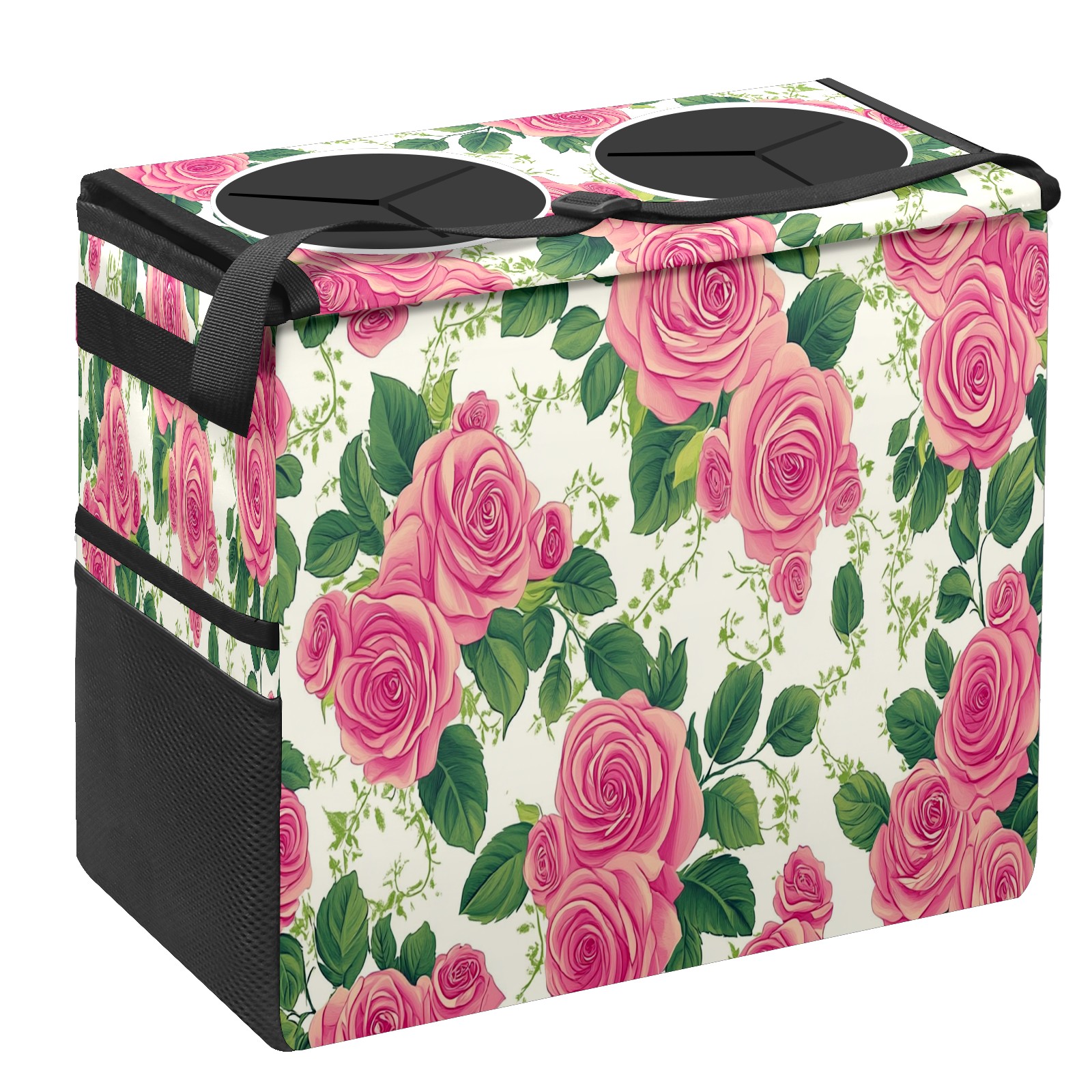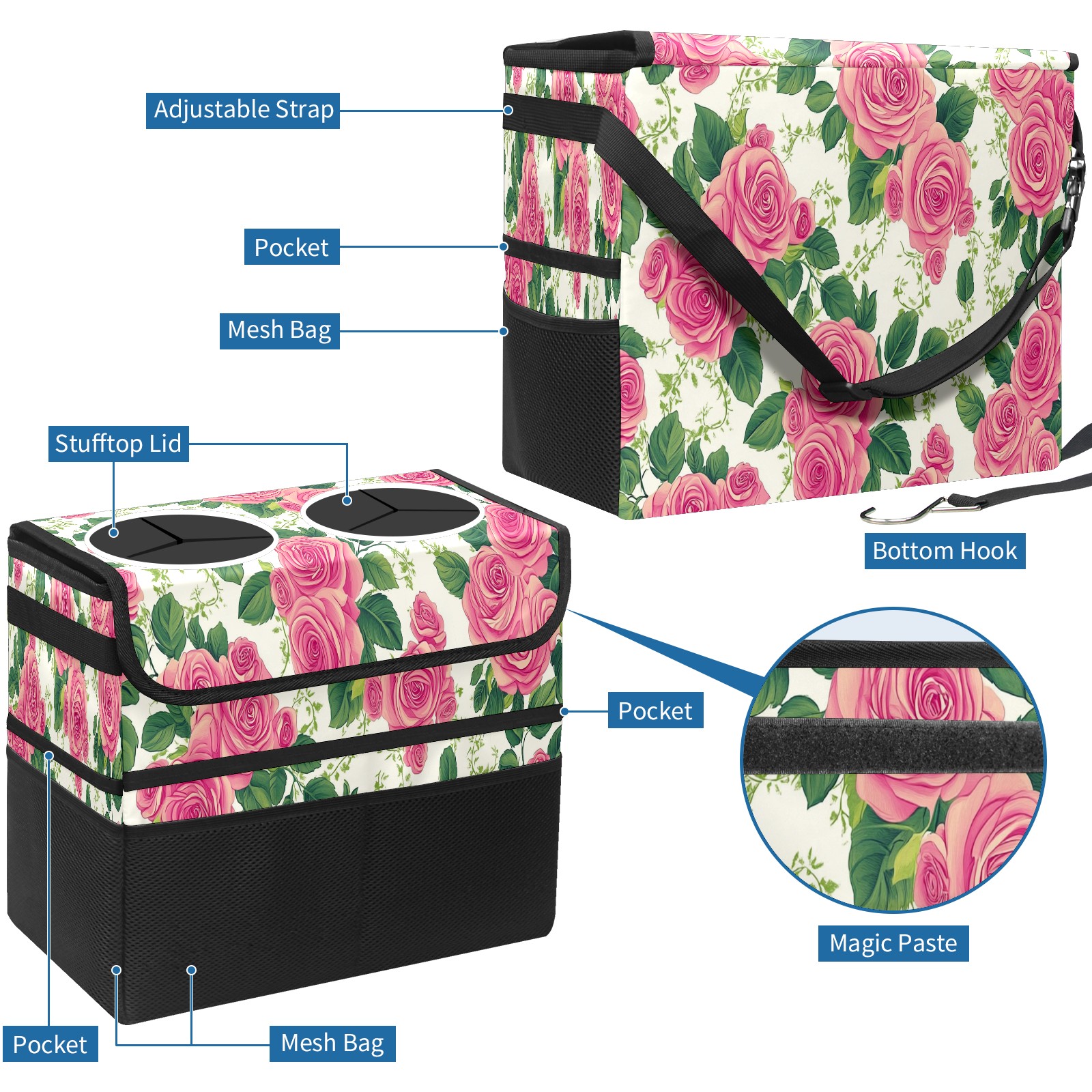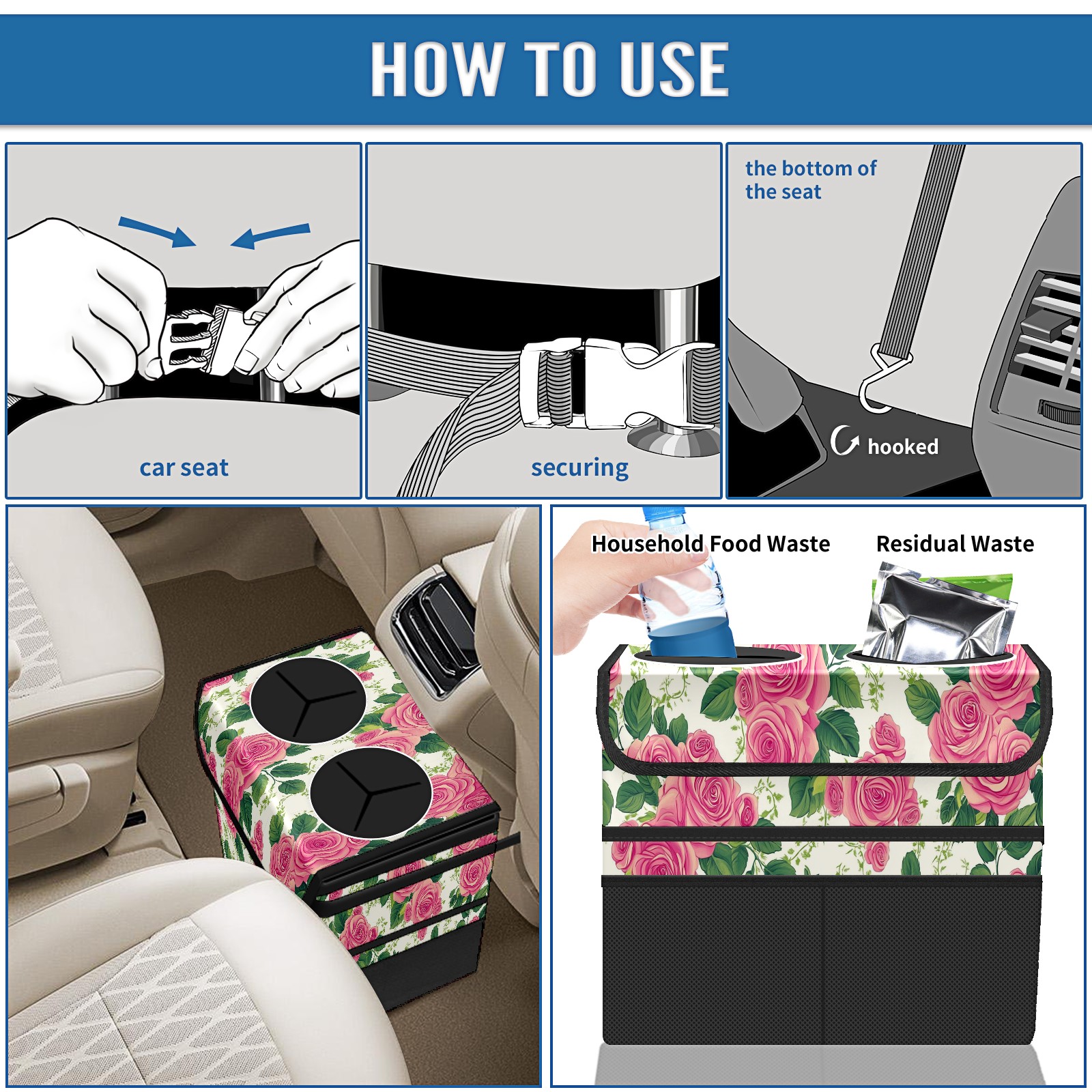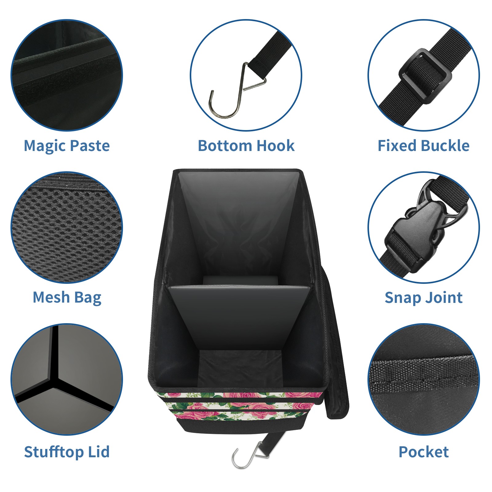 Car Trash Can with Lid, Portable Hanging Automotive Garbage Bin for Vehicles, Leakproof Waste Bag Container for SUV Truck Van Interior Auto Travel Road Trips(Vintage Rose)