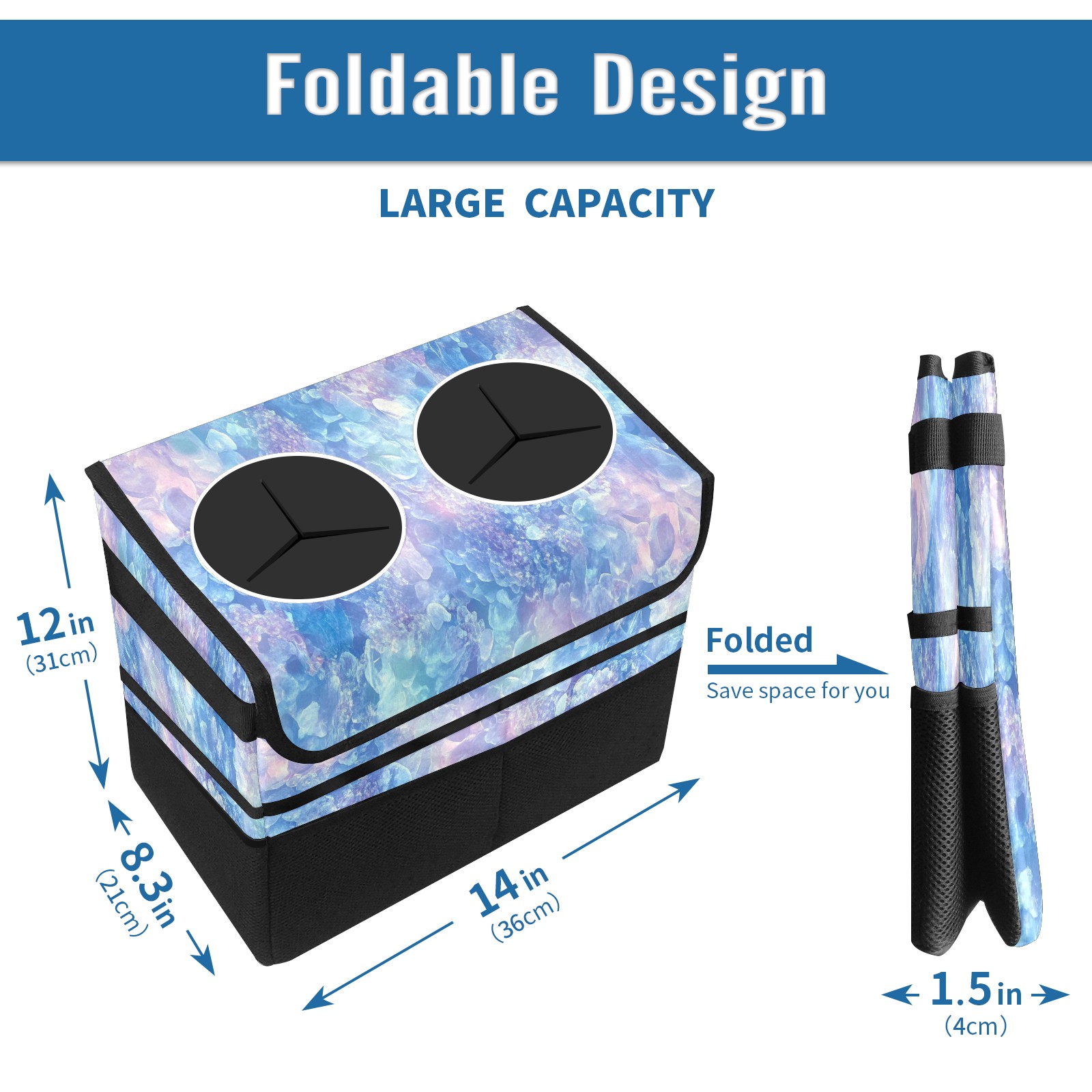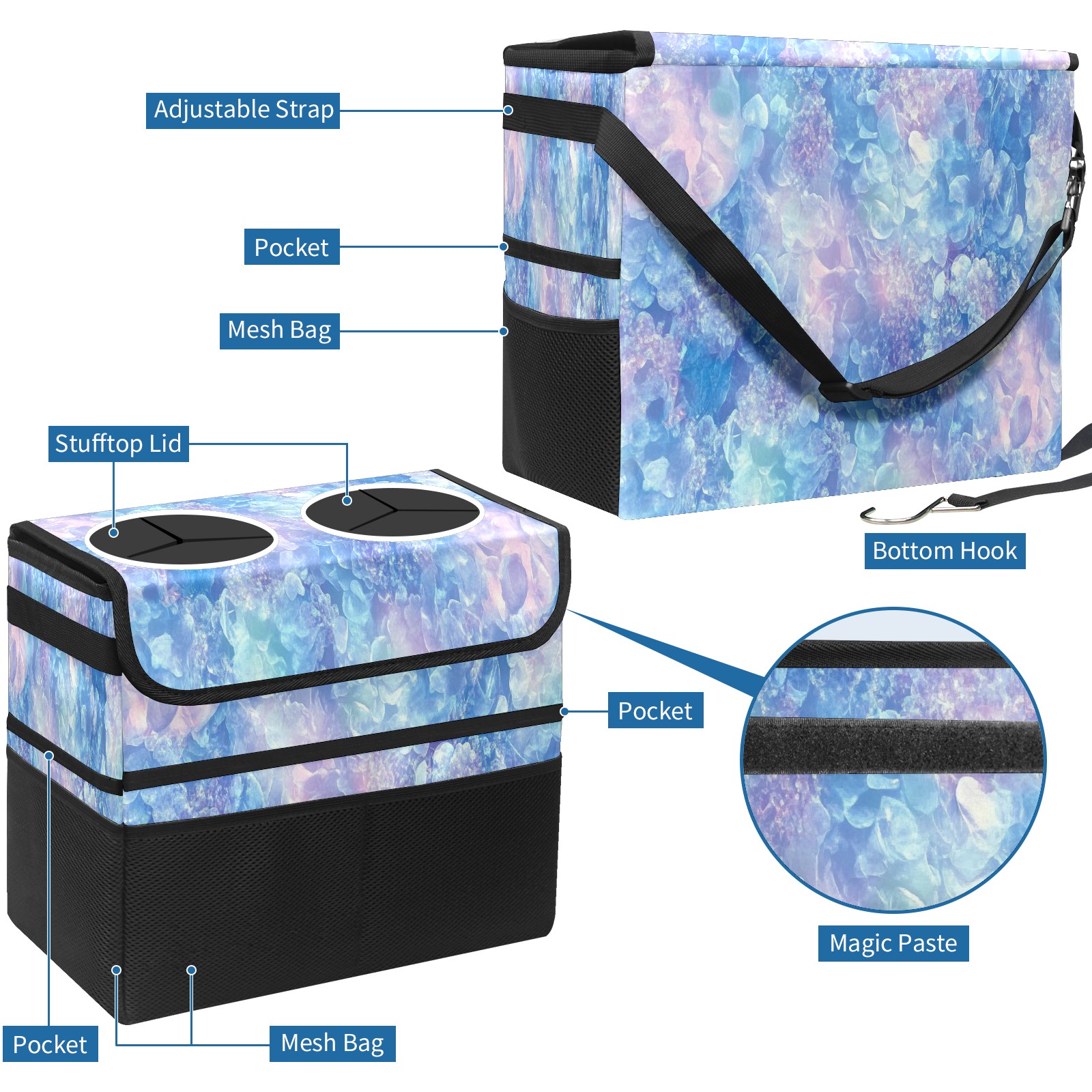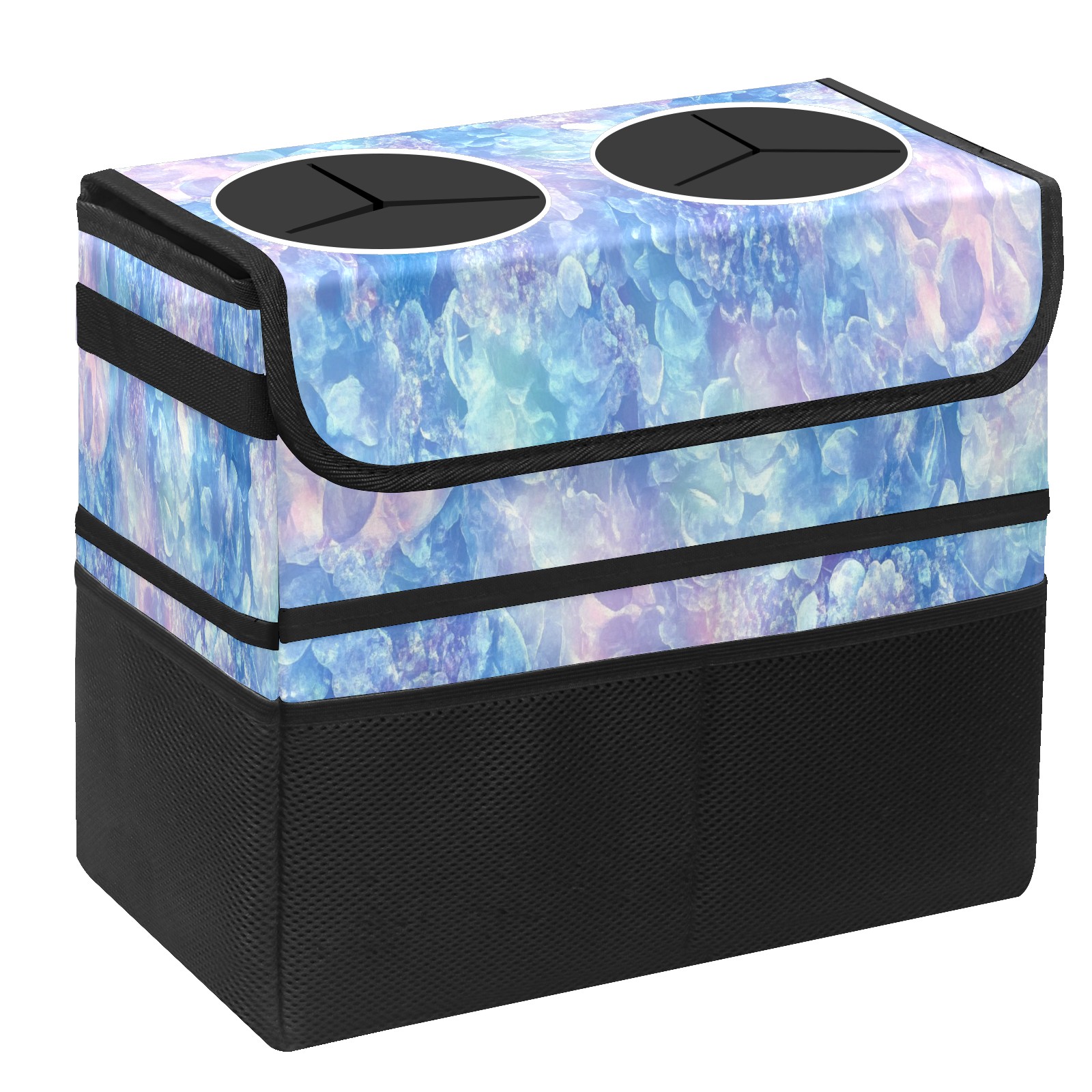 Car Trash Can with Lid, Portable Hanging Automotive Garbage Bin for Vehicles, Leakproof Waste Bag Container for SUV Truck Van Interior Auto Travel Road Trips(Holographic Foil Printing)
