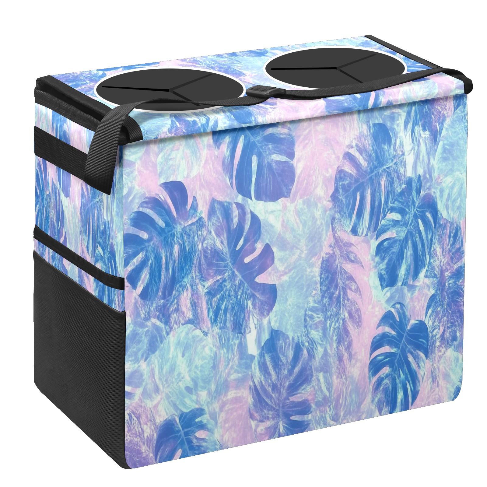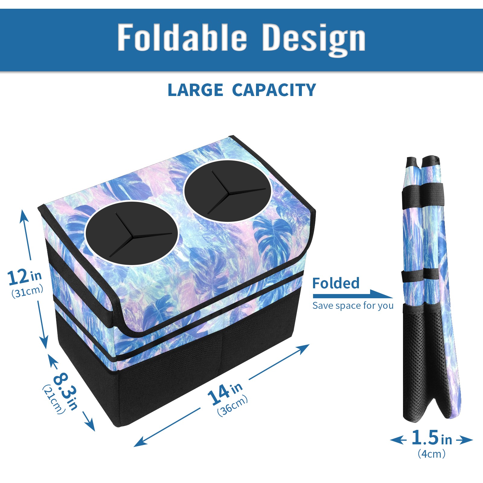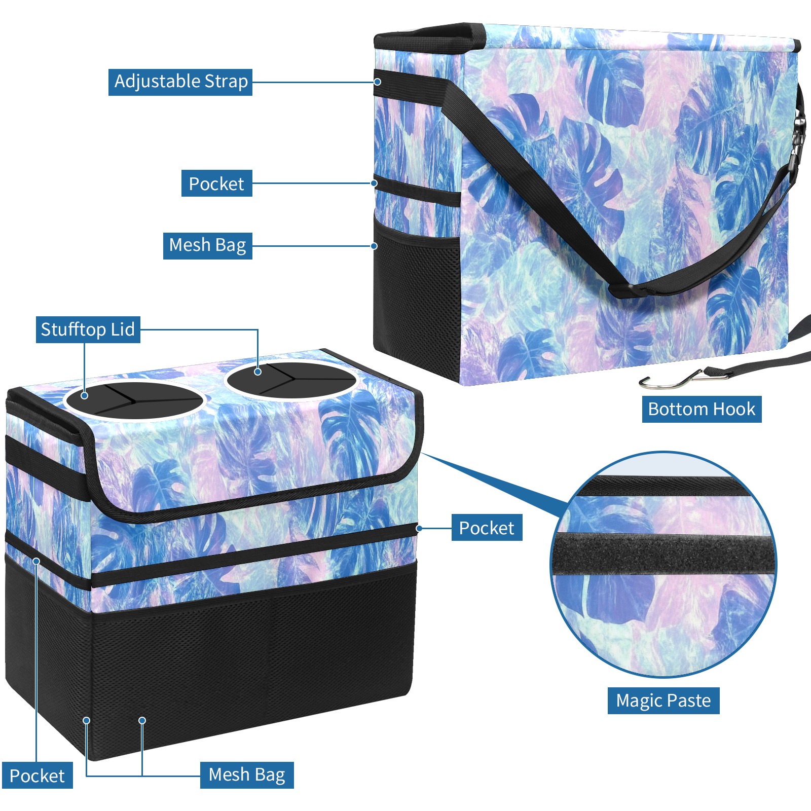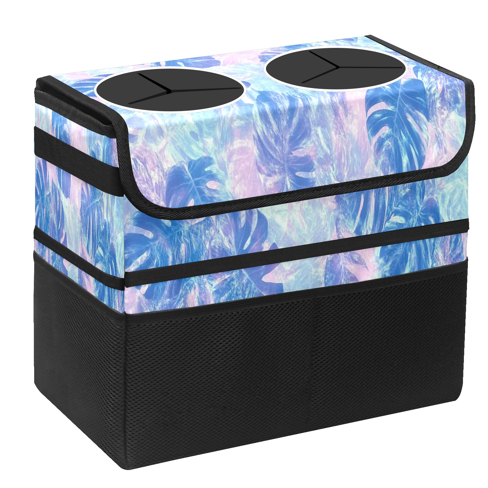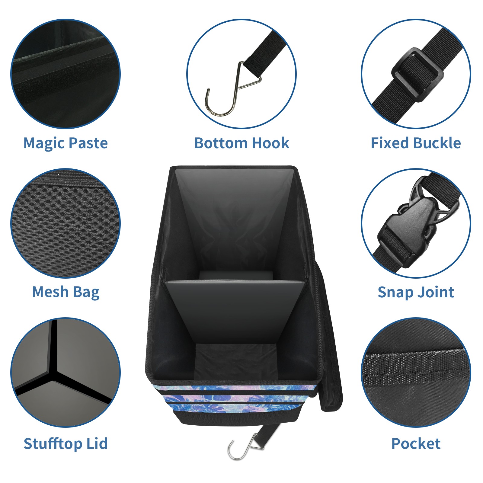 Car Trash Can with Lid, Portable Hanging Automotive Garbage Bin for Vehicles, Leakproof Waste Bag Container for SUV Truck Van Interior Auto Travel Road Trips(Foil Printing)