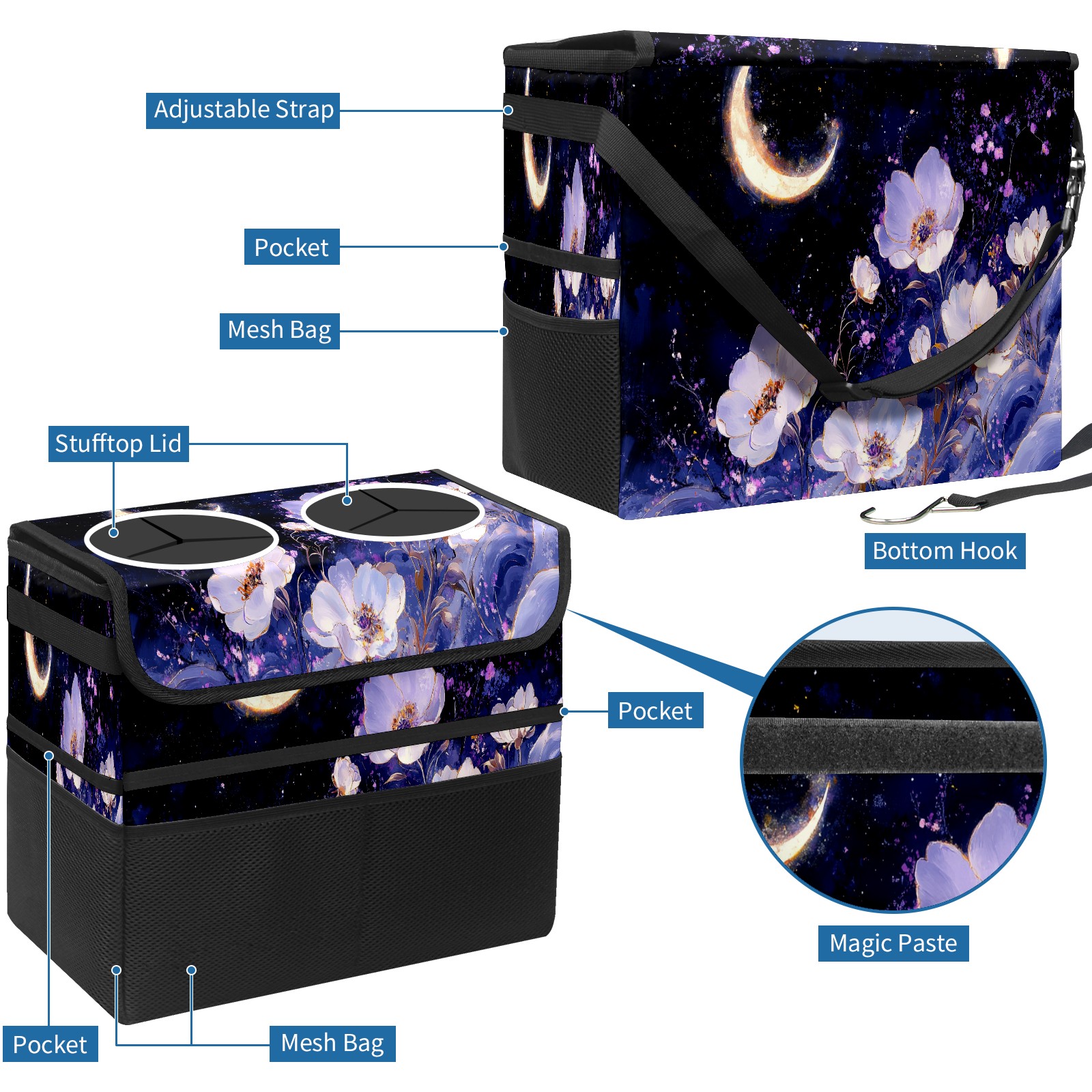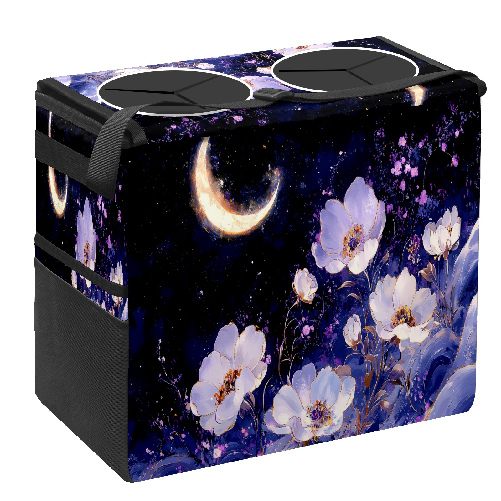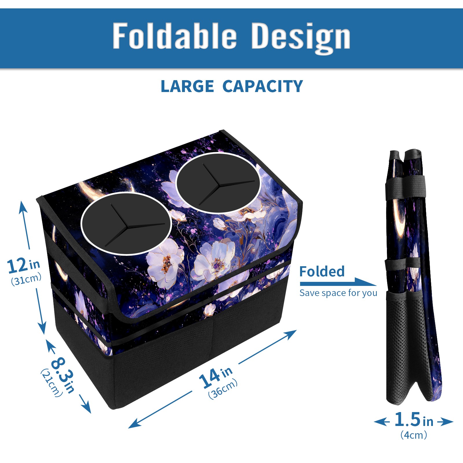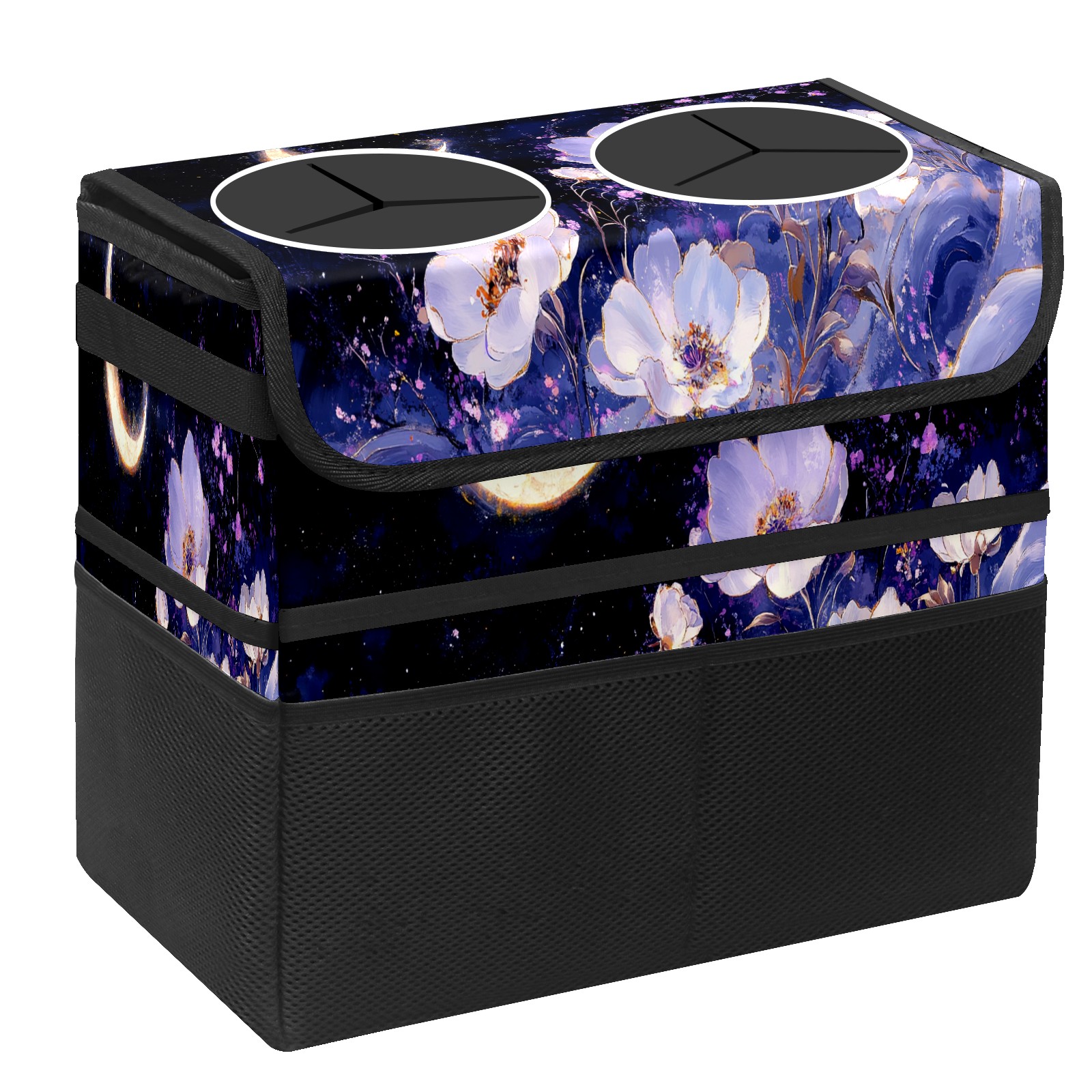 Car Trash Can with Lid, Portable Hanging Automotive Garbage Bin for Vehicles, Leakproof Waste Bag Container for SUV Truck Van Interior Auto Travel Road Trips(White And Purple Floral)