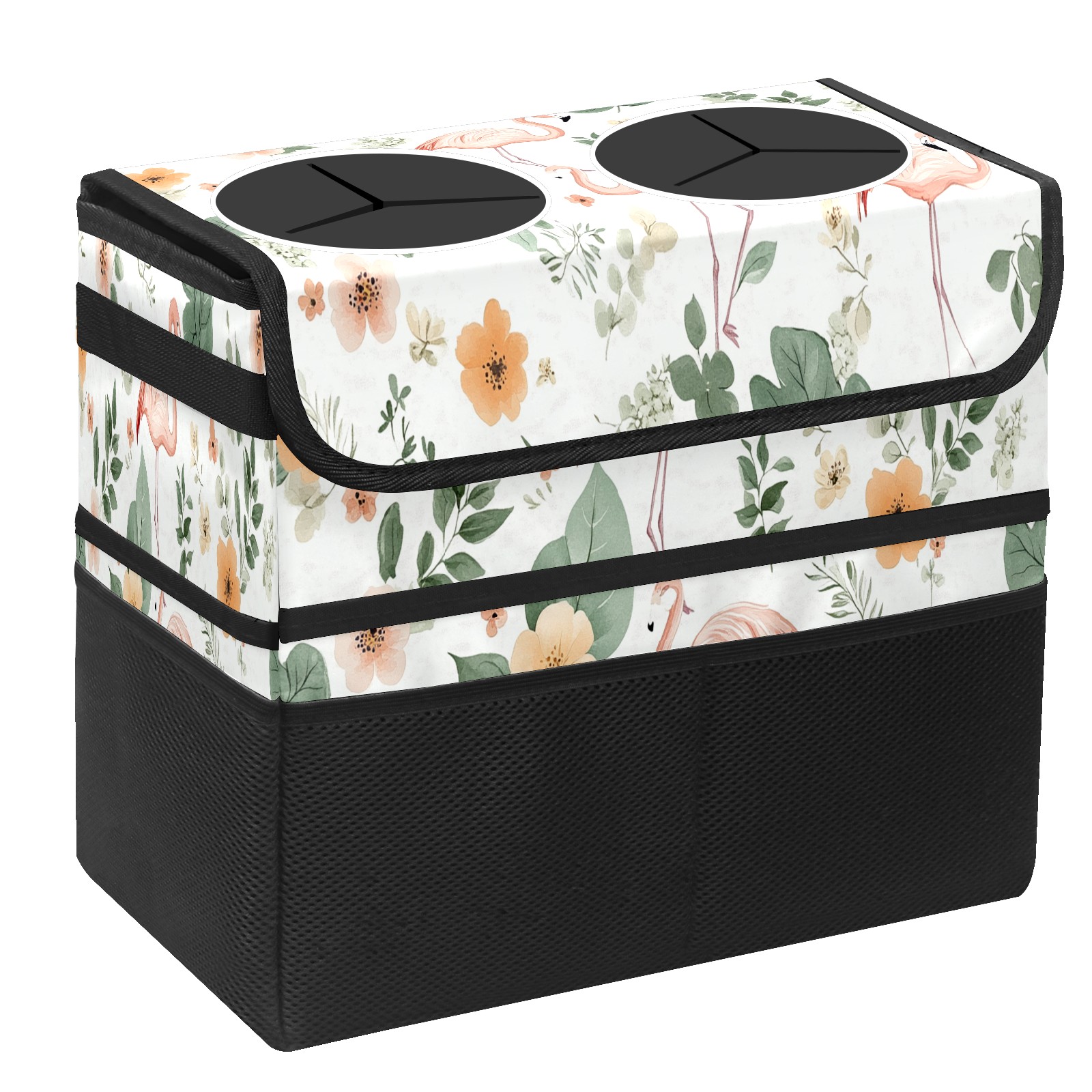 Car Trash Can with Lid, Portable Hanging Automotive Garbage Bin for Vehicles, Leakproof Waste Bag Container for SUV Truck Van Interior Auto Travel Road Trips(Hand-drawn Flamingos)