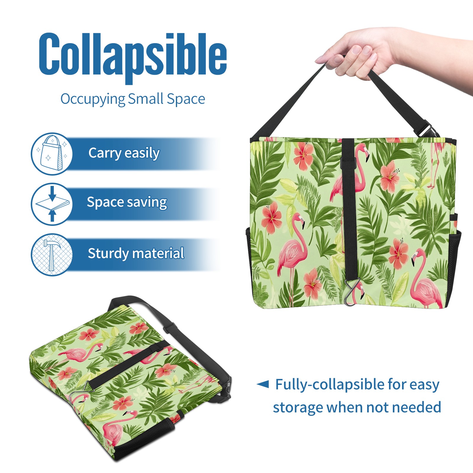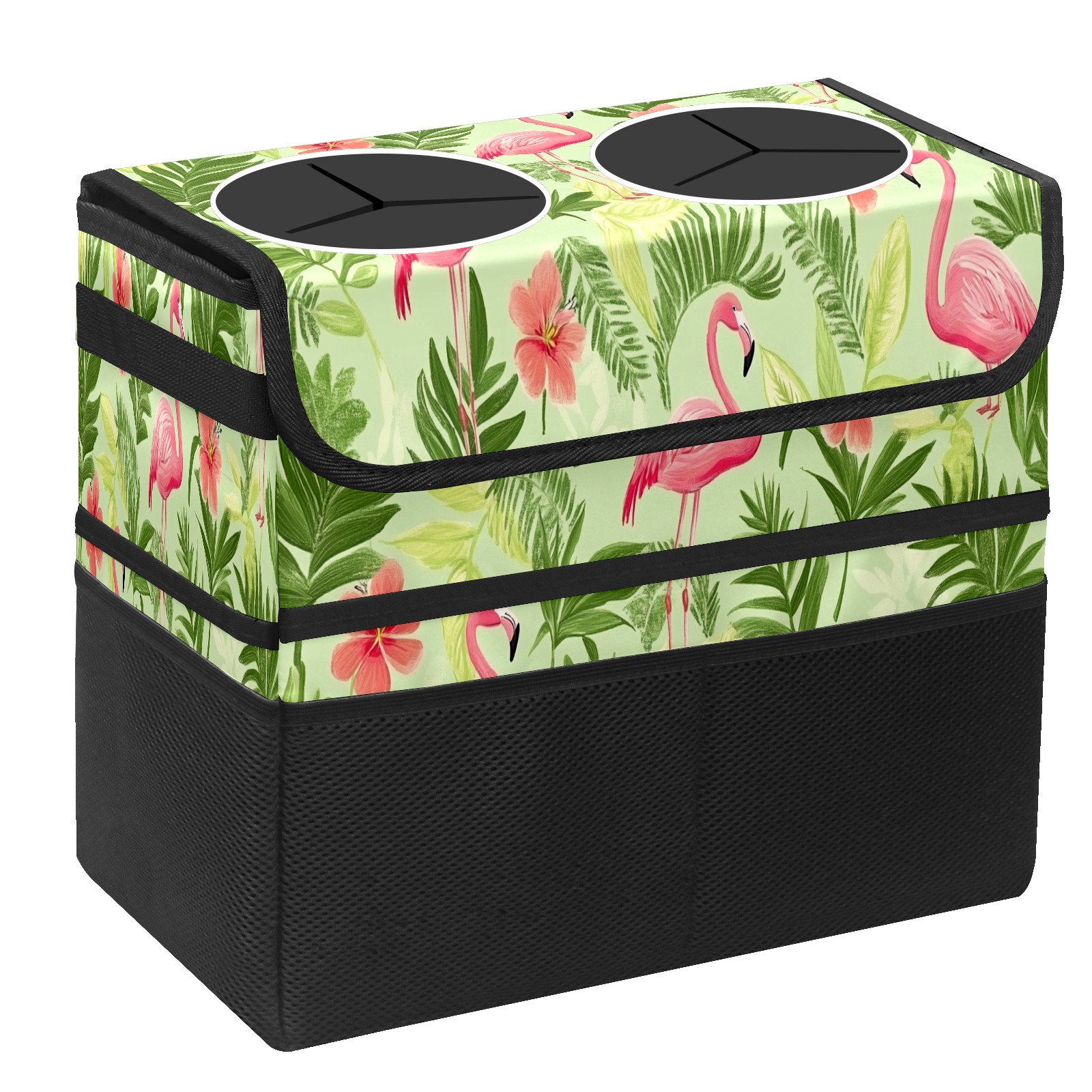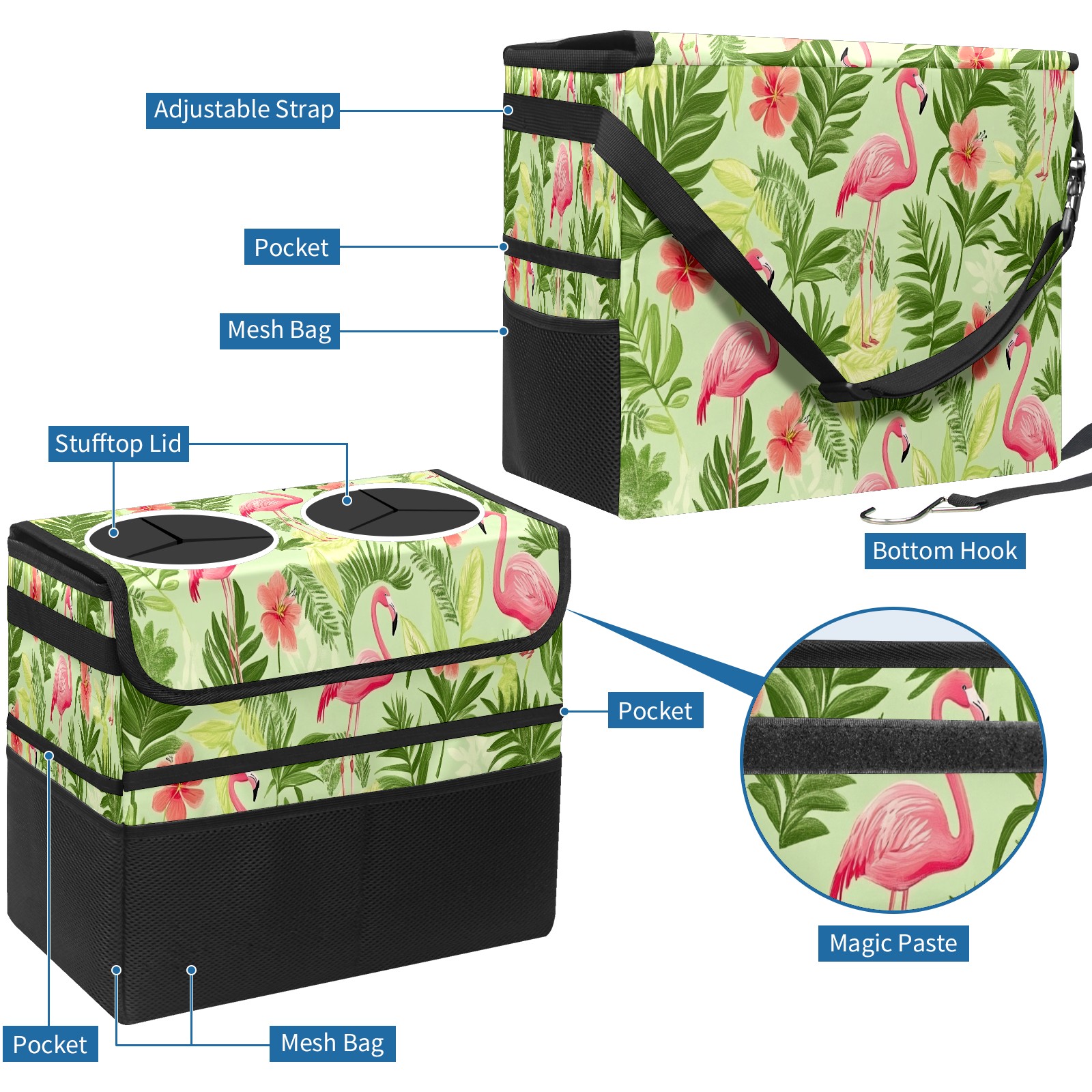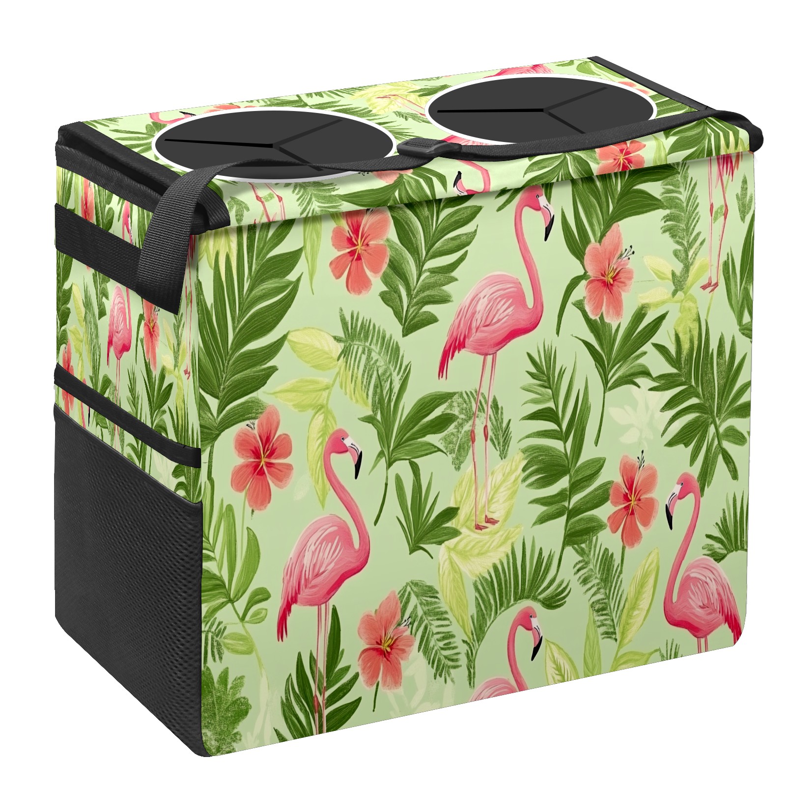 Car Trash Can with Lid, Portable Hanging Automotive Garbage Bin for Vehicles, Leakproof Waste Bag Container for SUV Truck Van Interior Auto Travel Road Trips(Pink Flamingos Green)