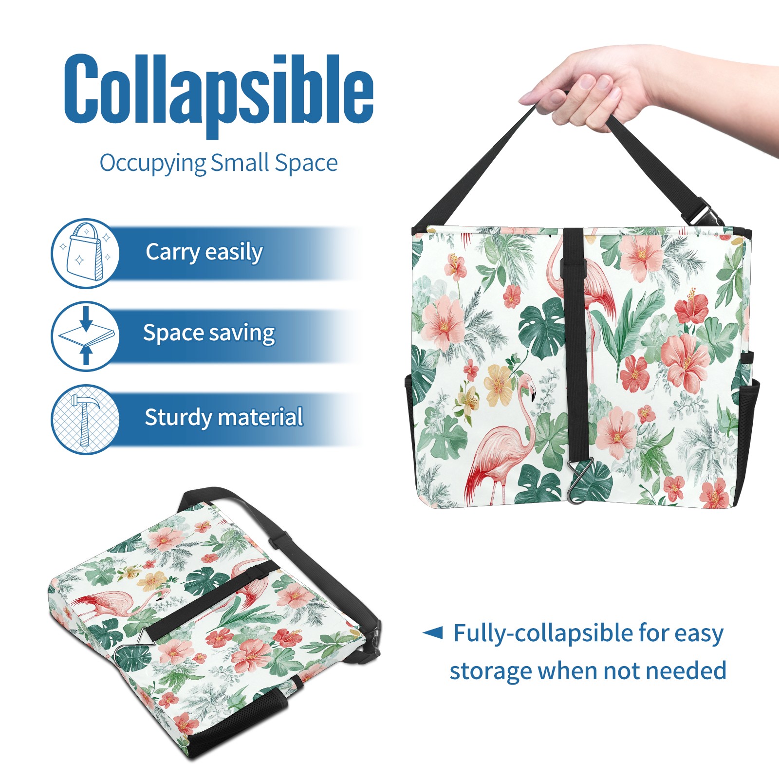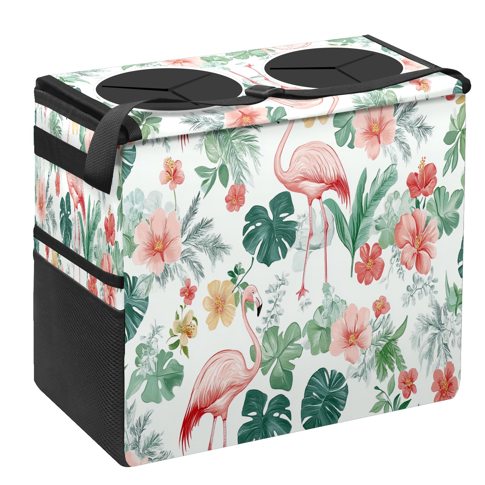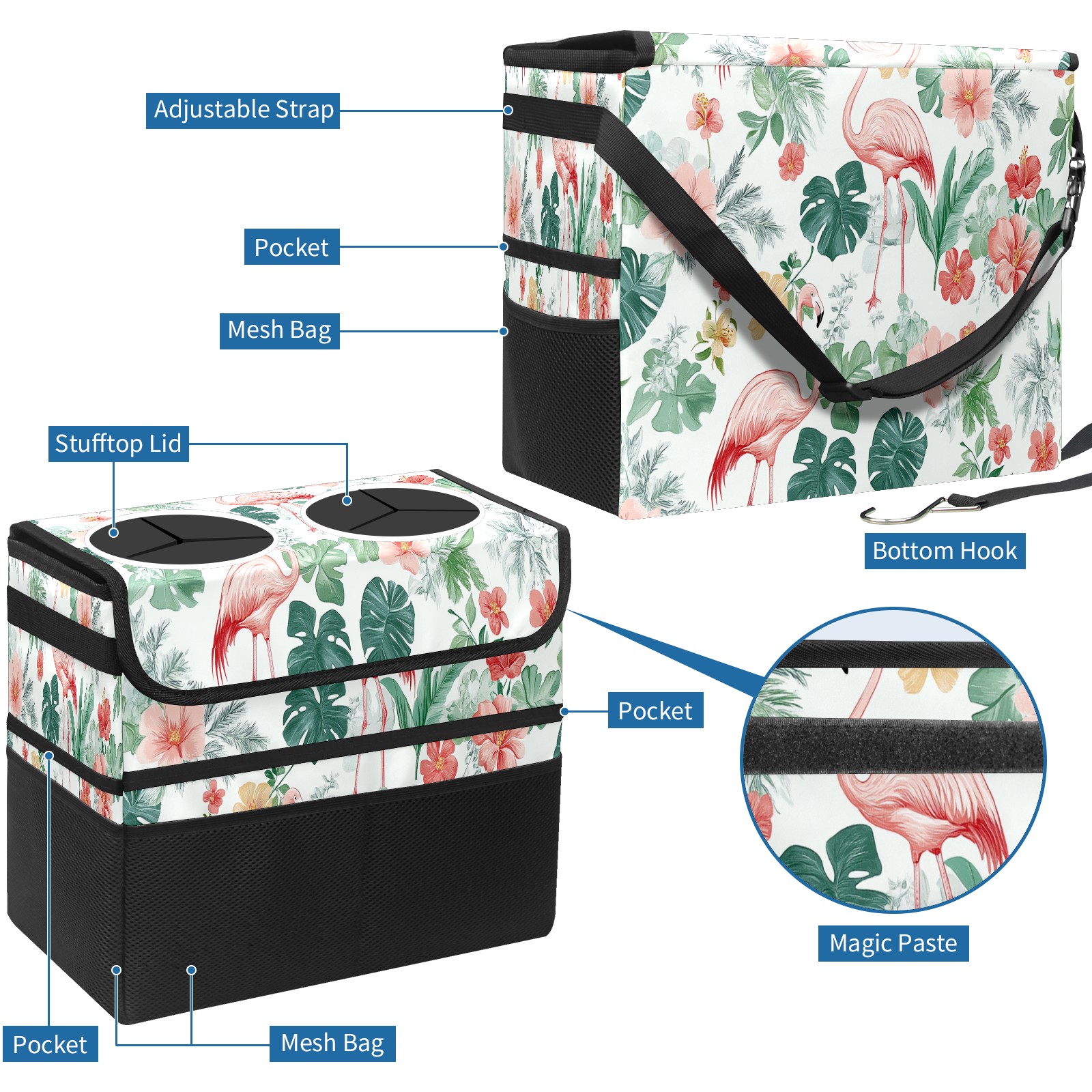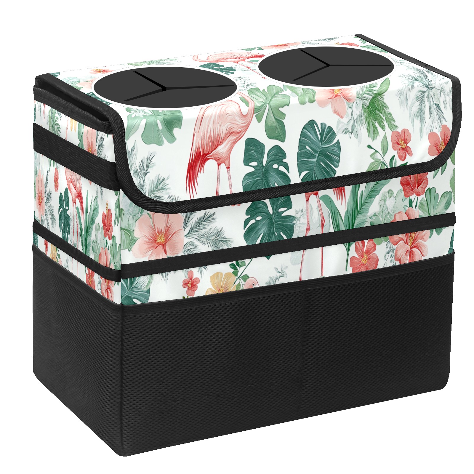 Car Trash Can with Lid, Portable Hanging Automotive Garbage Bin for Vehicles, Leakproof Waste Bag Container for SUV Truck Van Interior Auto Travel Road Trips(Pink Flamingo And Tropical Leaves)
