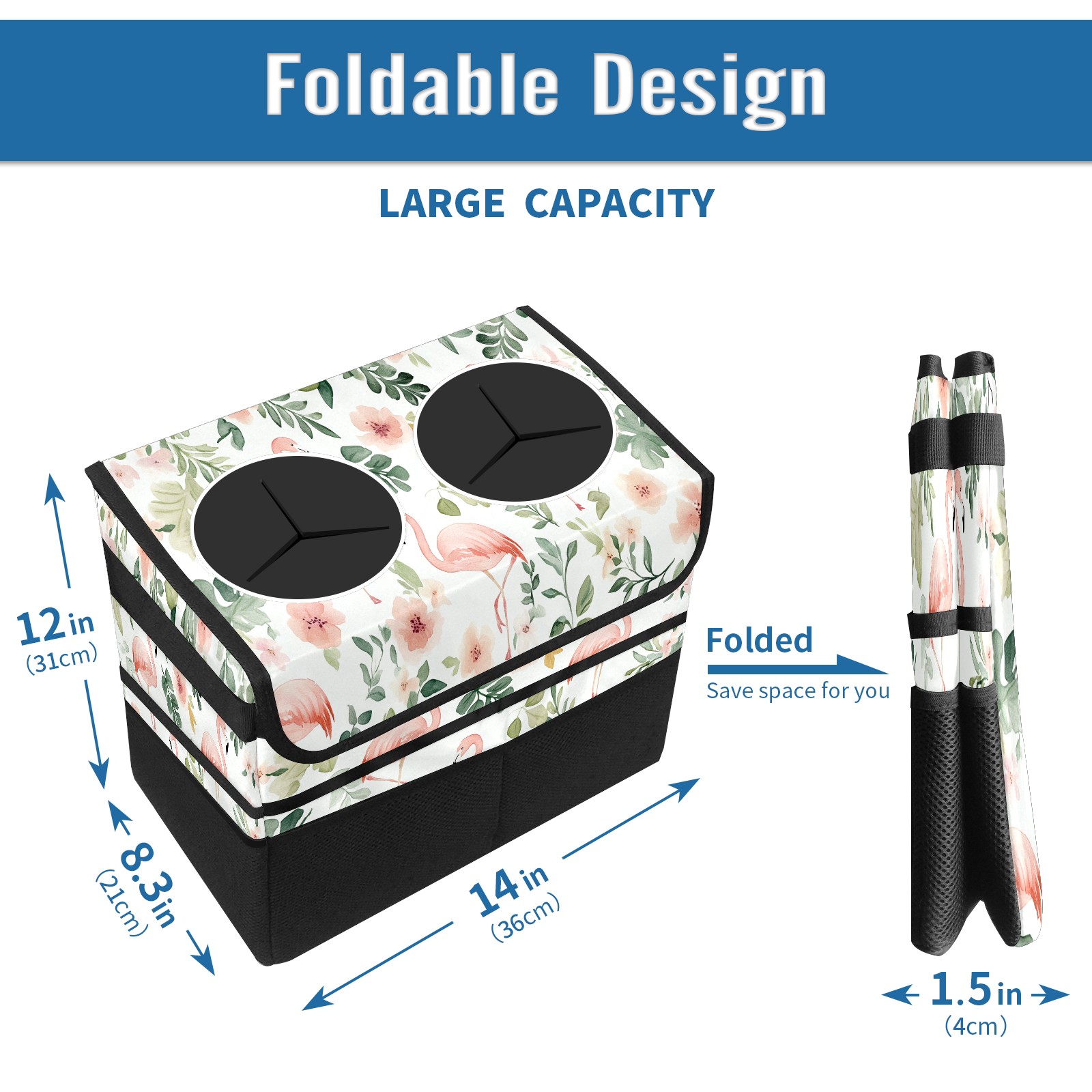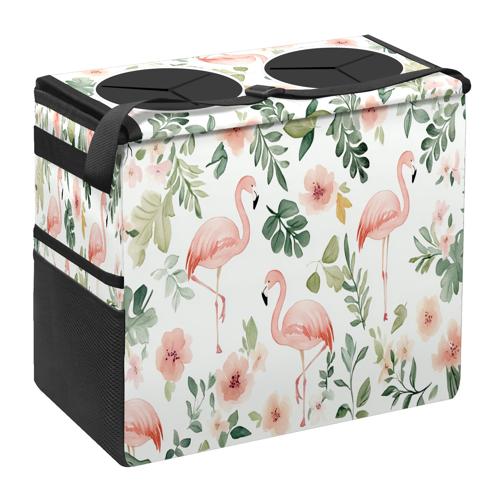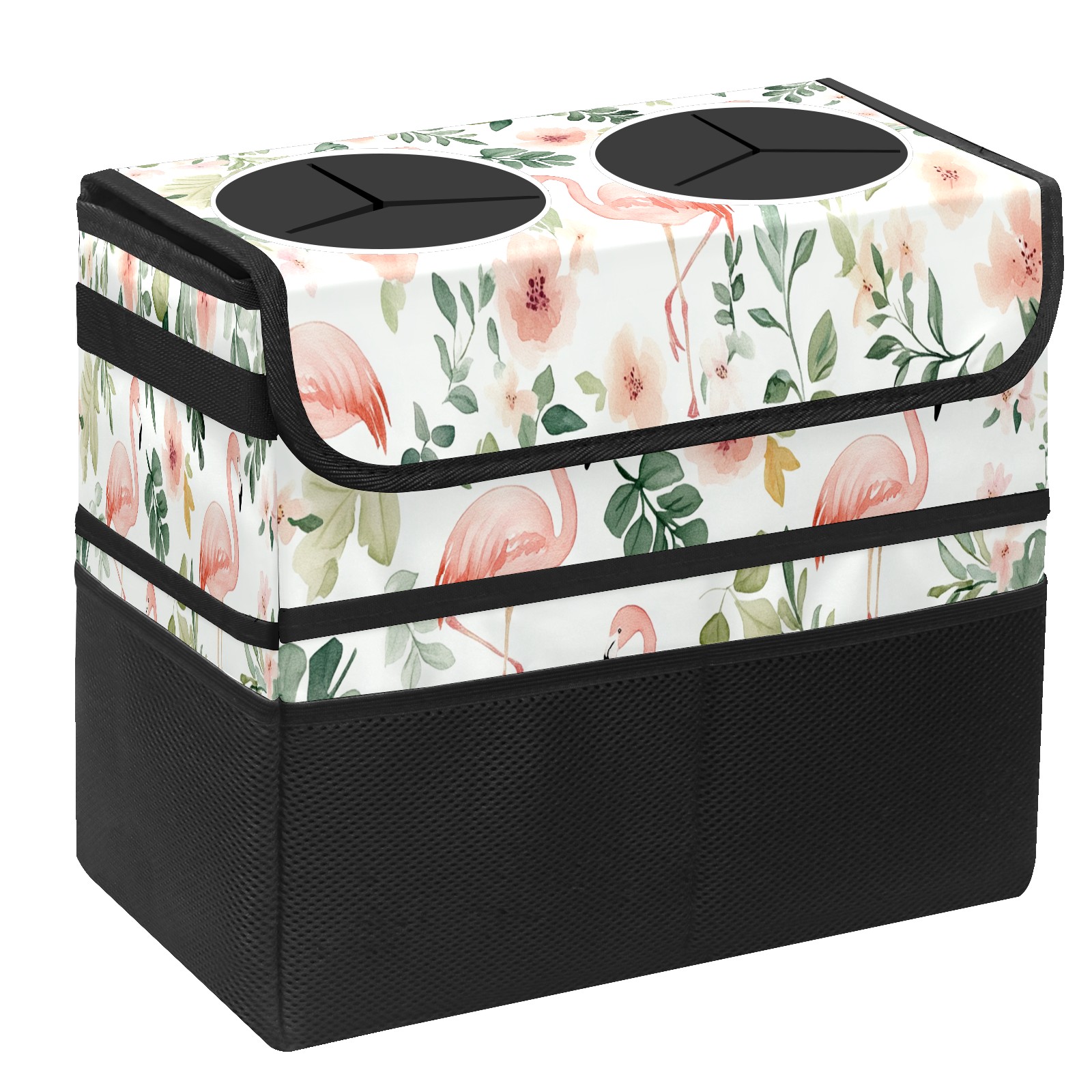 Car Trash Can with Lid, Portable Hanging Automotive Garbage Bin for Vehicles, Leakproof Waste Bag Container for SUV Truck Van Interior Auto Travel Road Trips(Flamingo Tropical Leaves)