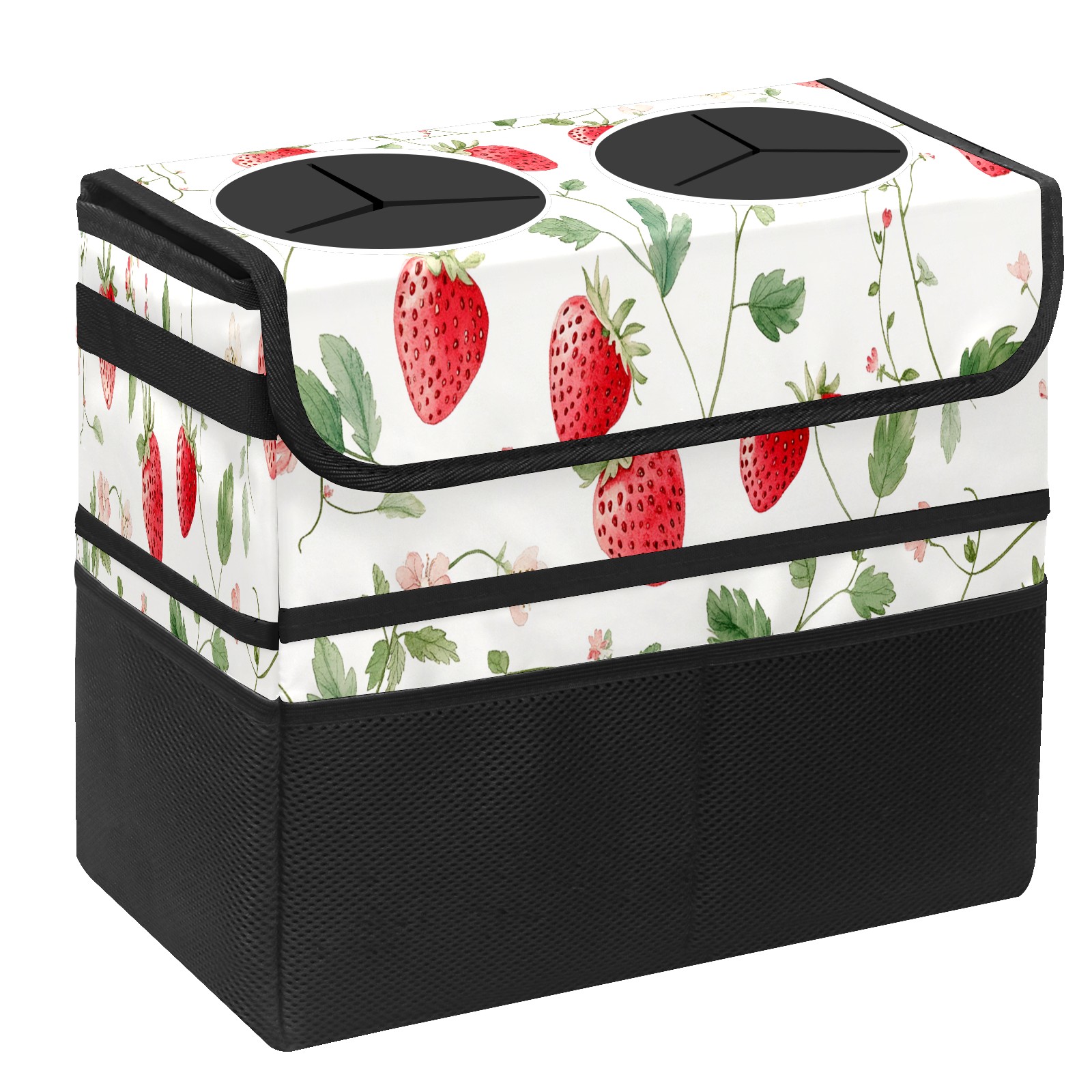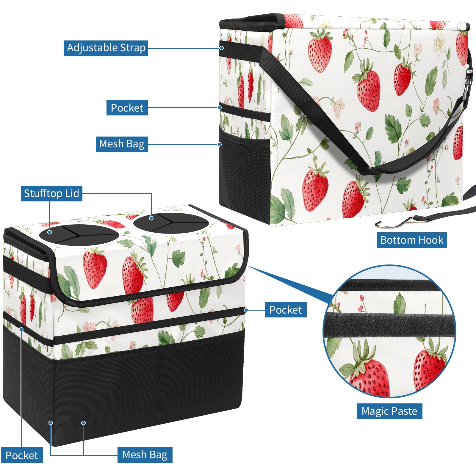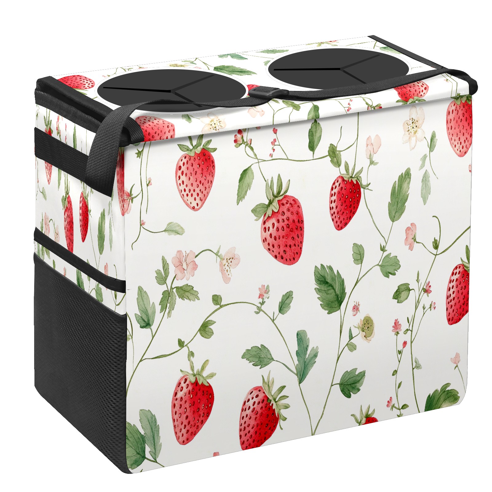 Car Trash Can with Lid, Portable Hanging Automotive Garbage Bin for Vehicles, Leakproof Waste Bag Container for SUV Truck Van Interior Auto Travel Road Trips(Seamless Pattern With Watercolor Strawberries)