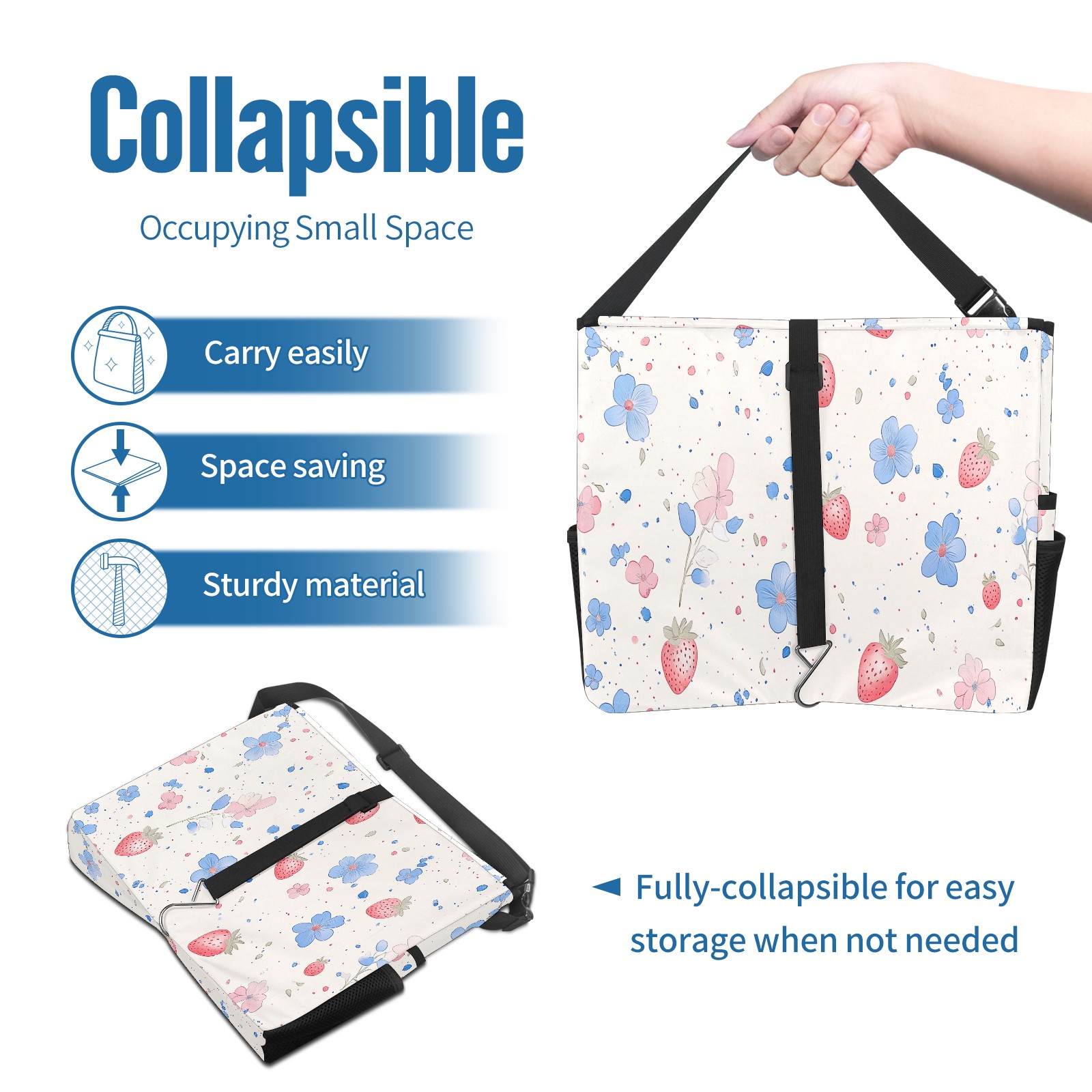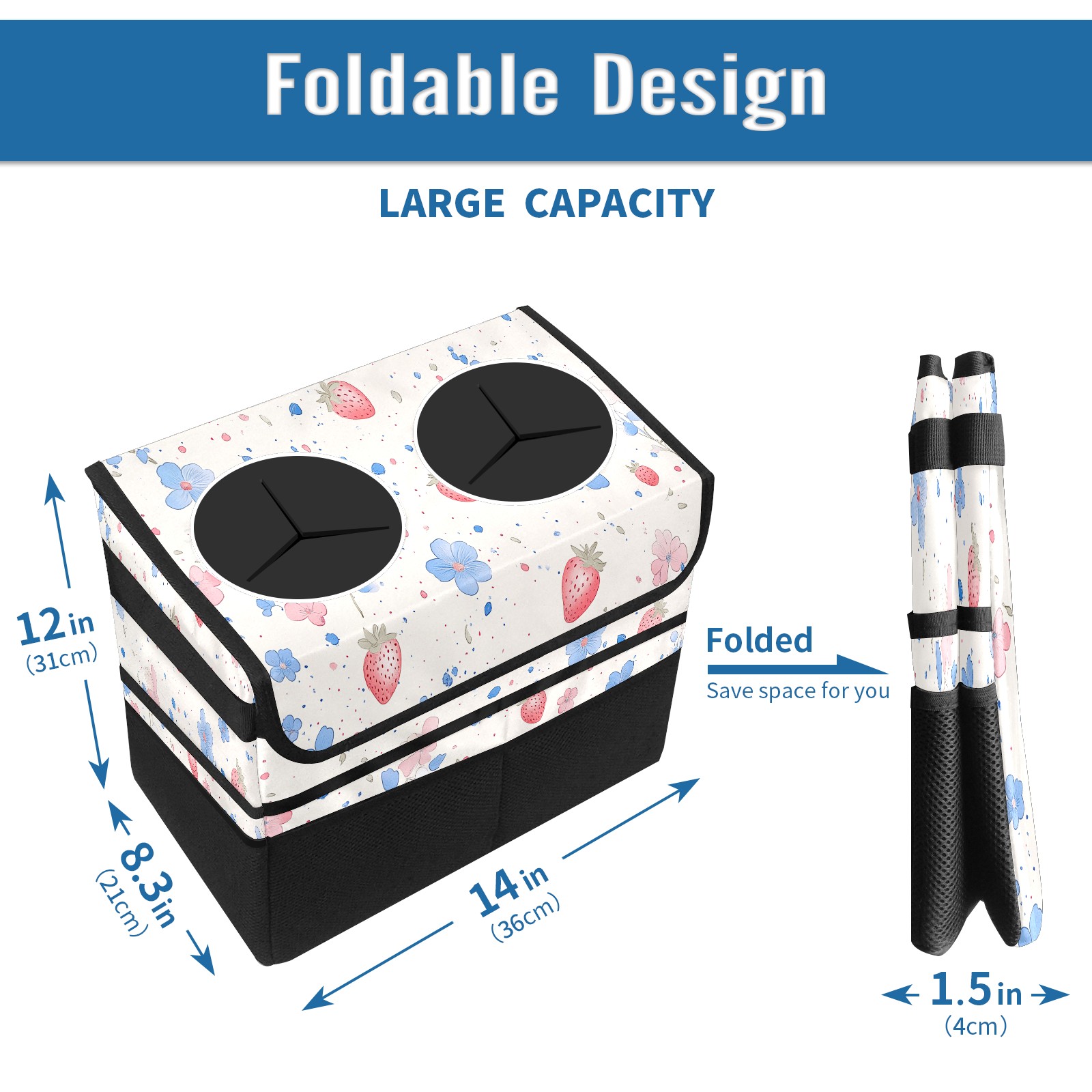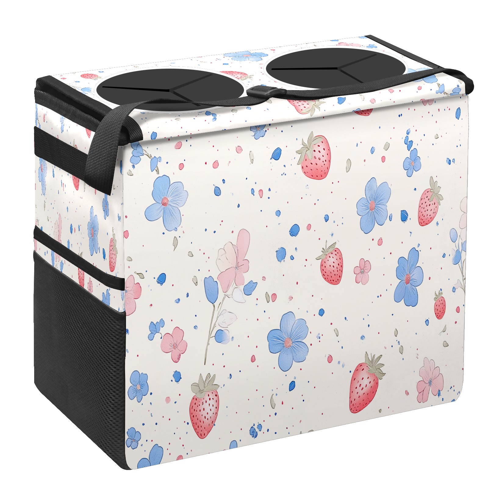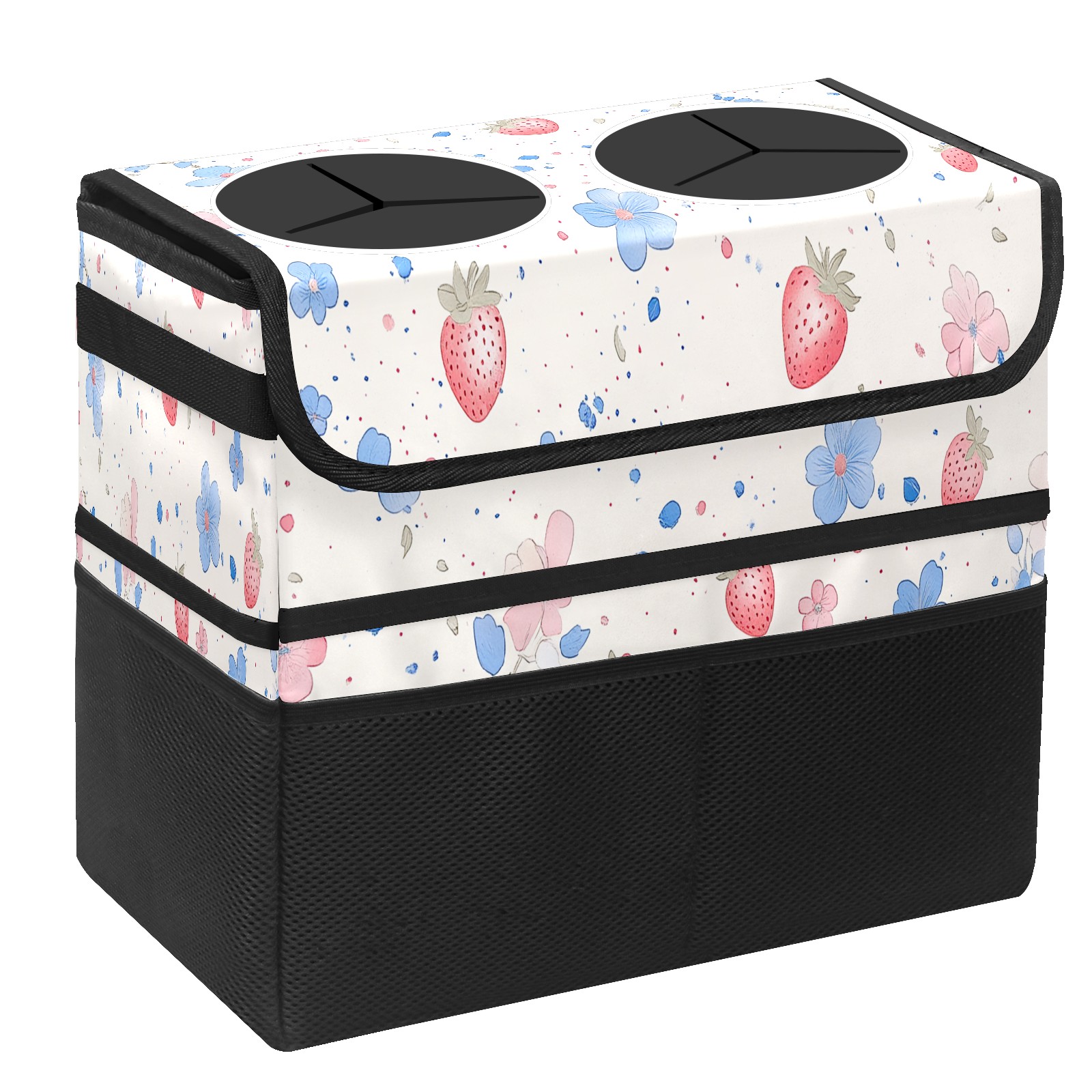 Car Trash Can with Lid, Portable Hanging Automotive Garbage Bin for Vehicles, Leakproof Waste Bag Container for SUV Truck Van Interior Auto Travel Road Trips(Cute Pastel Strawberry Pattern)