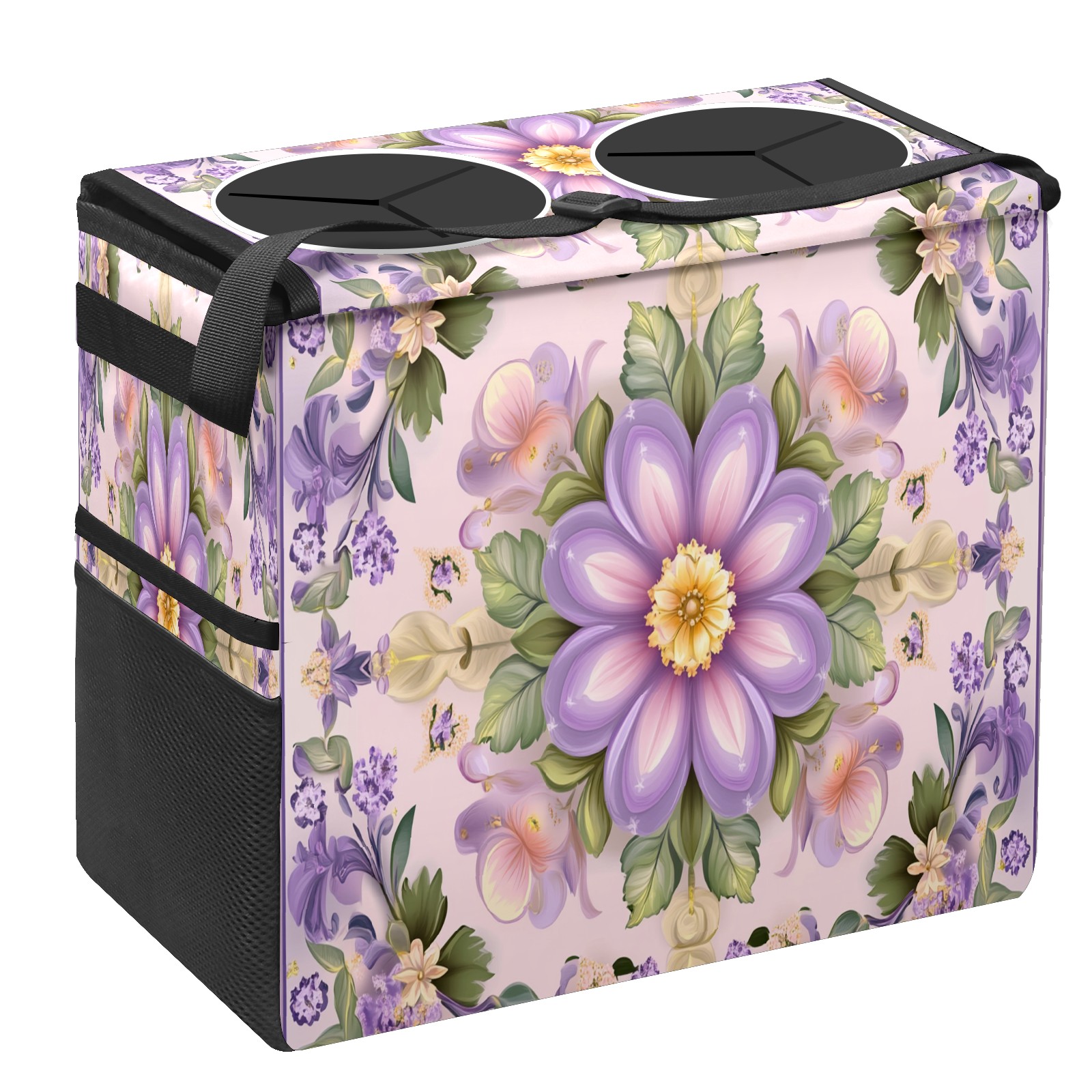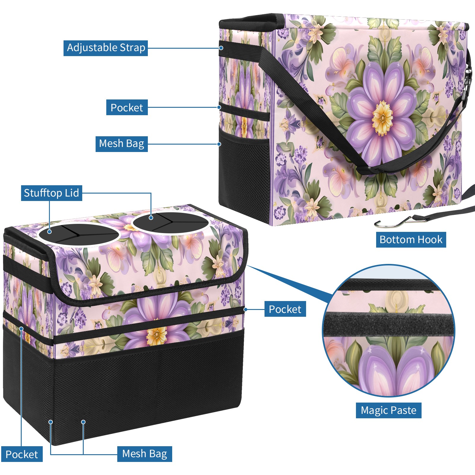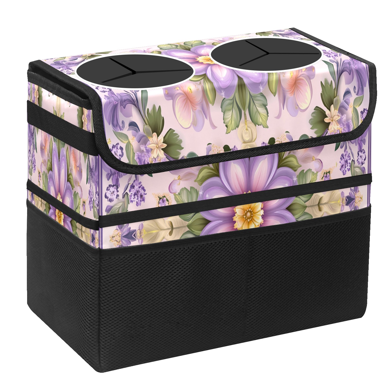 Car Trash Can with Lid, Portable Hanging Automotive Garbage Bin for Vehicles, Leakproof Waste Bag Container for SUV Truck Van Interior Auto Travel Road Trips(Purple Green Pattern)