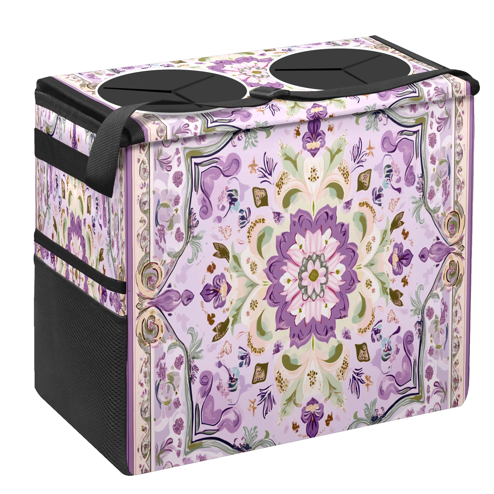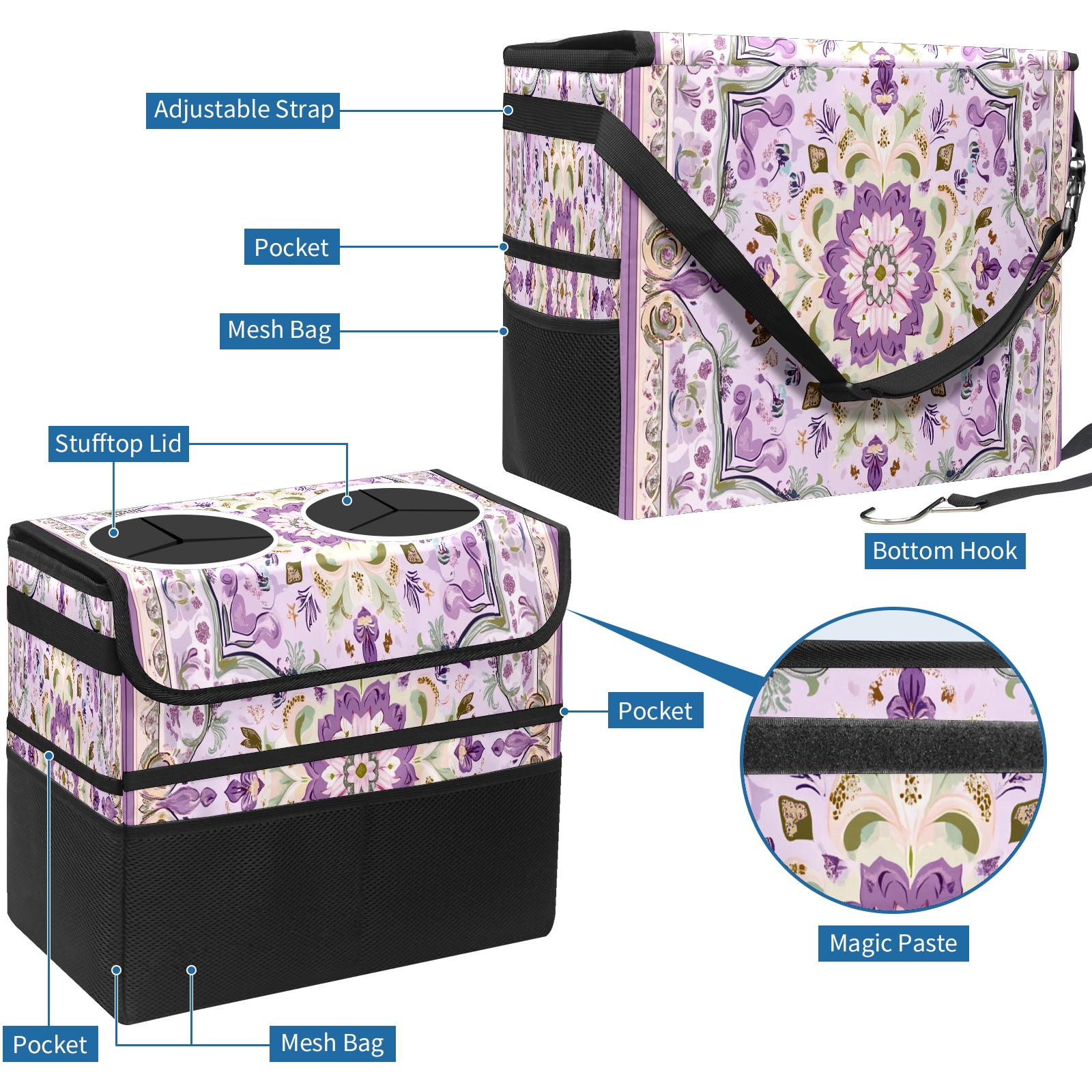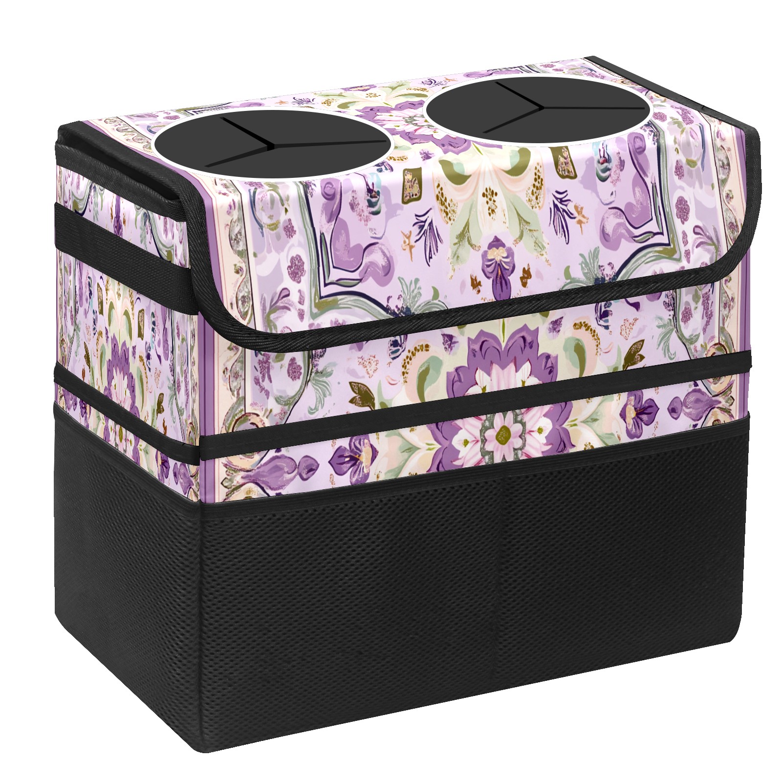 Car Trash Can with Lid, Portable Hanging Automotive Garbage Bin for Vehicles, Leakproof Waste Bag Container for SUV Truck Van Interior Auto Travel Road Trips(Light Purple Pattern)