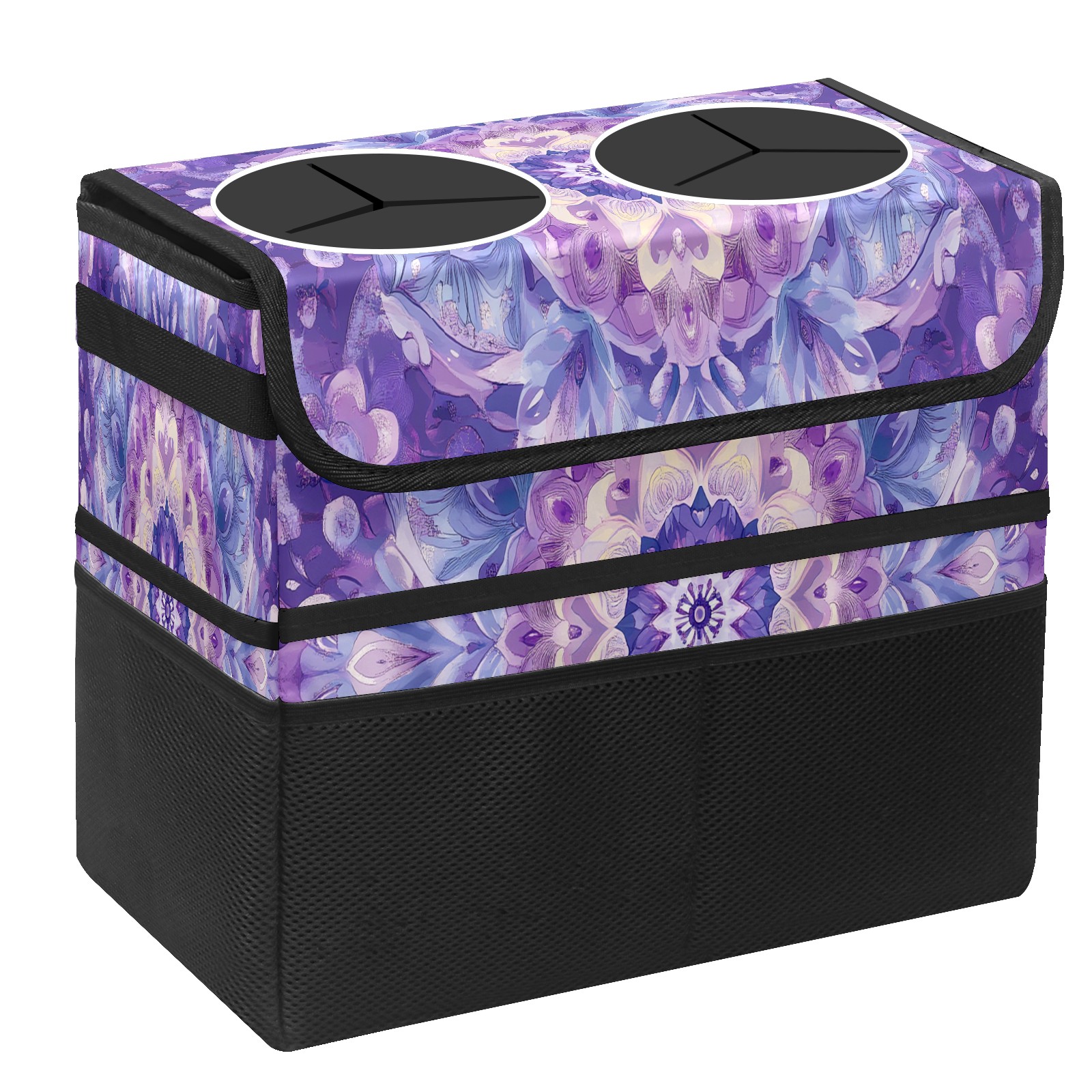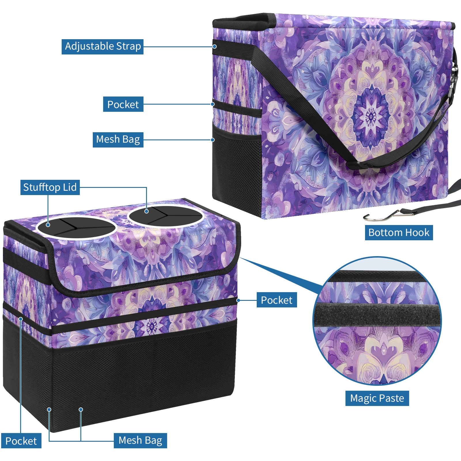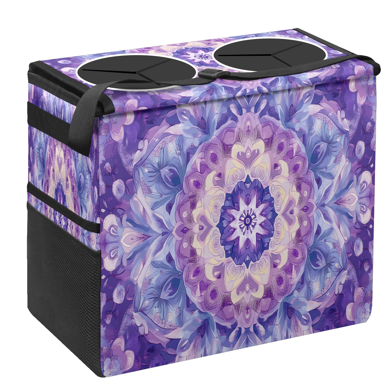 Car Trash Can with Lid, Portable Hanging Automotive Garbage Bin for Vehicles, Leakproof Waste Bag Container for SUV Truck Van Interior Auto Travel Road Trips(Purple Mandala Pattern)