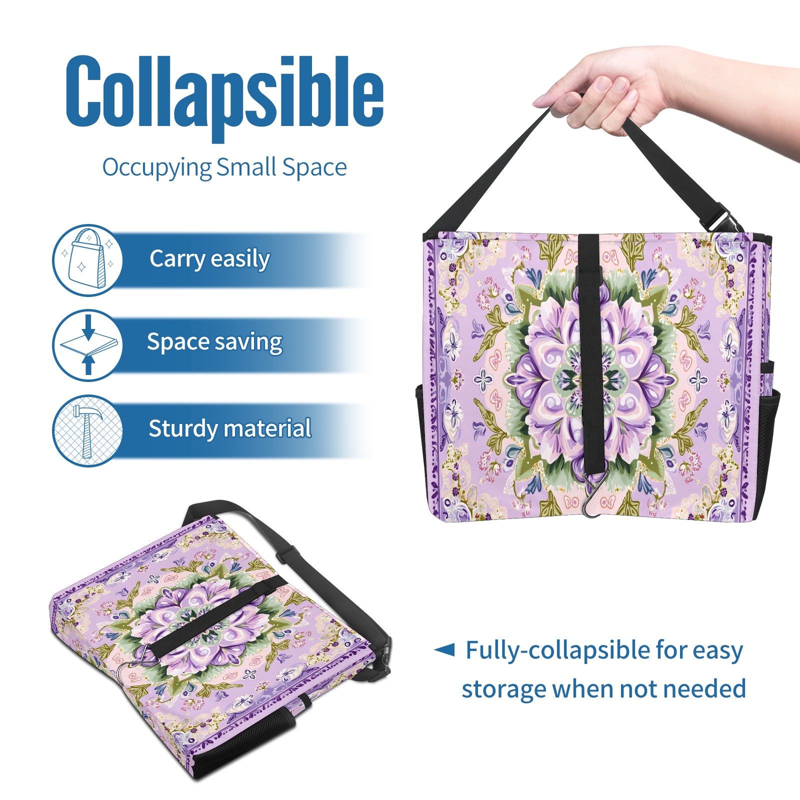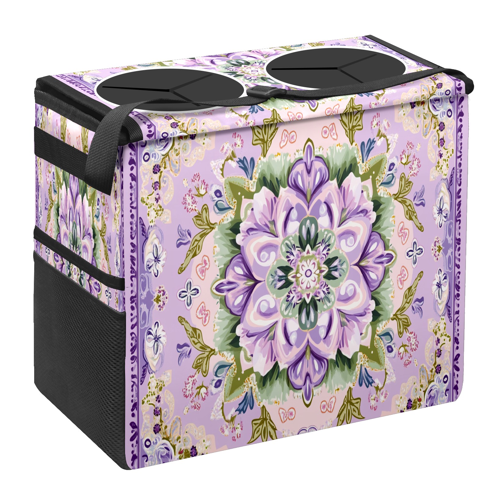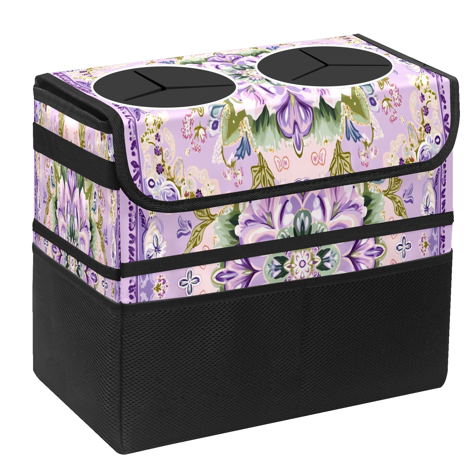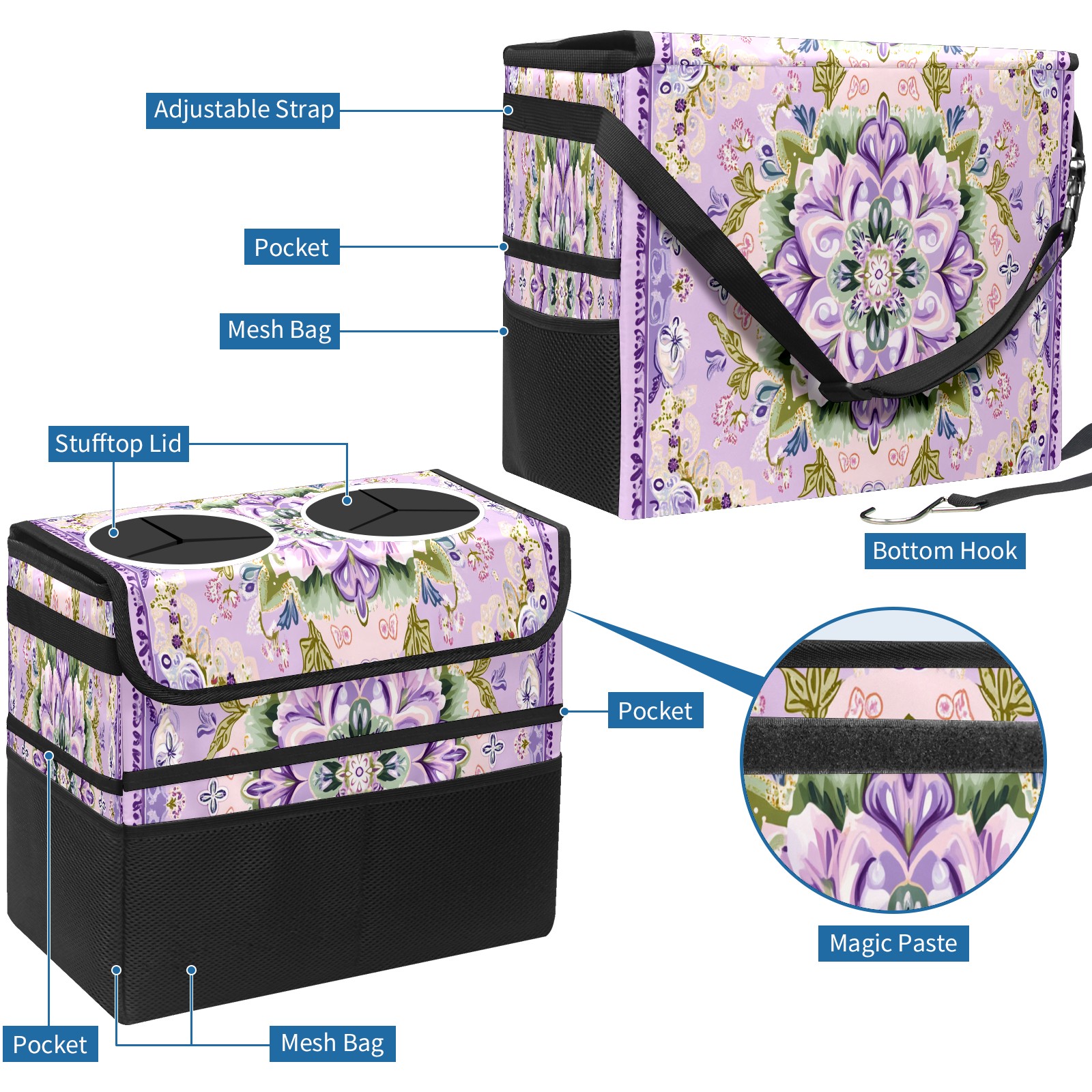 Car Trash Can with Lid, Portable Hanging Automotive Garbage Bin for Vehicles, Leakproof Waste Bag Container for SUV Truck Van Interior Auto Travel Road Trips(Light Purple Green Pattern)