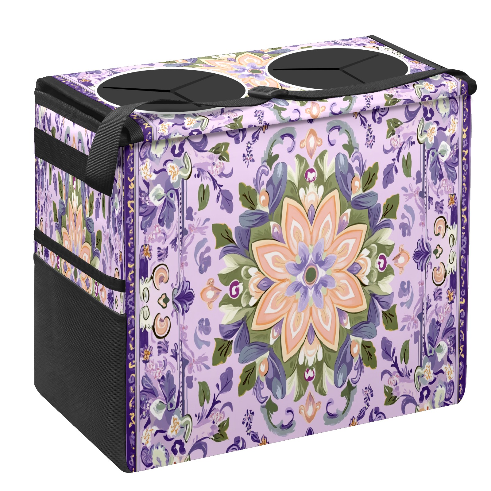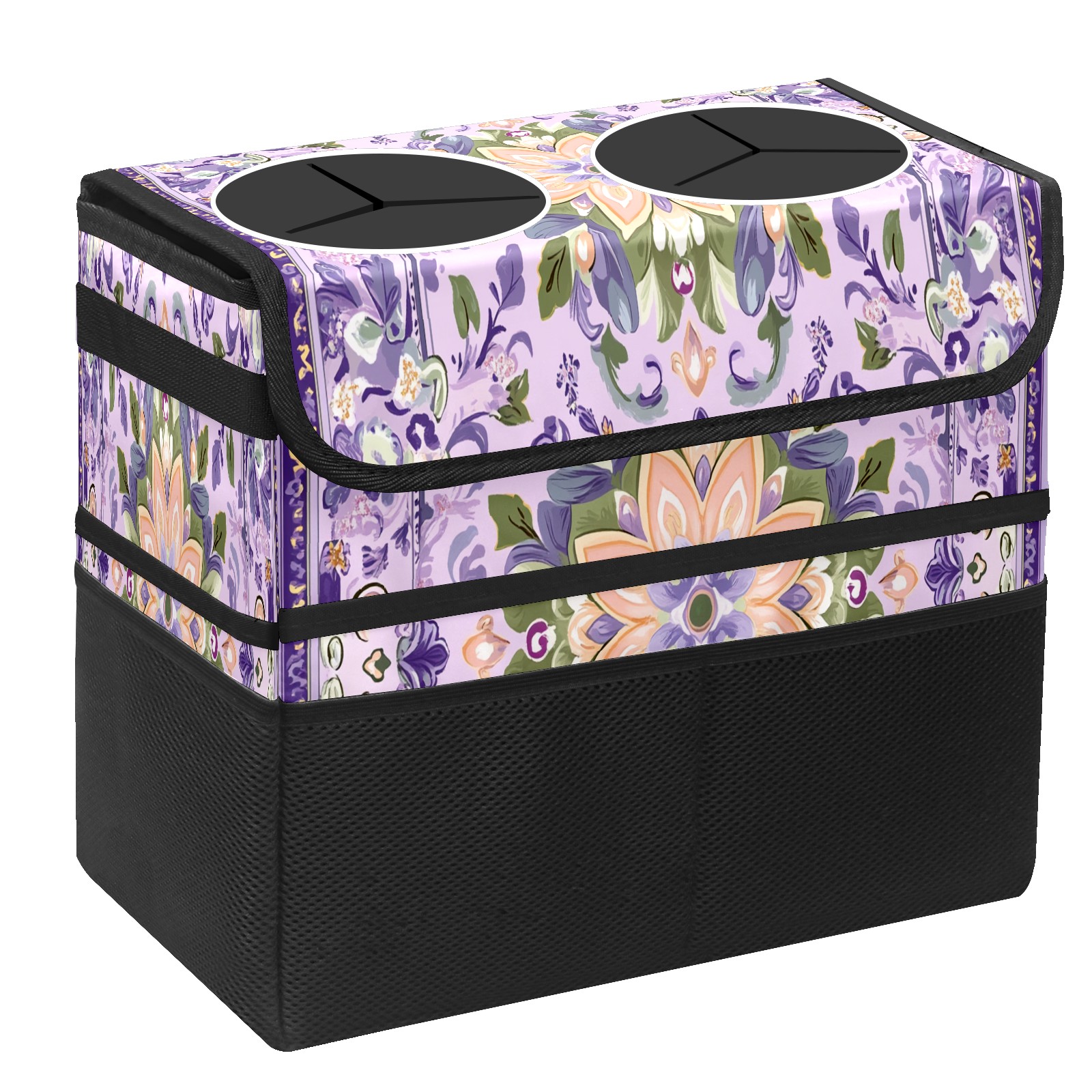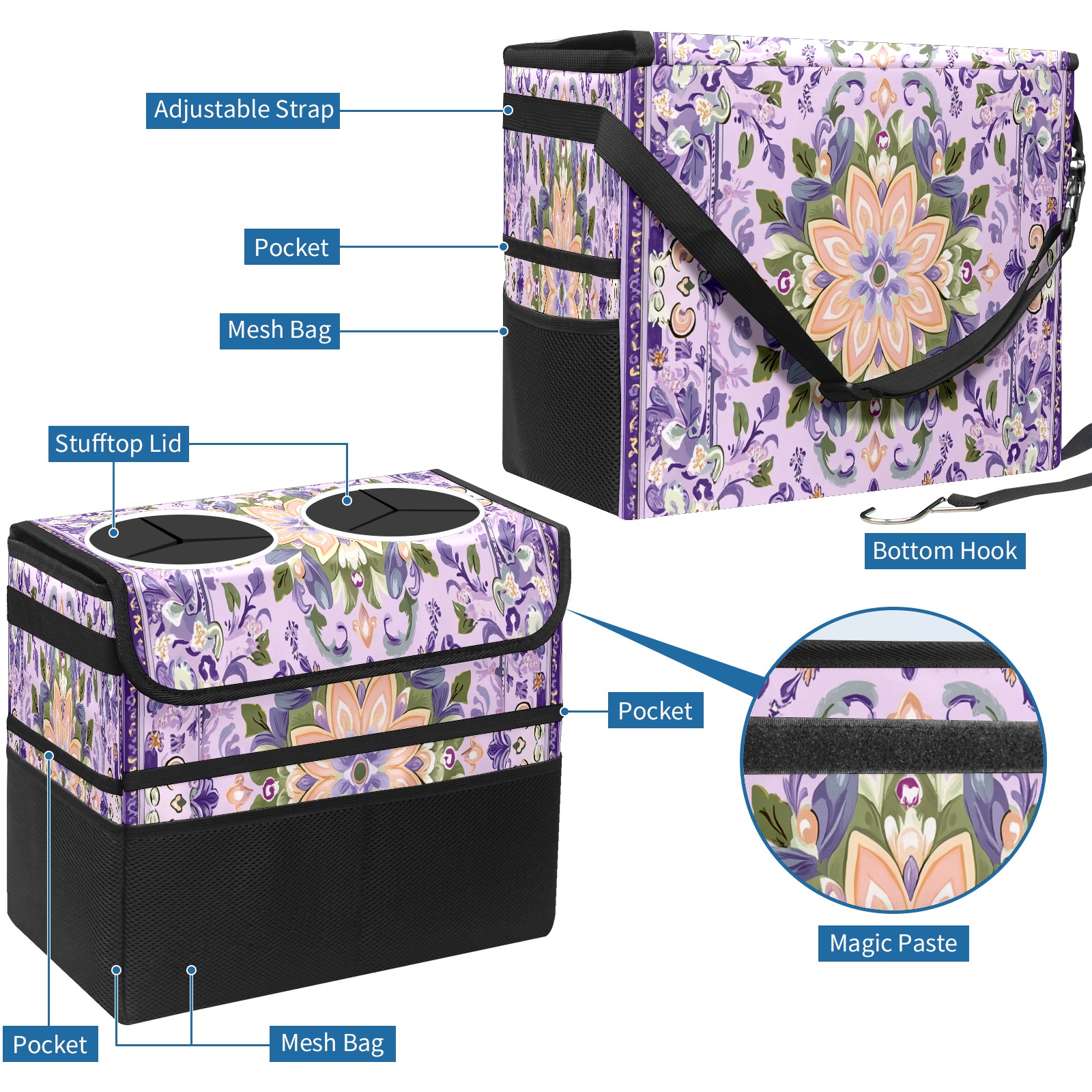 Car Trash Can with Lid, Portable Hanging Automotive Garbage Bin for Vehicles, Leakproof Waste Bag Container for SUV Truck Van Interior Auto Travel Road Trips(Dark Purple Green Pattern)