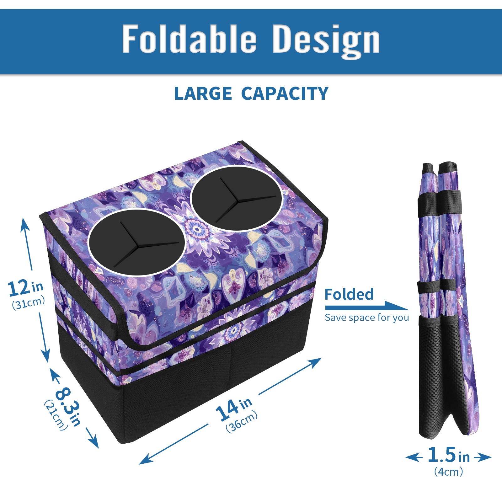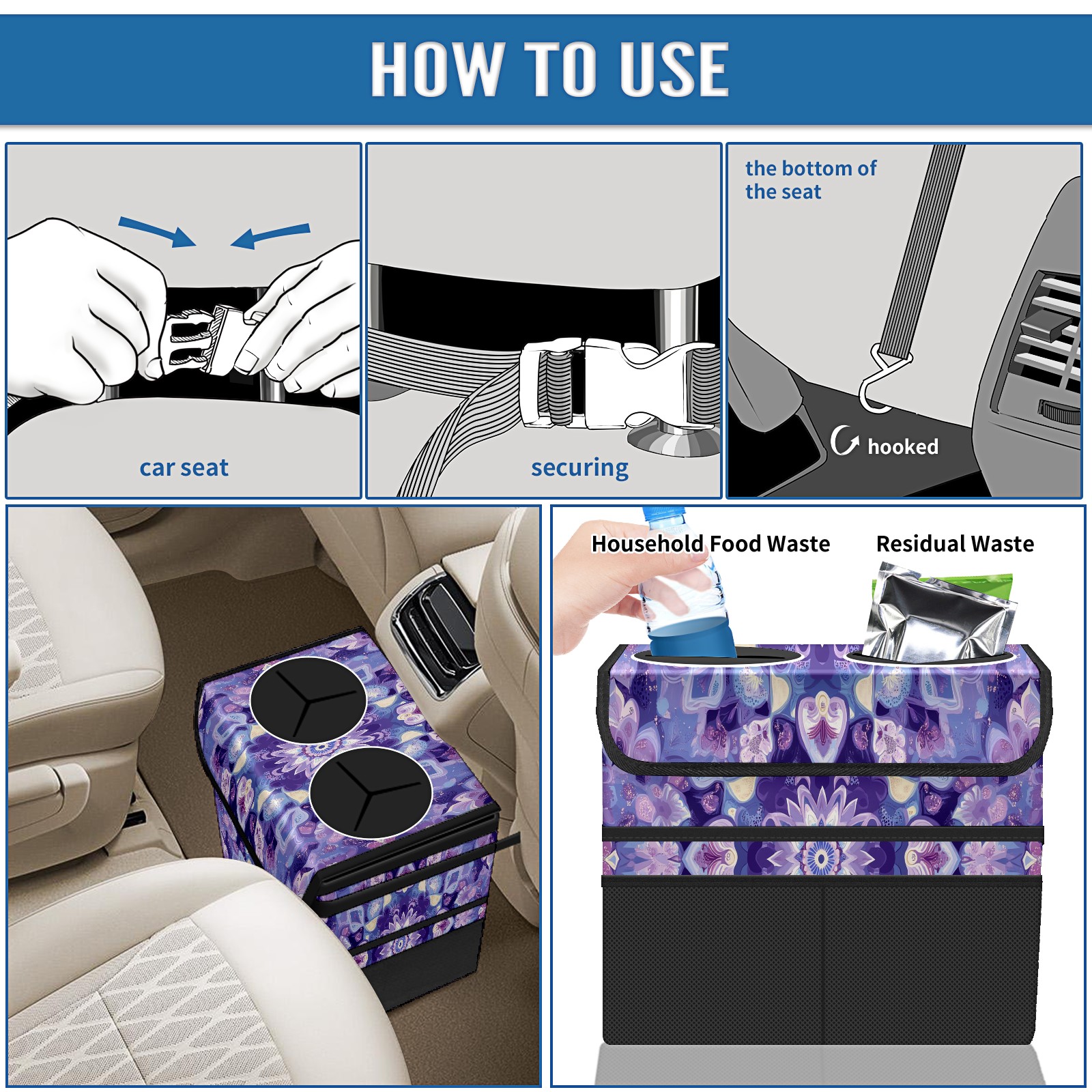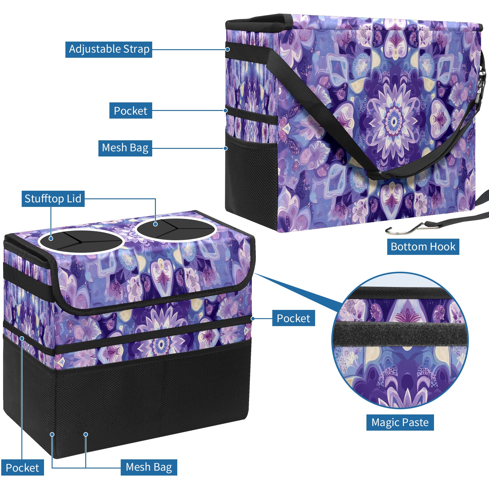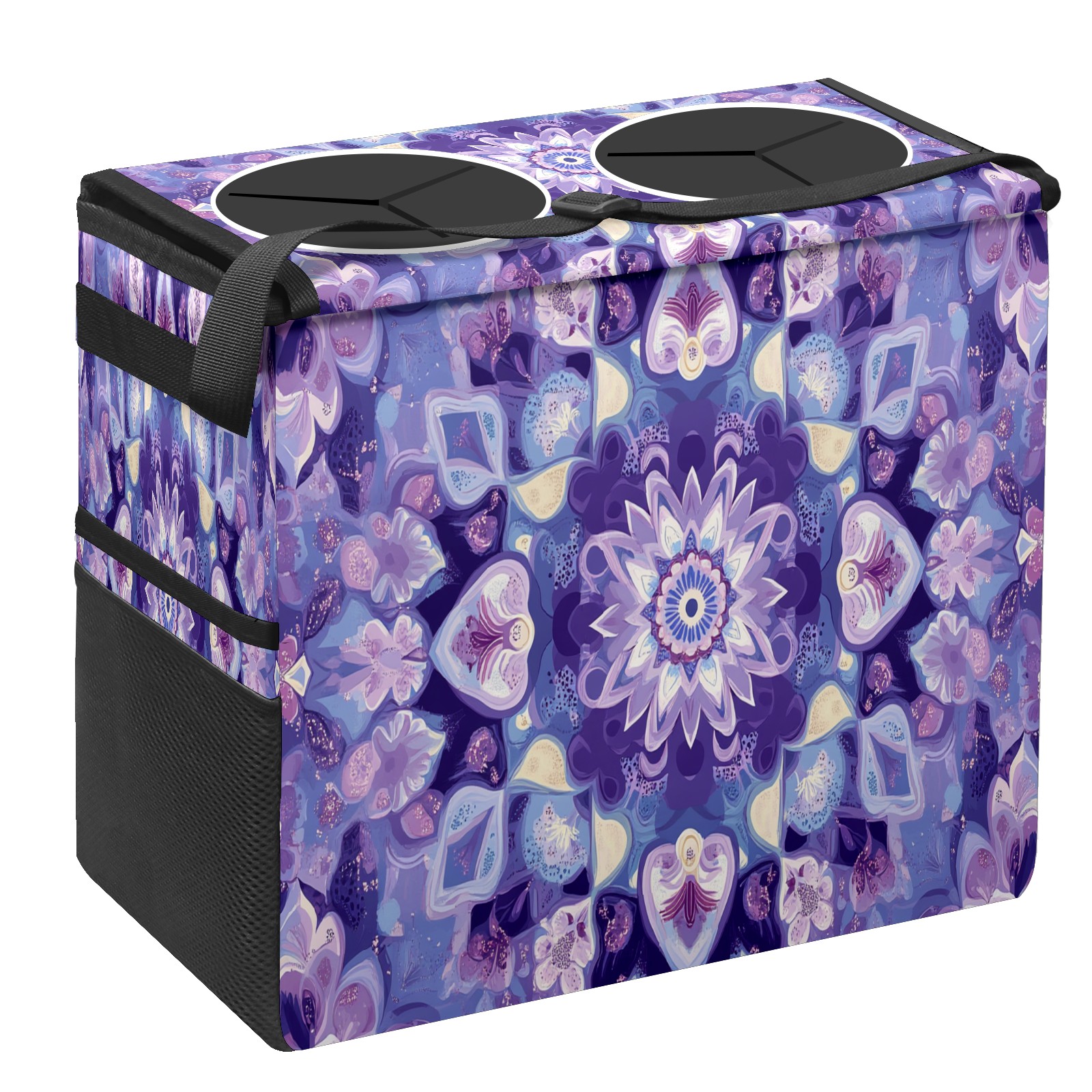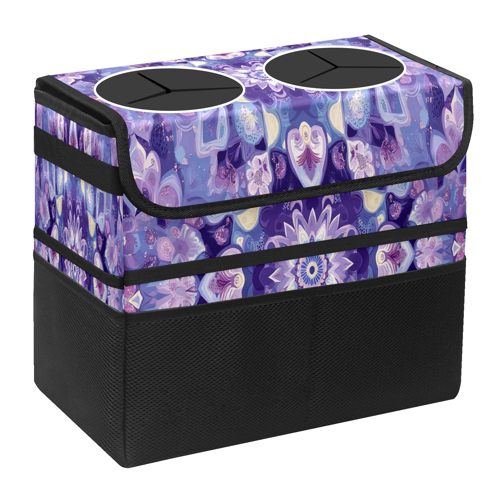 Car Trash Can with Lid, Portable Hanging Automotive Garbage Bin for Vehicles, Leakproof Waste Bag Container for SUV Truck Van Interior Auto Travel Road Trips(Dark Purple Mandala Pattern)