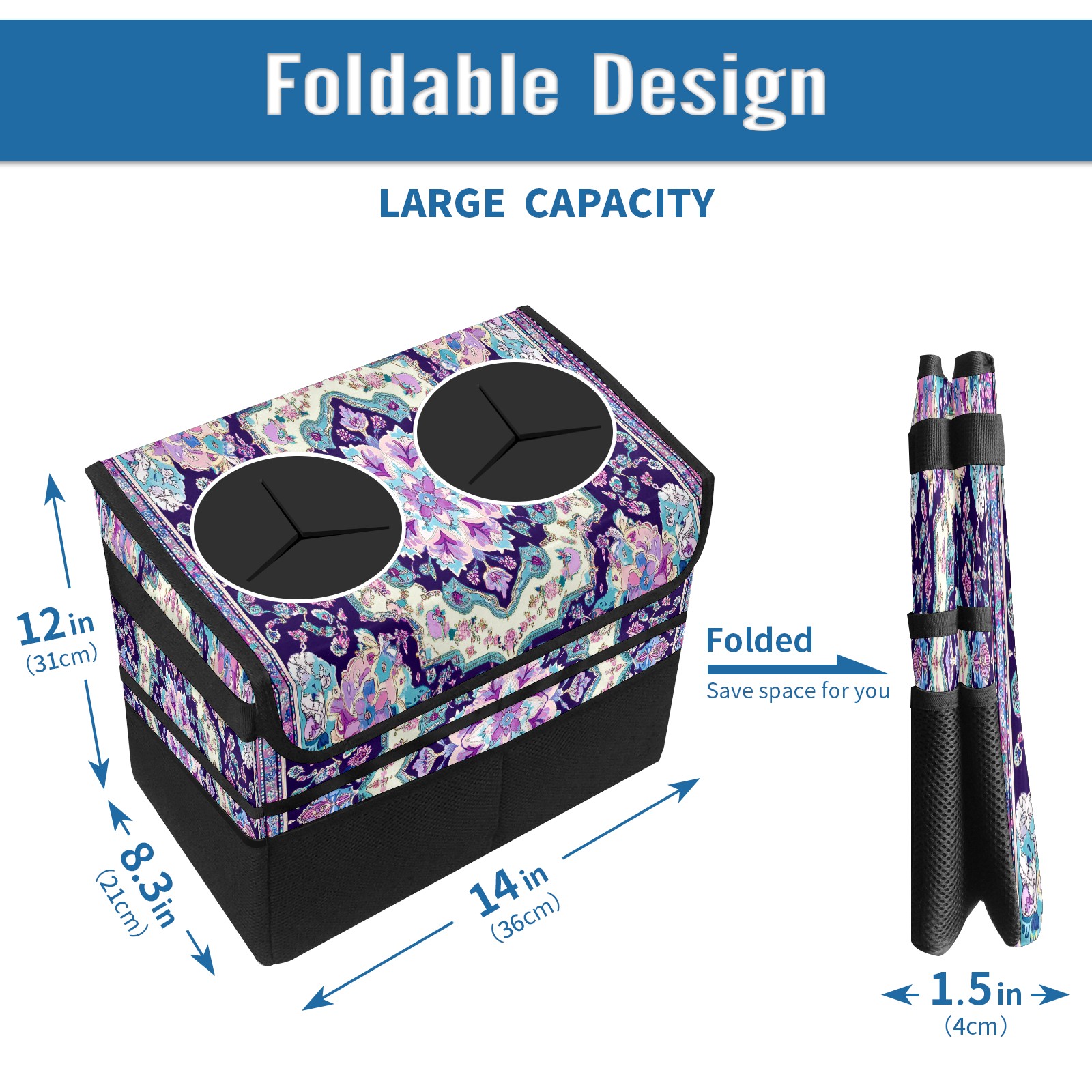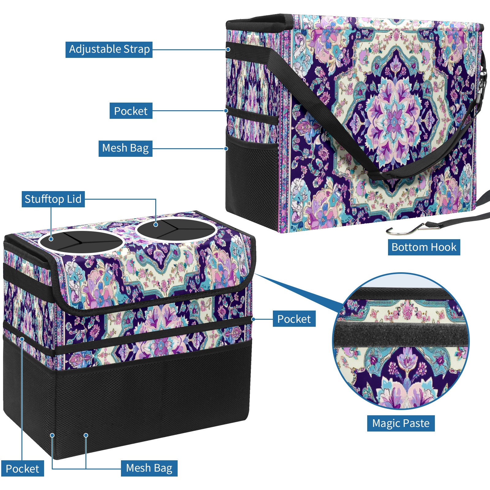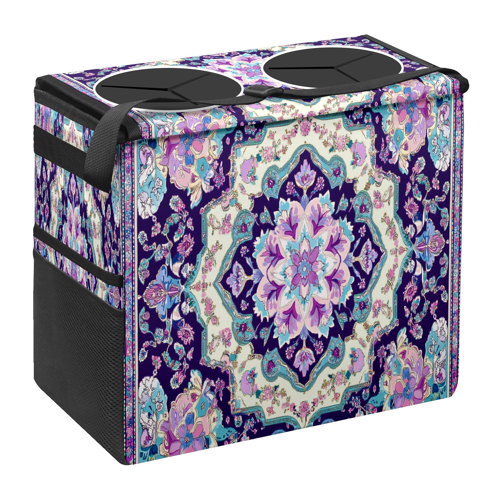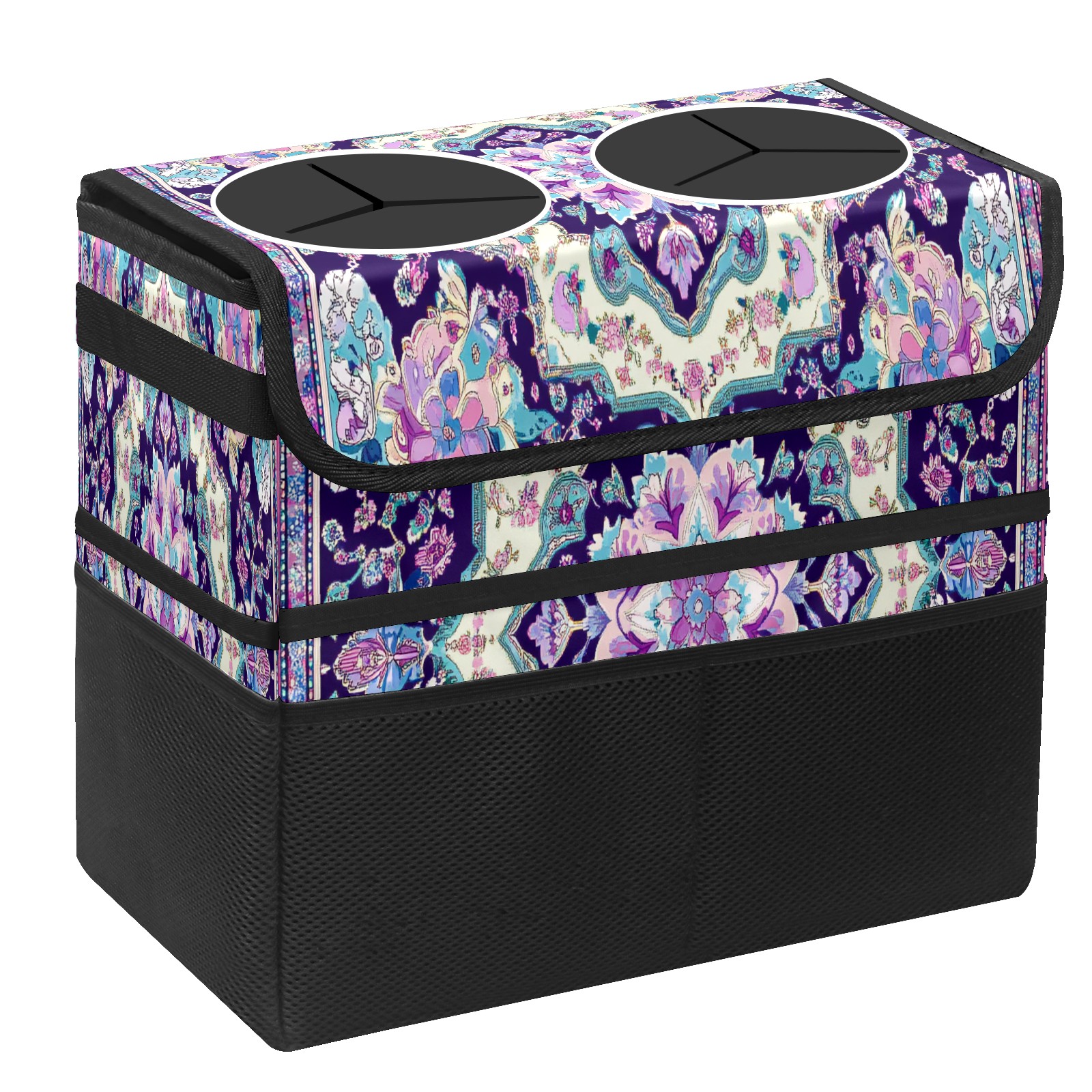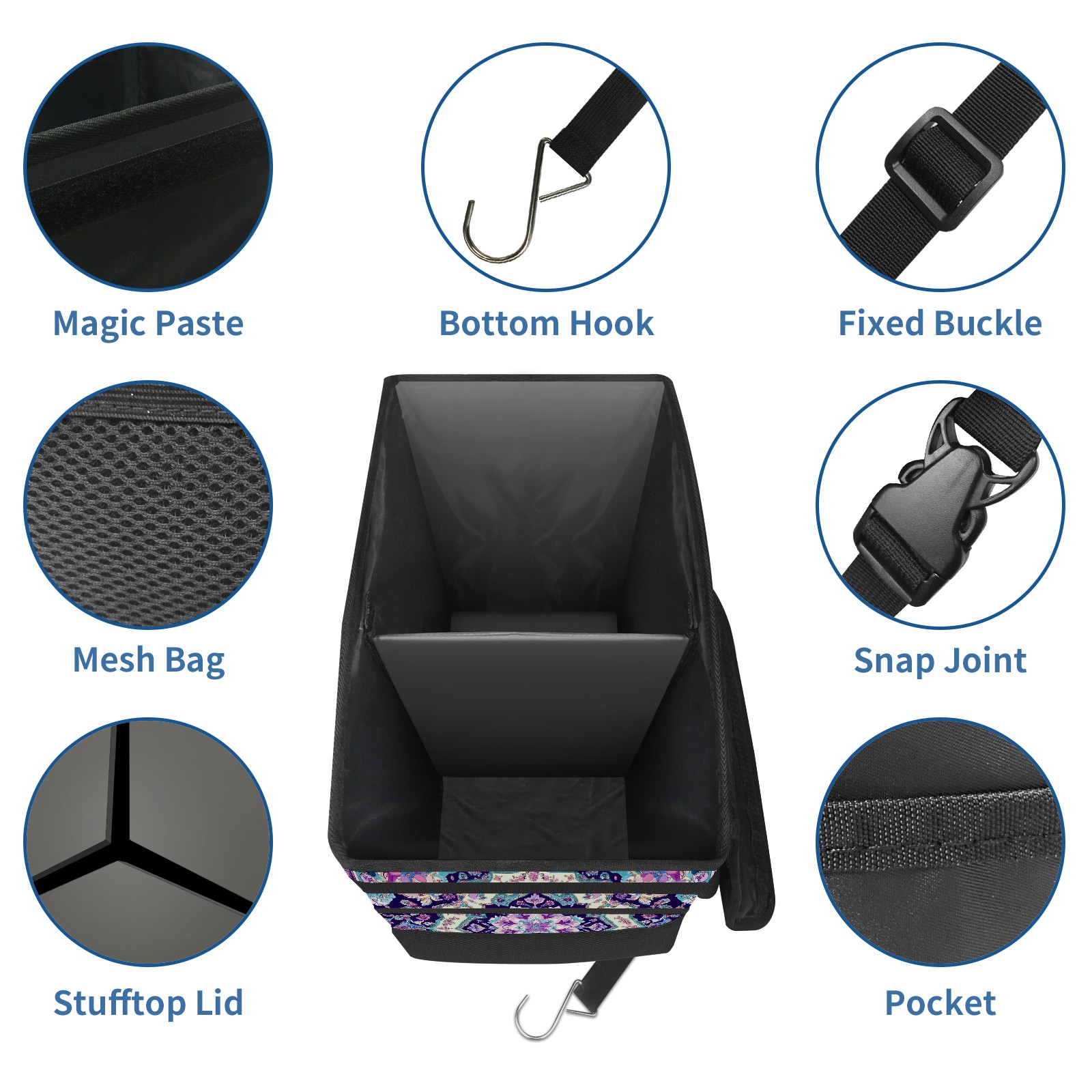 Car Trash Can with Lid, Portable Hanging Automotive Garbage Bin for Vehicles, Leakproof Waste Bag Container for SUV Truck Van Interior Auto Travel Road Trips(Dark Purple Floral)